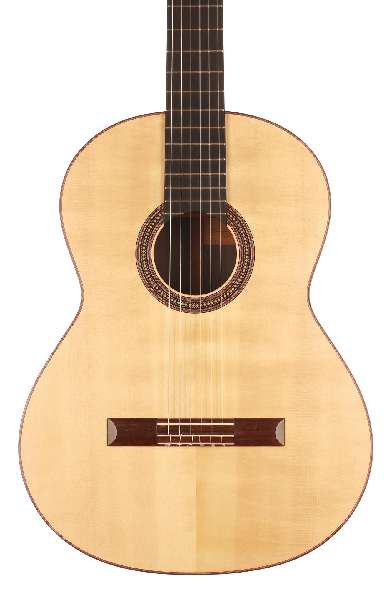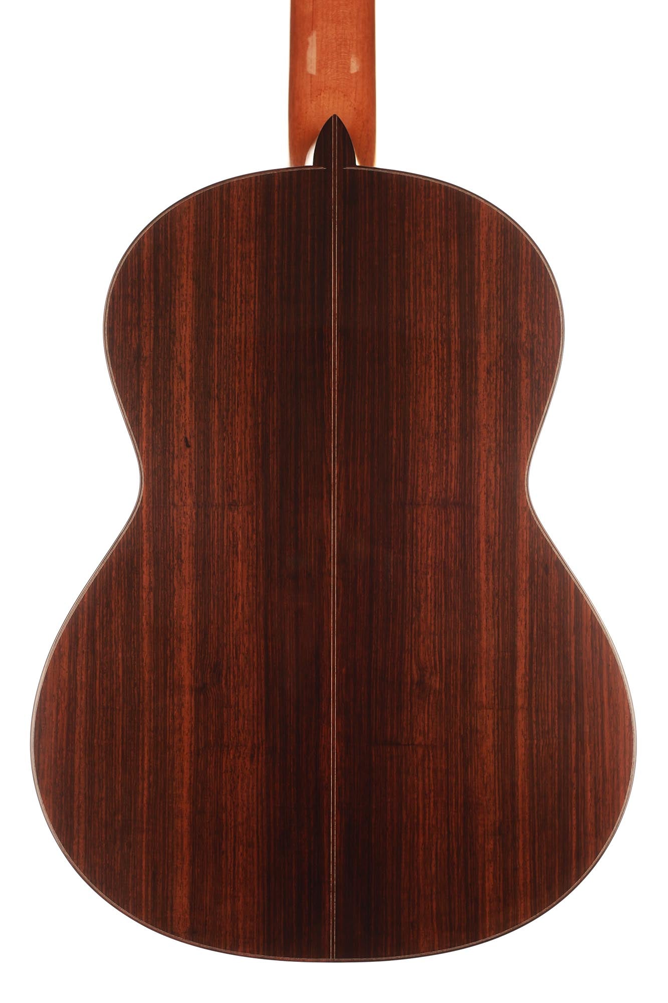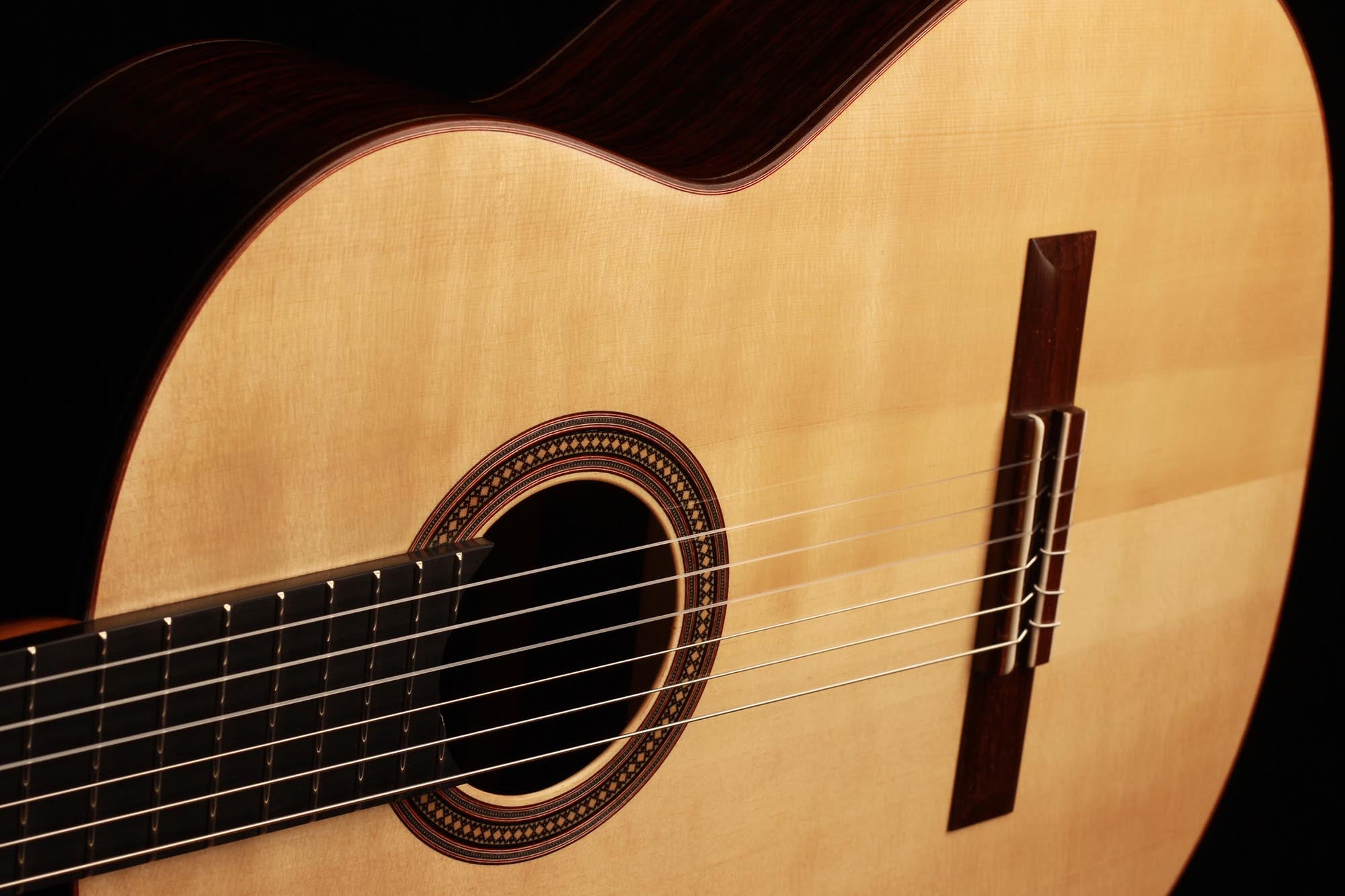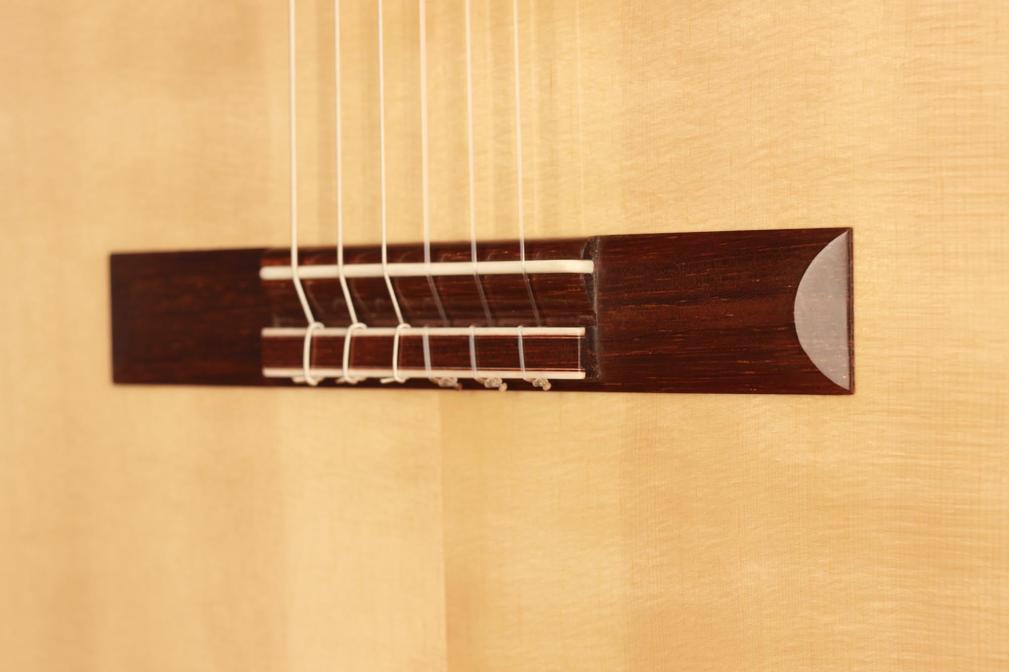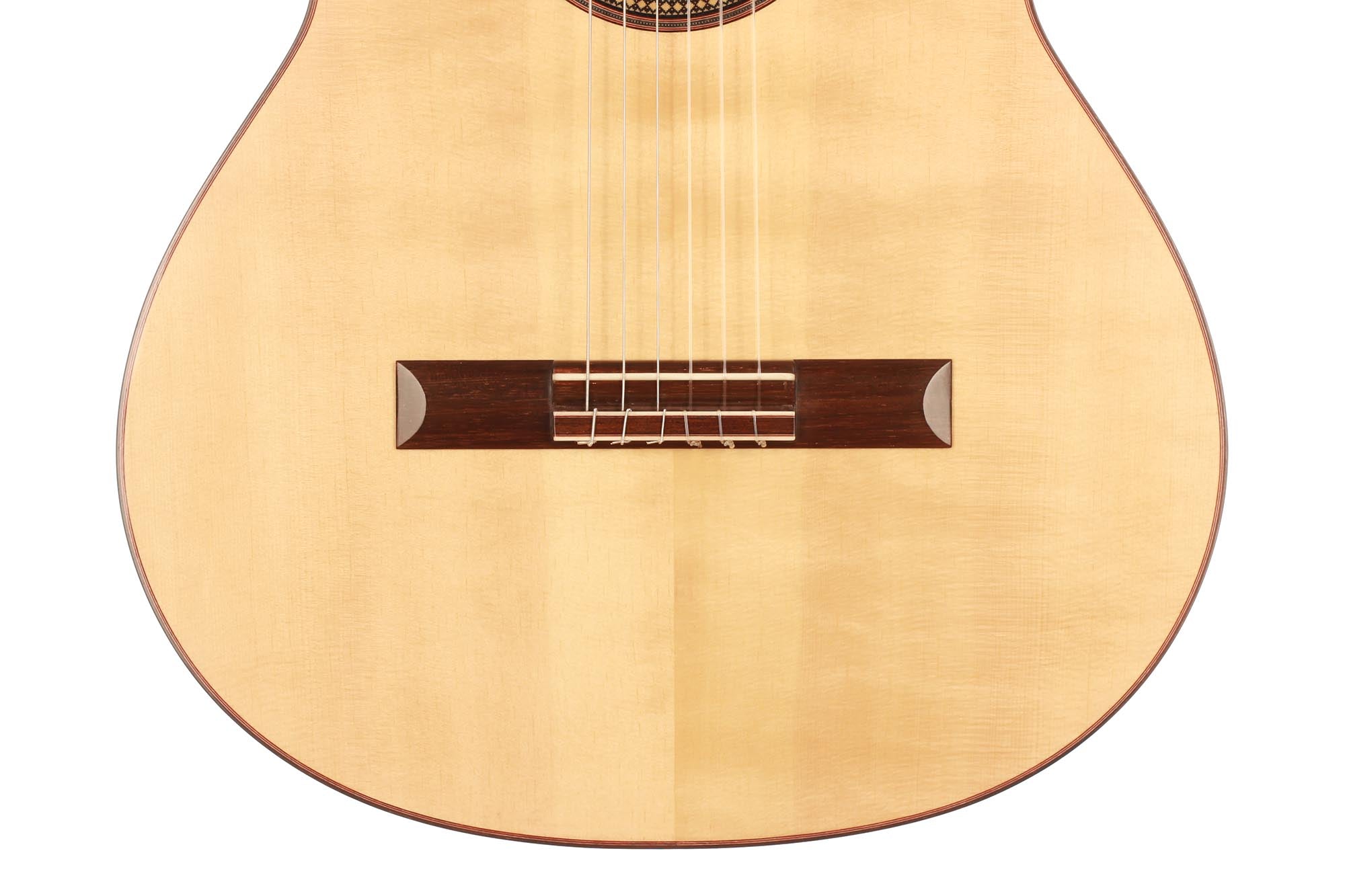 This new guitar was brought personally by Francois Leonard to our shop. It is a refined guitar with an impressively quick response as well as bold volume and a clear rich timbre. This guitar is very comfortable to play for both left and right hand. Such a dynamic instrument can be a real source of inspiration for any guitarist.