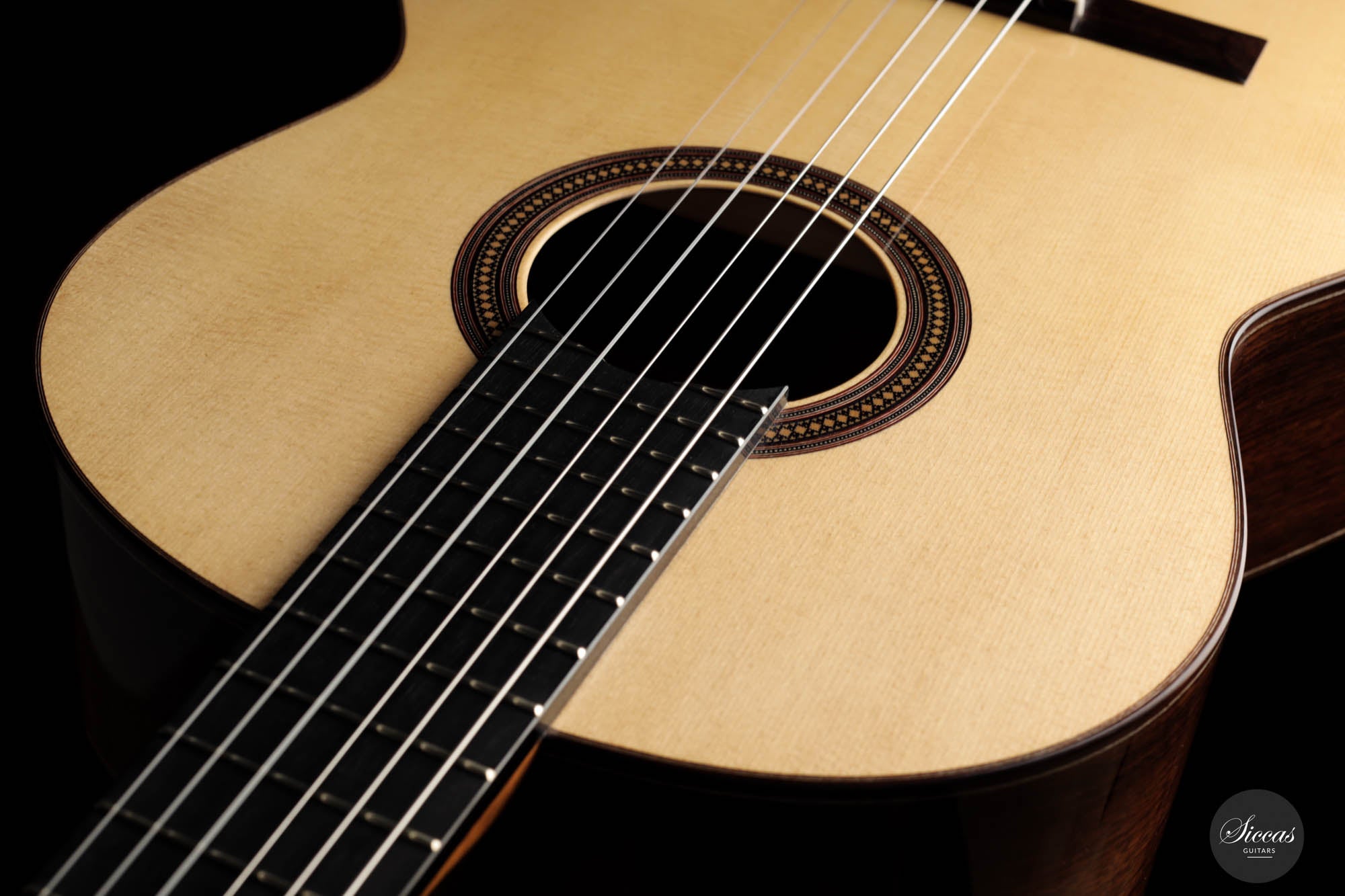 François Leonard has been building classical guitars for almost 20 years now and lives and works in his workshop in Lorient, France. He had the opportunity to learn from many guitar builders in England and also worked in the Lakewood workshop in Germany. He received support from Dominique Field as an occasional mentor, so it is no surprise that the aesthetics and structural concept of his guitars are strongly influenced by French masters such as Daniel Friederich and Dominique Field.