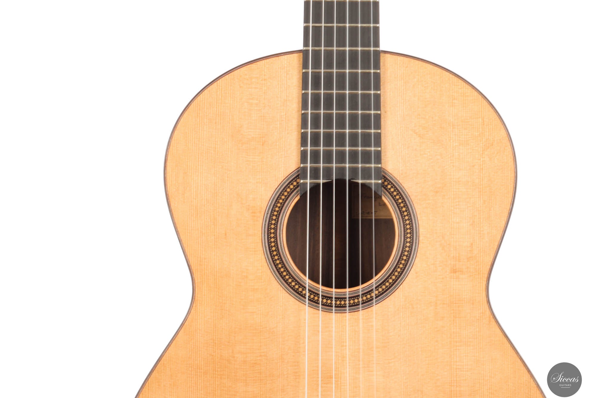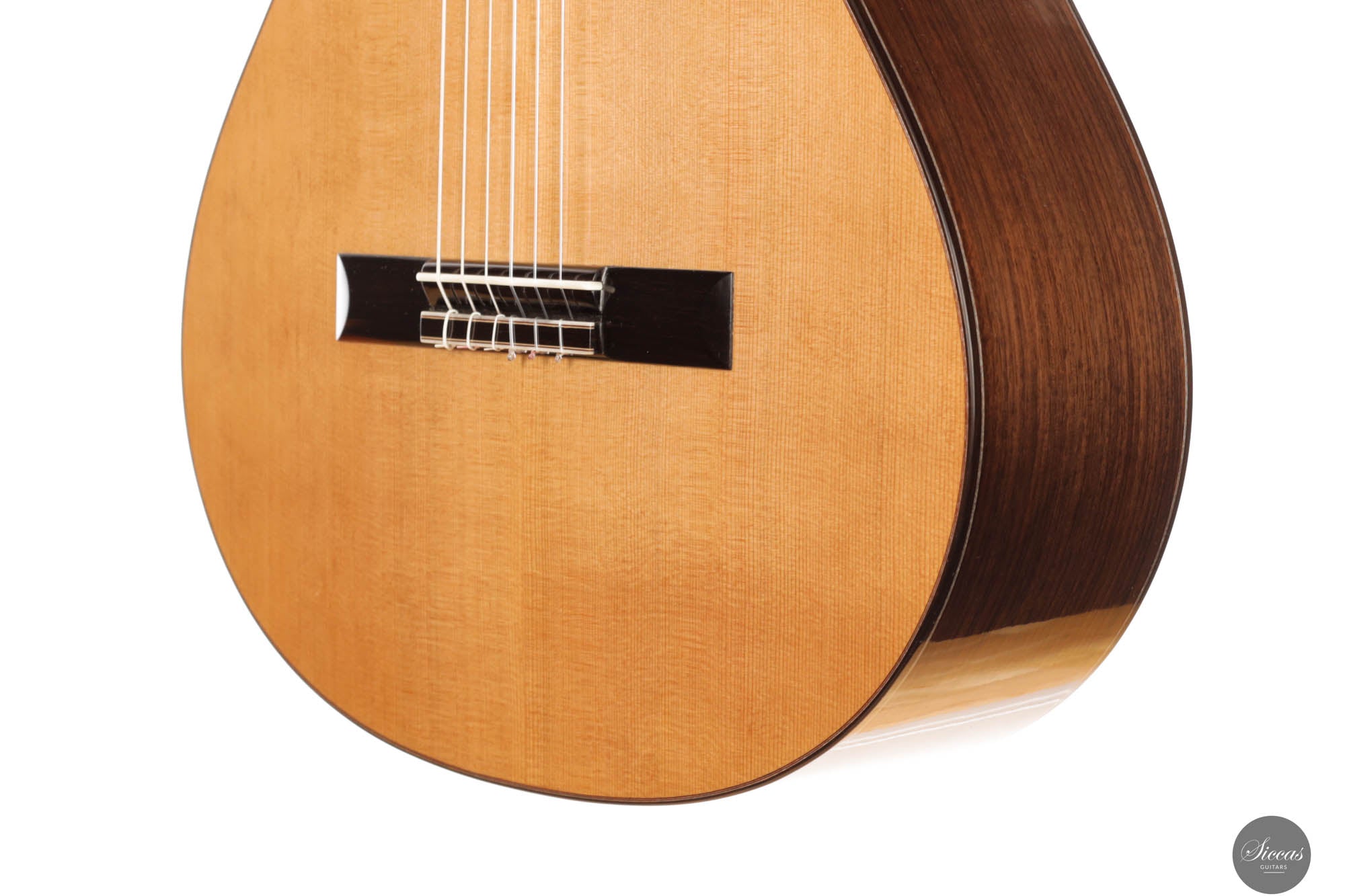 This brand-new guitar, numbered 95, exemplifies the timeless elegance of a proven tone-wood combination: Cedar top and Indian rosewood back and sides. What sets this guitar apart, is its lattice bracing, a distinctive feature of this masterpiece that results in a soundboard of unparalleled reactivity, breathing life into each note and ensuring they swell with resonance and depth. The trebles resonate with profound amplitude, exuding a mature and harmonious timbre, pivotal in maintaining the genuine essence of the guitar.