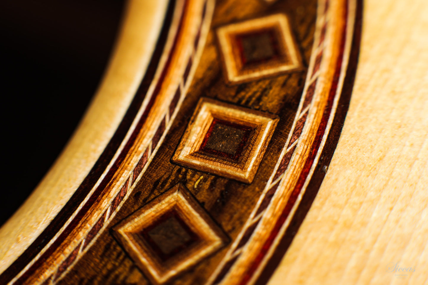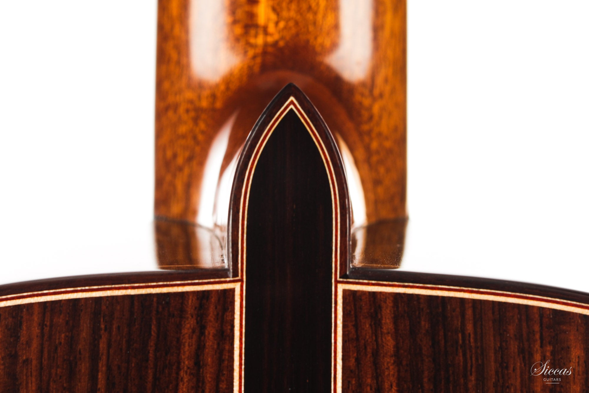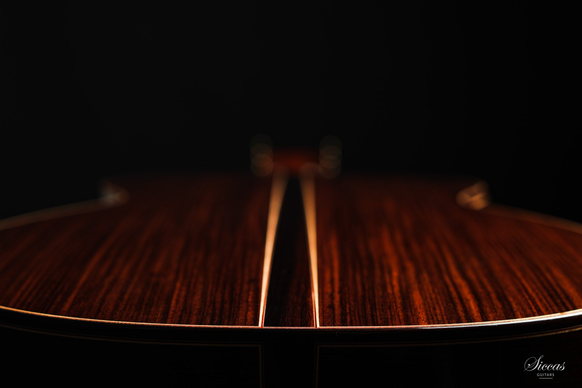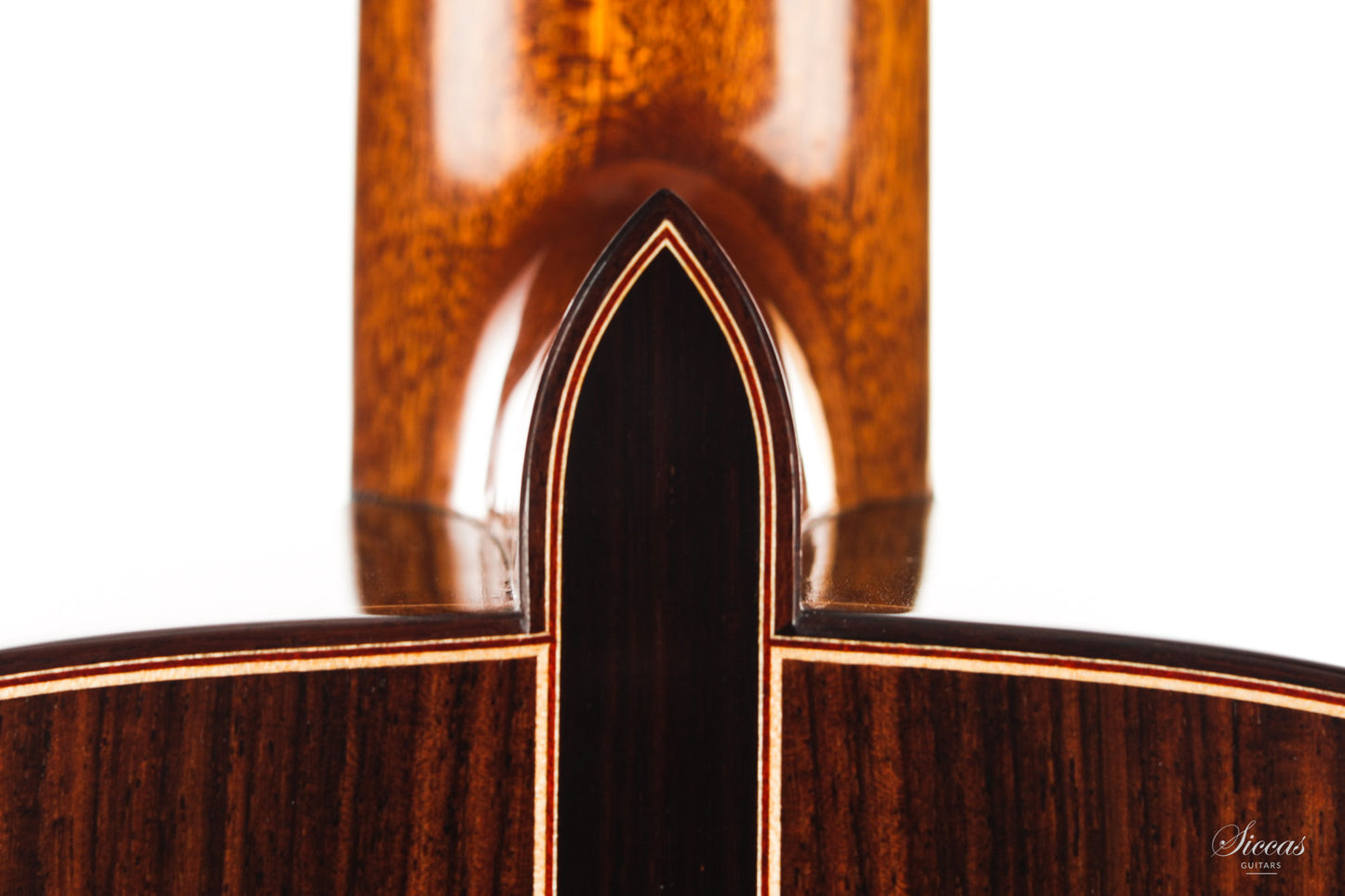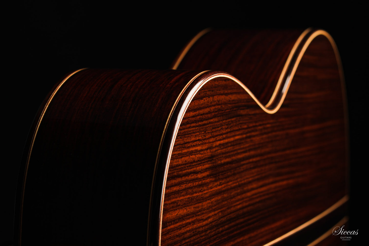 The construction is based on the Spanish tradition. In addition, the soundboard bracing follows the concept of Robert Bouchet, with a filigree control of the thicknesses. Discreet structural and optical details go beyond the conventional frame. For example, the soundboard falls off the treble side above the soundhole, increasing the height of the fretboard and thus improving playability and sound projection in the high treble. It is therefore a guitar which is powerful enough to go on stage, with a very comfortable playability and everything a professional guitarist would be looking for.