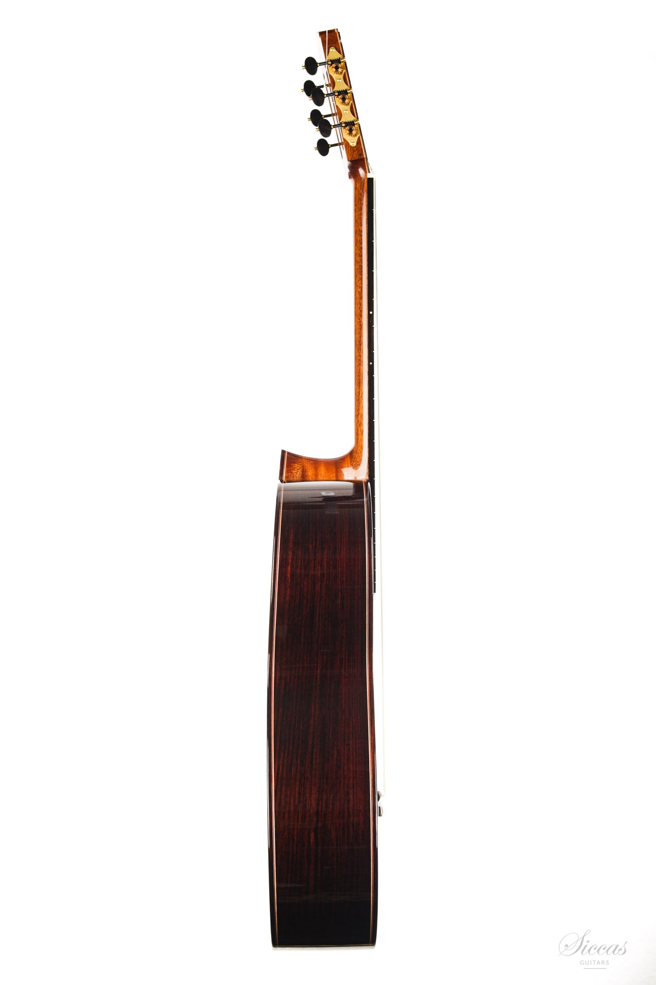 This guitar is French polished and has first quality Scheller tuners. It is an absolute gem and definitely worth a try if you are looking for an outermost singing traditional guitar with great volume and lovely craftsmanship.
