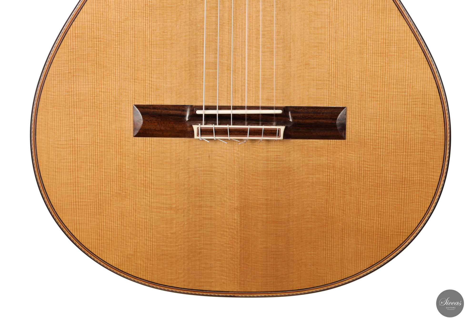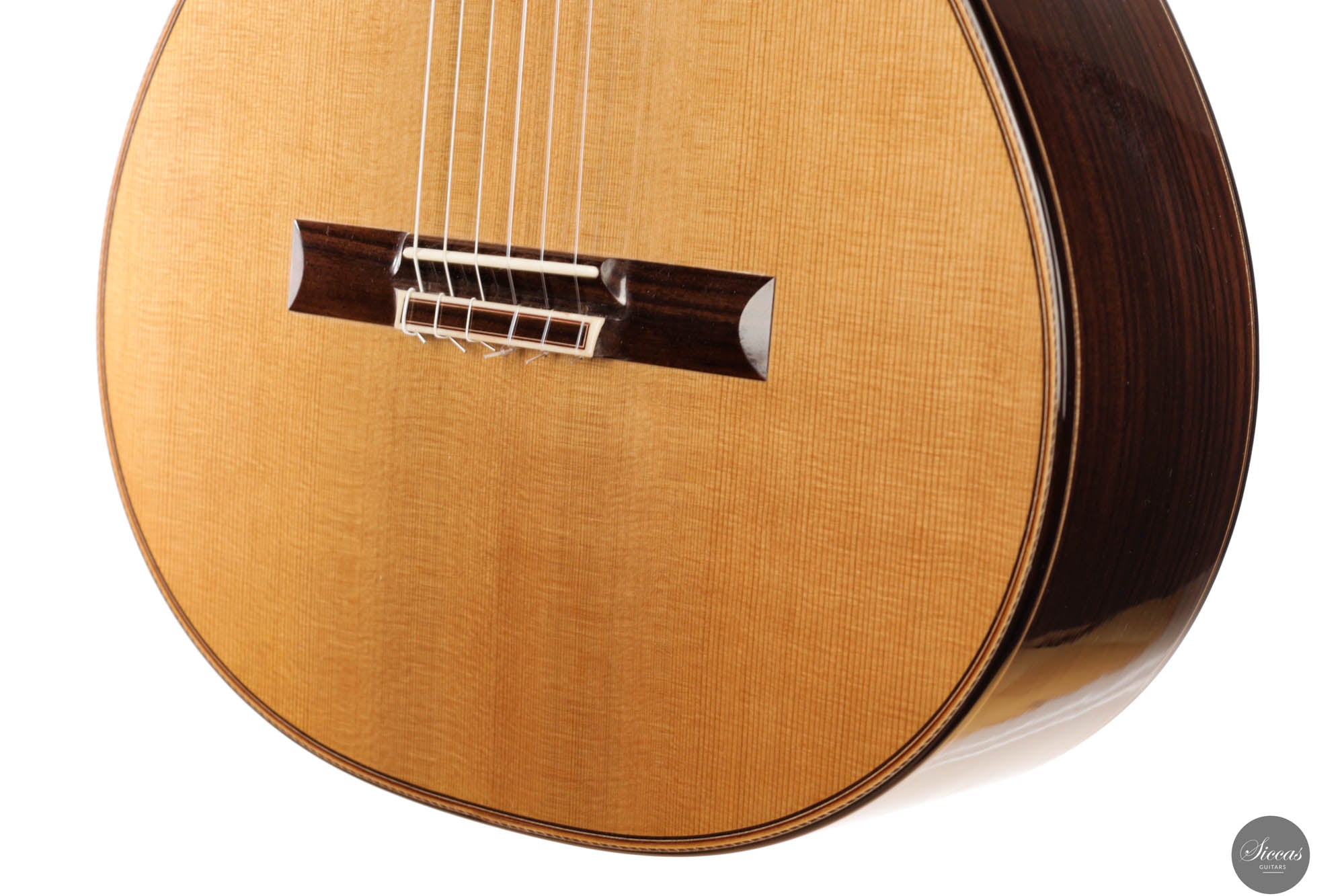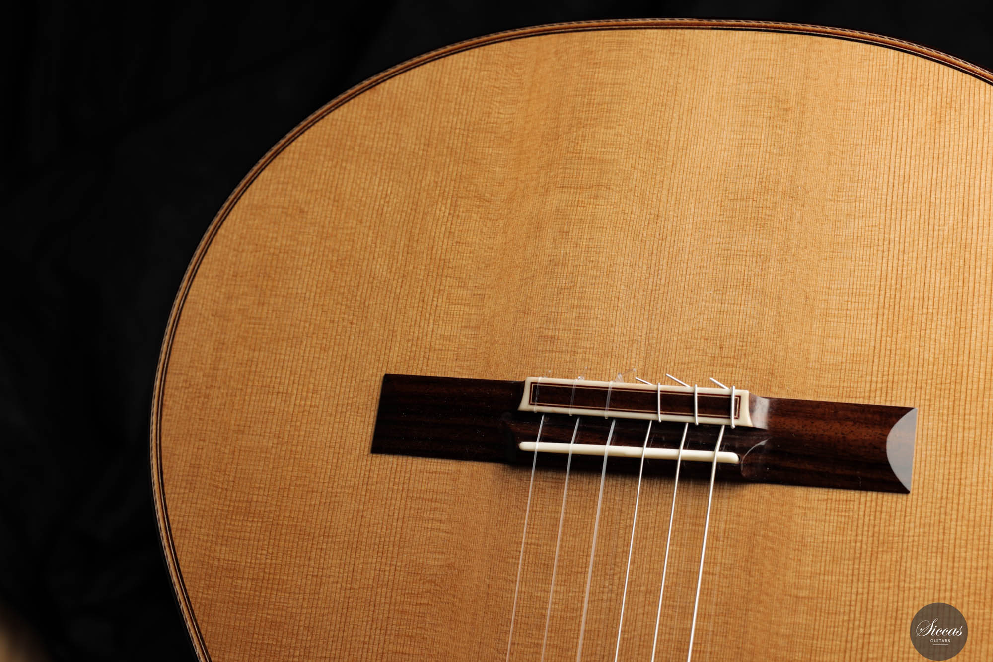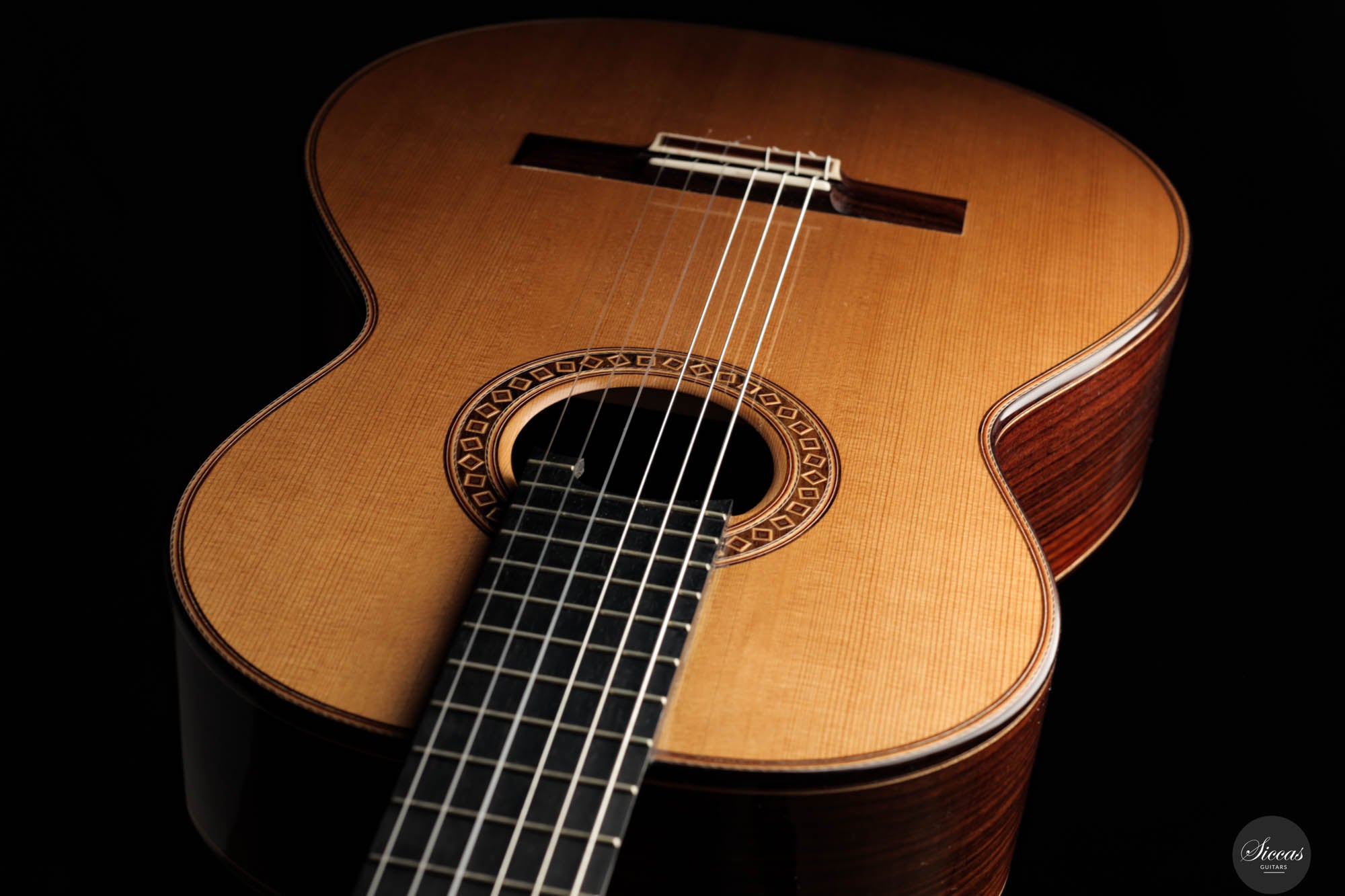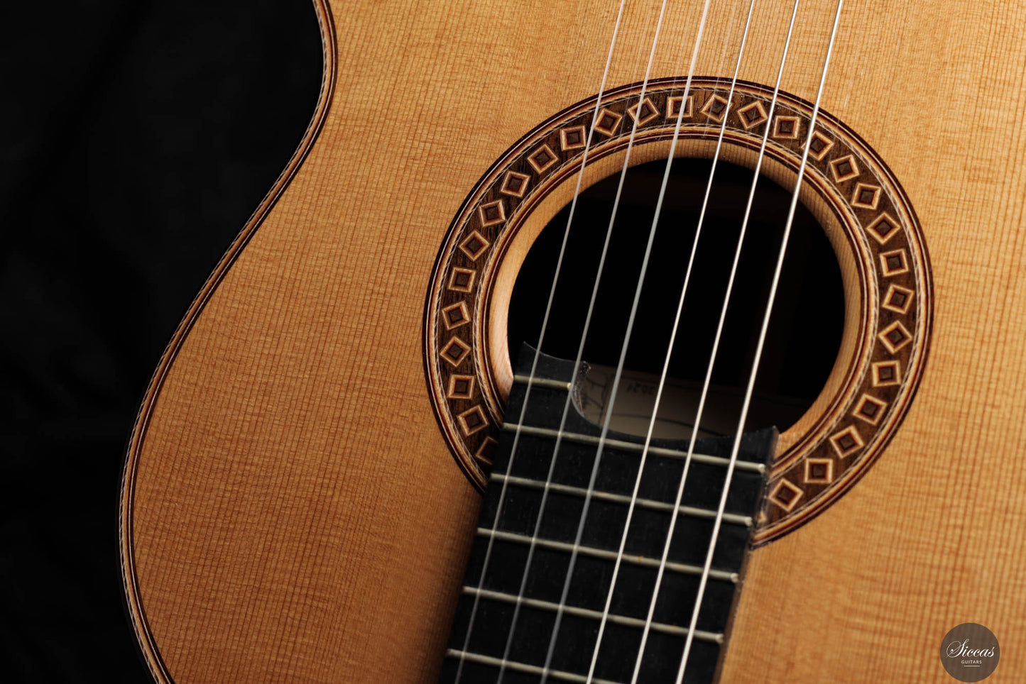 Friederike Linscheid's guitar, numbered 51, emerges from her workshop as a traditionally constructed marvel, designed to deliver unparalleled musical expression. The choice of a cedar top, complemented by spruce bracing inspired by Robert Bouchet, endows this instrument with a rich, full-bodied, and warm tone, distinguishing it in the realm of classical guitars. The incorporation of Indian rosewood sides, laminated with mahogany in a manner reminiscent of Daniel Friederich's craftsmanship, and reinforced with braces styled after Dominique Field, contributes to the guitar's robust character. This meticulous construction results in a guitar that not only produces an expressive sound but also showcases a wide spectrum of tonal colors, making it a treasure trove of musical possibilities. As a pre-loved instrument, this guitar is in excellent condition with superficial playing wears.
