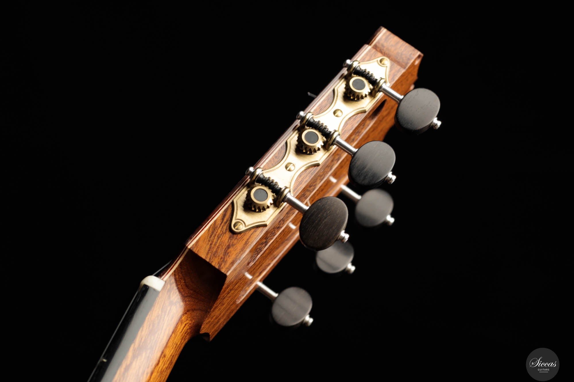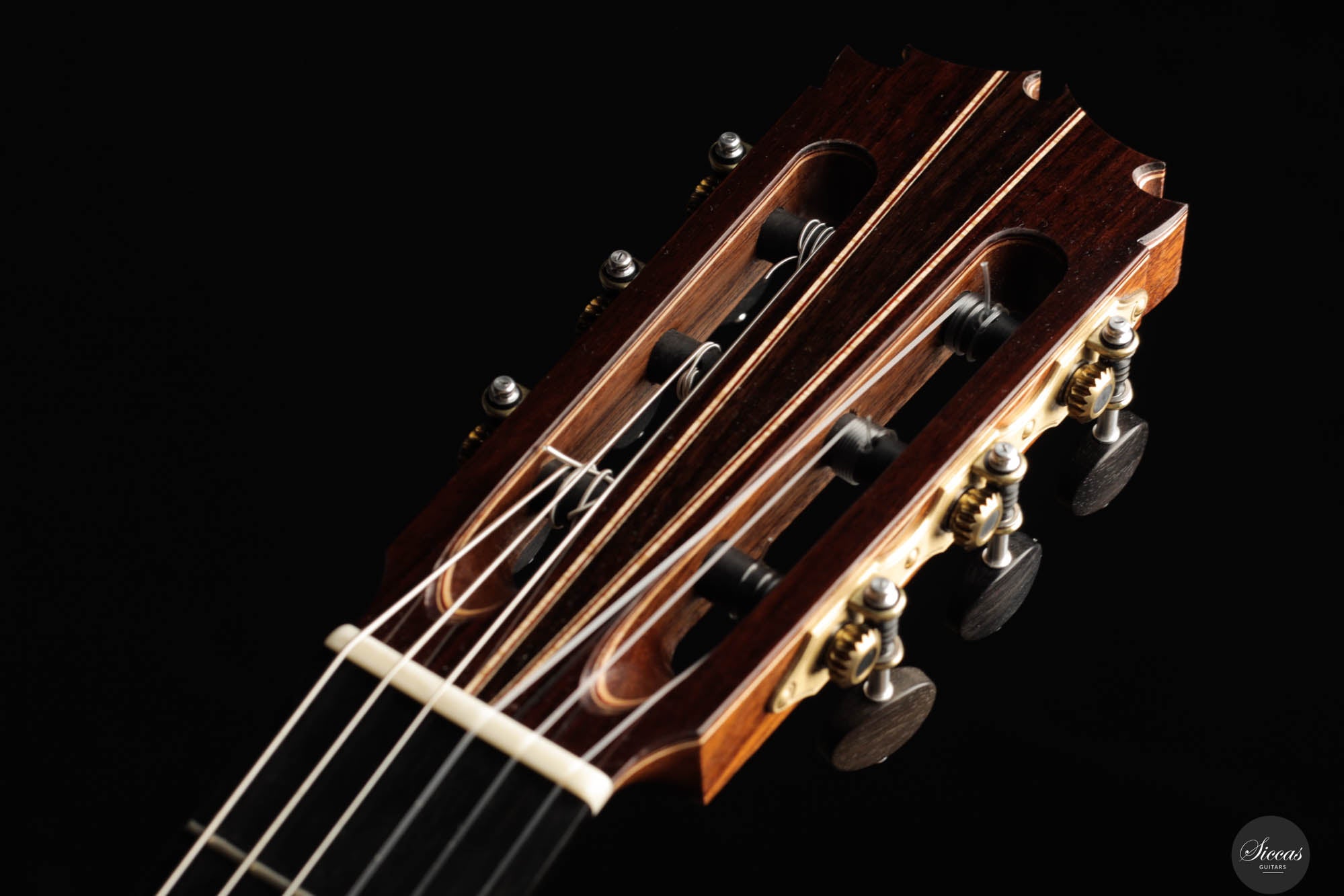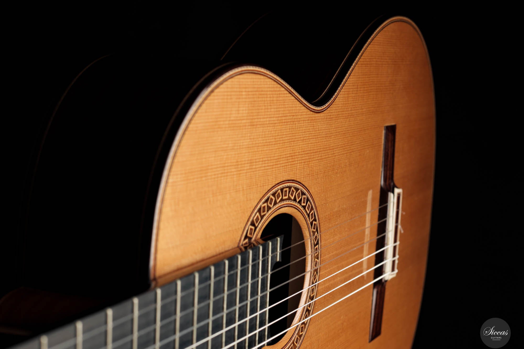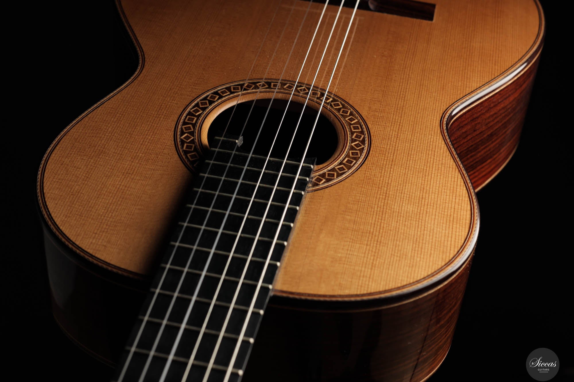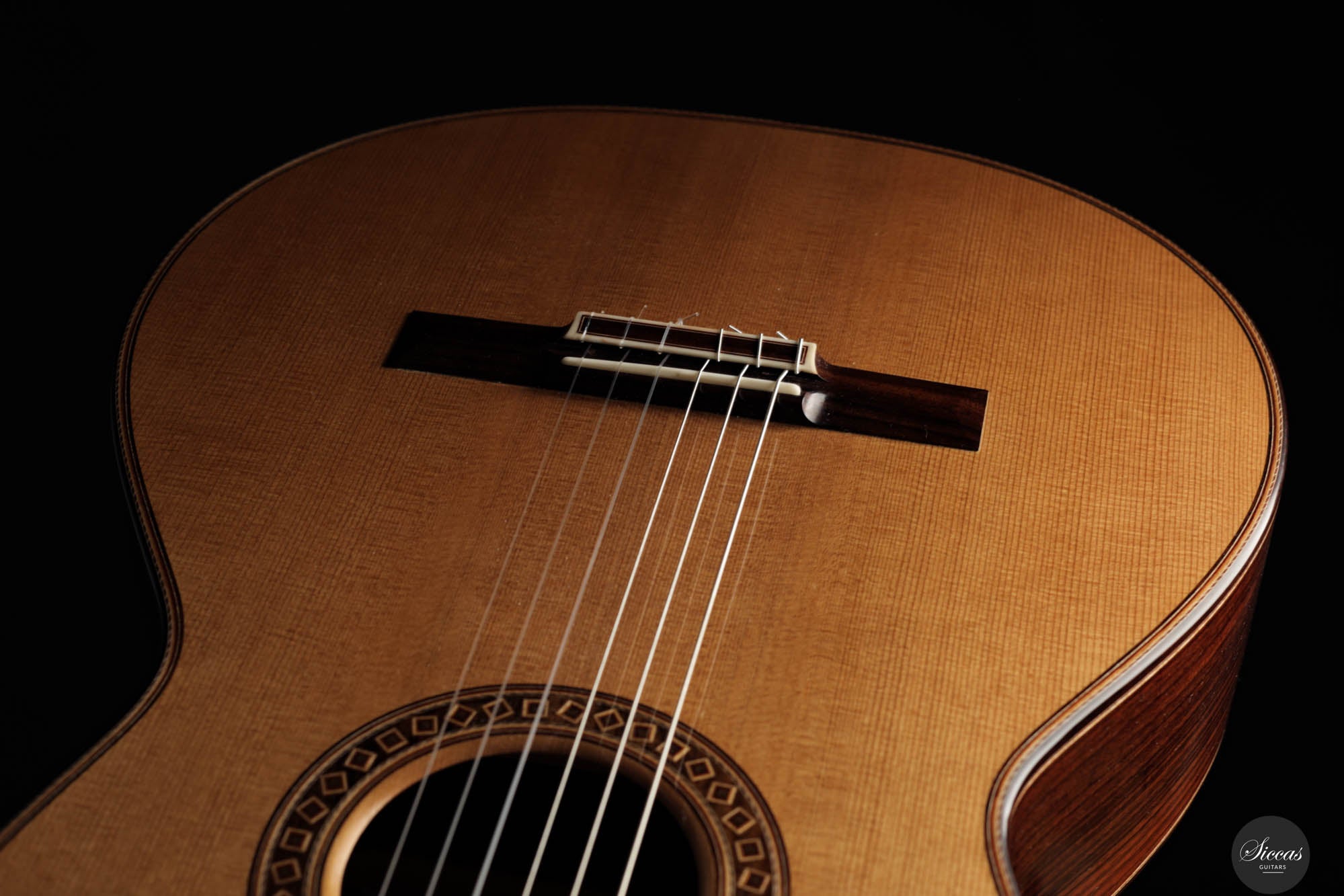 Friederike Linscheid's guitar, numbered 51, emerges from her workshop as a traditionally constructed marvel, designed to deliver unparalleled musical expression. The choice of a cedar top, complemented by spruce bracing inspired by Robert Bouchet, endows this instrument with a rich, full-bodied, and warm tone, distinguishing it in the realm of classical guitars. The incorporation of Indian rosewood sides, laminated with mahogany in a manner reminiscent of Daniel Friederich's craftsmanship, and reinforced with braces styled after Dominique Field, contributes to the guitar's robust character. This meticulous construction results in a guitar that not only produces an expressive sound but also showcases a wide spectrum of tonal colors, making it a treasure trove of musical possibilities. As a pre-loved instrument, this guitar is in excellent condition with superficial playing wears.