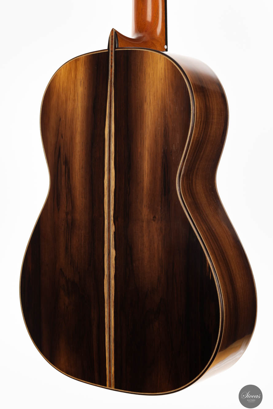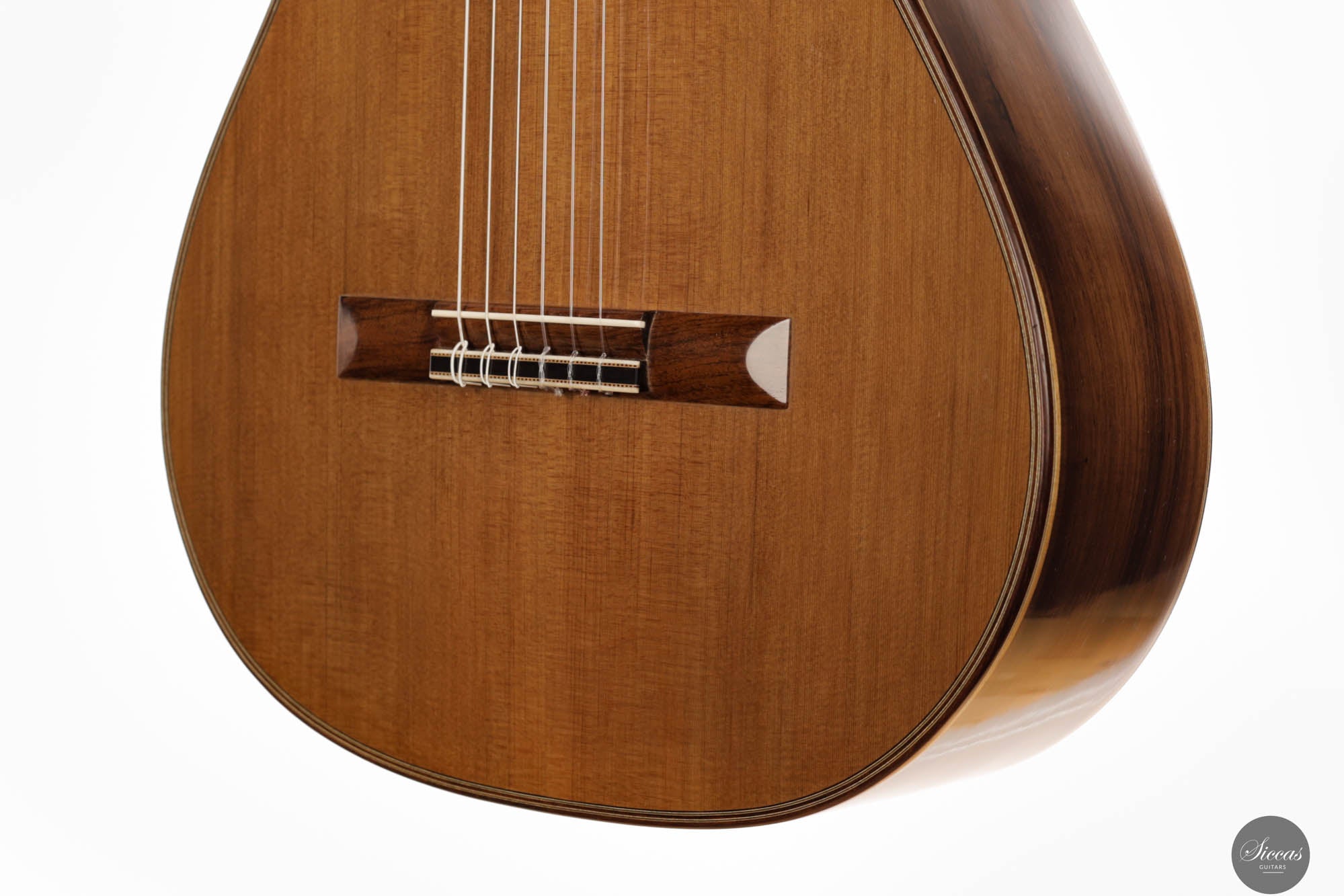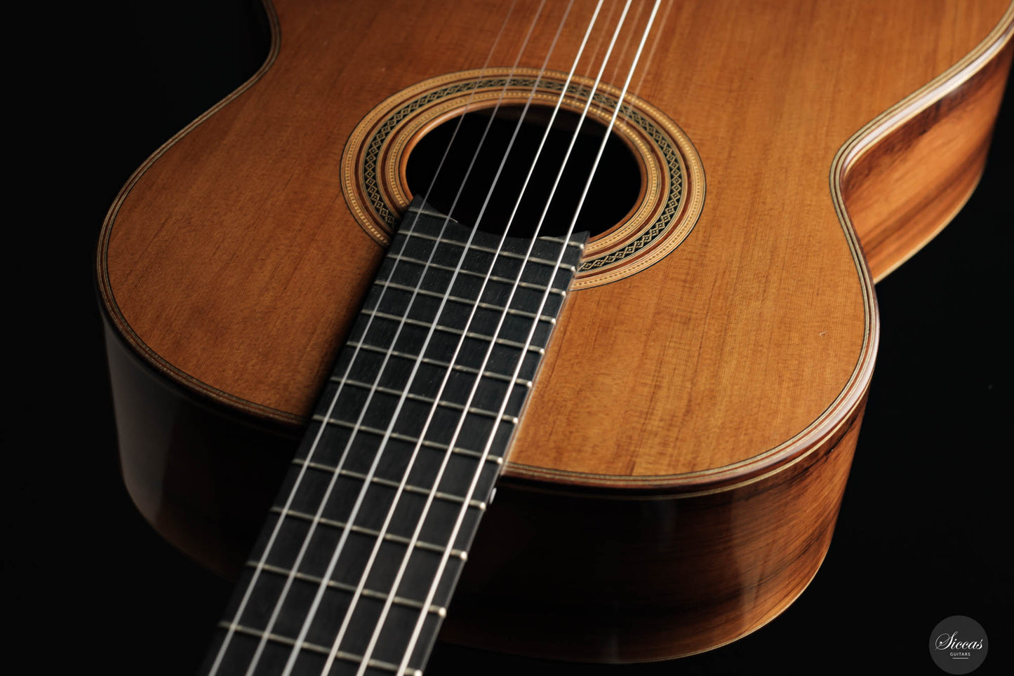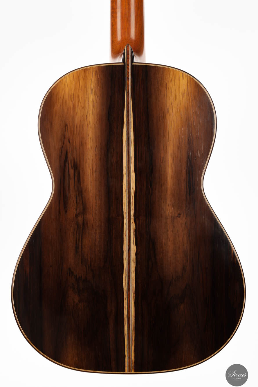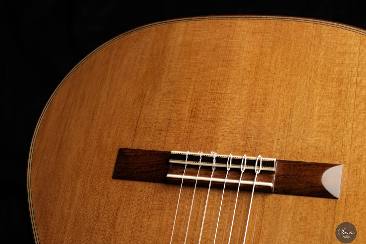Playing the 2006 Fritz Ober guitar is an experience that speaks to both the heart and the hands. Known for its remarkable ease of play and tonal balance, this instrument reflects Ober’s famed design ethos. Each note produced is in perfect harmony, illustrating the guitar's responsive and dynamic nature. More than just a fine example of Fritz Ober's craftsmanship, this guitar also carries a sentimental value, revered as one of the most exceptional German guitars of modern times. It embodies a legacy of meticulous craftsmanship and musical excellence, offering a rich and immersive playing experience for those fortunate enough to play it. This guitar not only connects with musicians through its superb playability and enchanting tones but also through the storied tradition it represents, making it a treasured piece for any serious guitarist.
