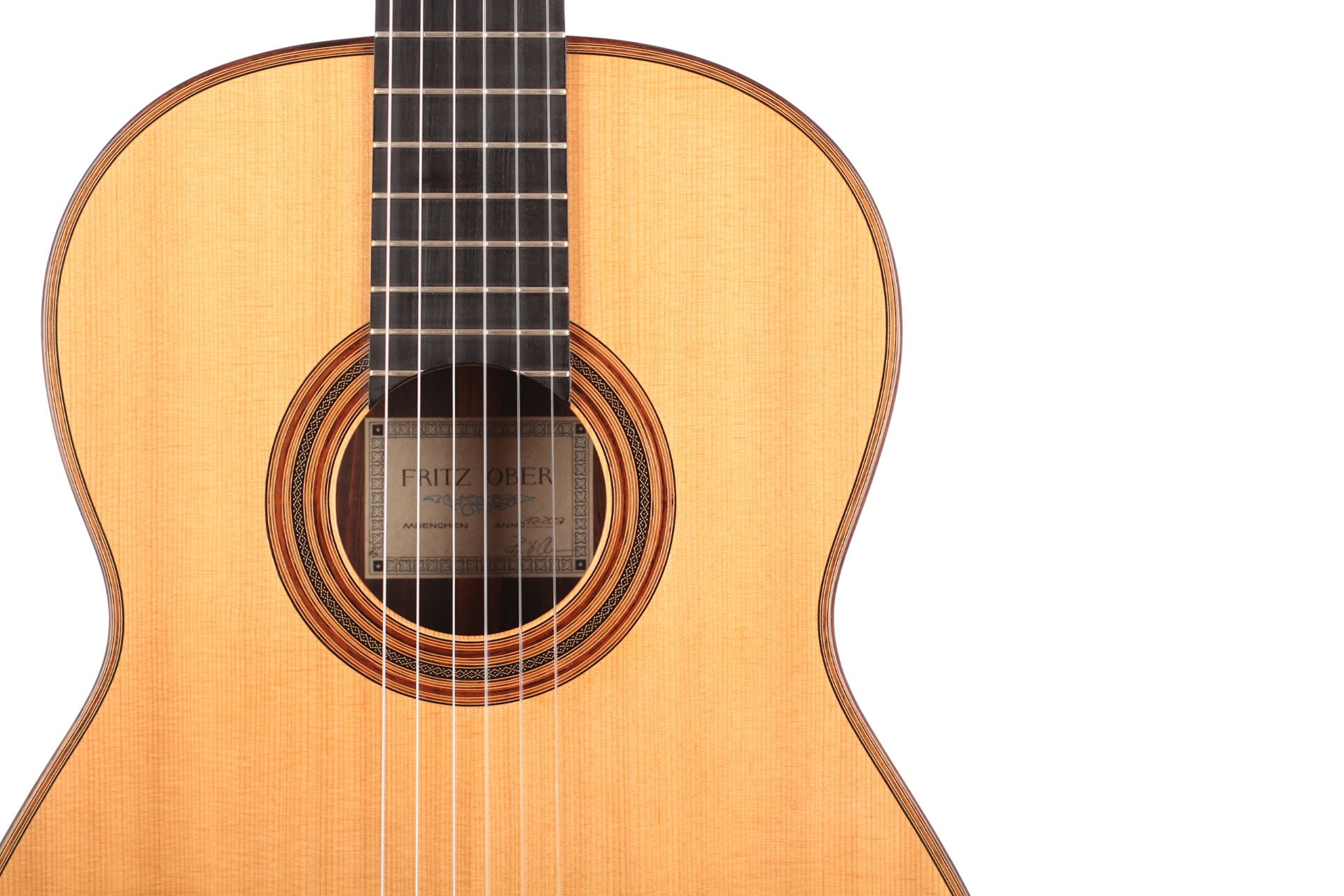 Price on requestLuthier: Fritz OberConstruction Year: 2019Construction Type: TraditionalTop: SpruceBack and Sides: Brazilian rosewood (CITES certified)Soundboard Finish: French polishBody Finish: French polishAir Body Frequency: C sharp / DWeight (g): 1345Tuner: Klaus SchellerCondition: Excellent -