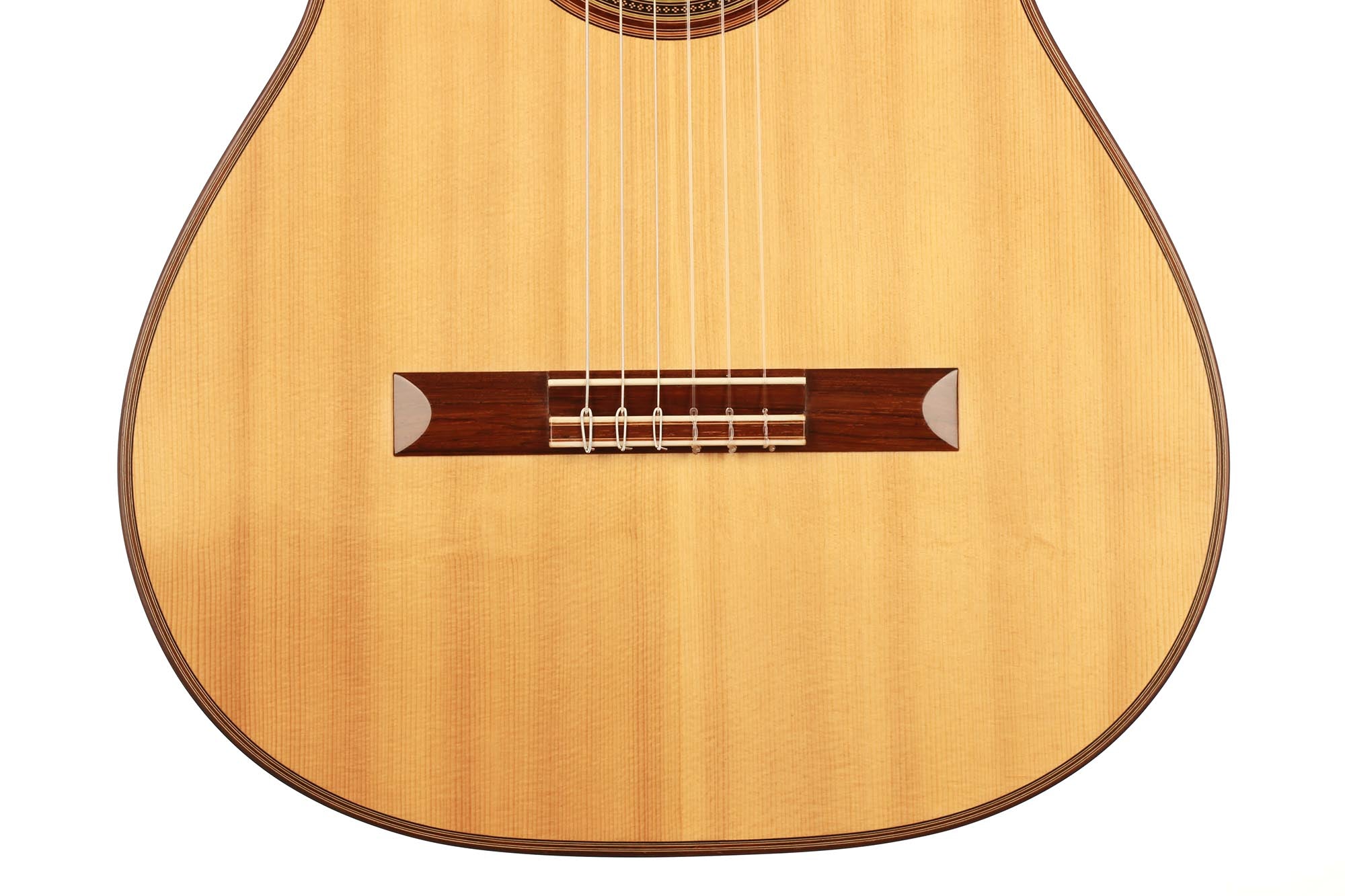 This guitar’s sound is graceful, subtle and magnificent. After having enjoyed the unique charm of the first string and the colossal deepness of the basses, the guitarist will be surprised by the sensitivity and sustain of the middle voices. Moreover, an ingenious balance and effortless playability make this guitar truly admirable as an ideal concert instrument.