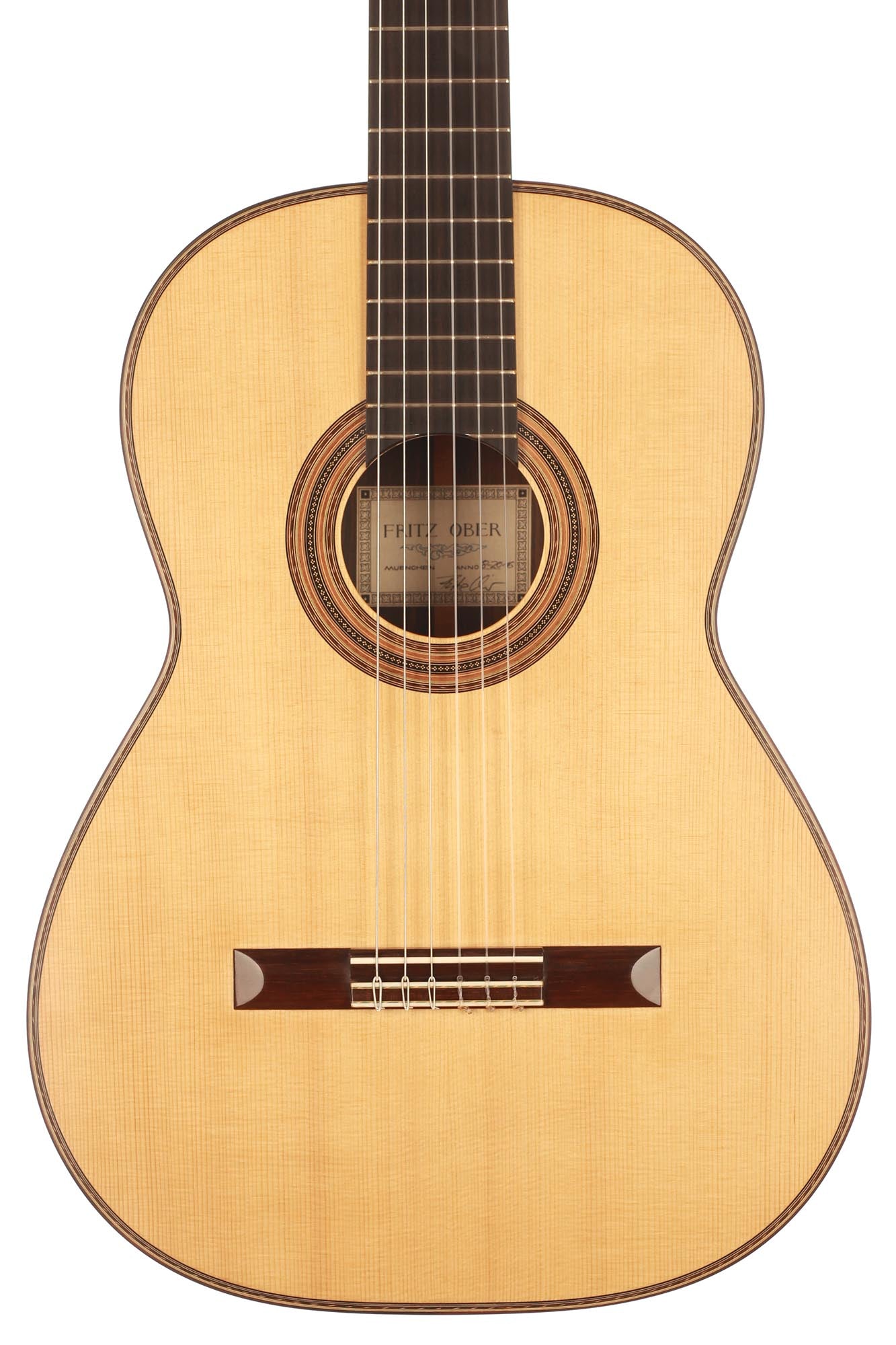 Price on requestLuthier: Fritz OberConstruction Year: 2019Construction Type: TraditionalTop: SpruceBack and Sides: Brazilian rosewood (CITES certified)Soundboard Finish: French polishBody Finish: French polishAir Body Frequency: C sharp / DWeight (g): 1345Tuner: Klaus SchellerCondition: Excellent -