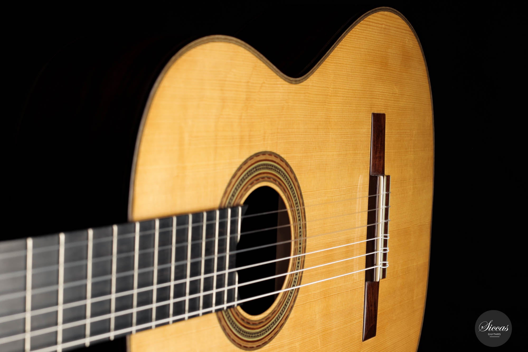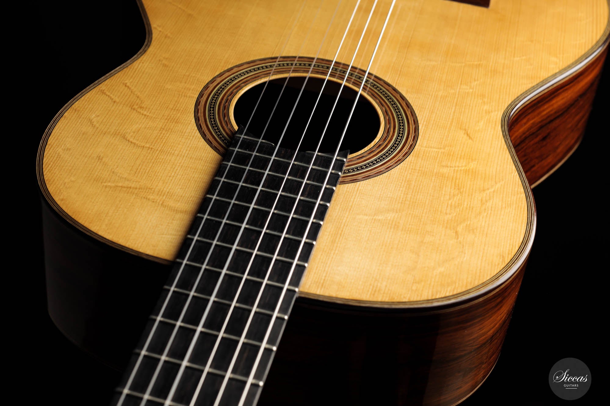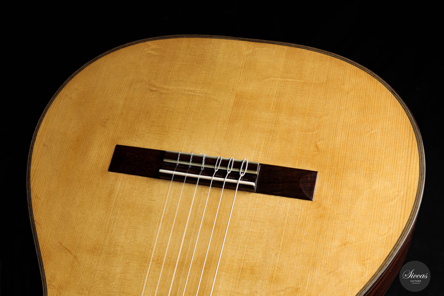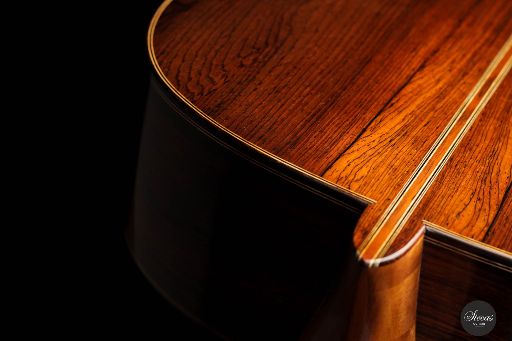 Harmoniously, the guitar exhibits a deep D# air resonance, attributed to its traditional seven fan bracing. A meticulous arrangement that brings forth an orchestra of sounds: from deep, elegant basses to trebles that resonate with a singing sweetness. Its rounded tone, coupled with an array of sound-colour possibilities, promises an exploration of musical landscapes that only a few instruments can genuinely deliver.