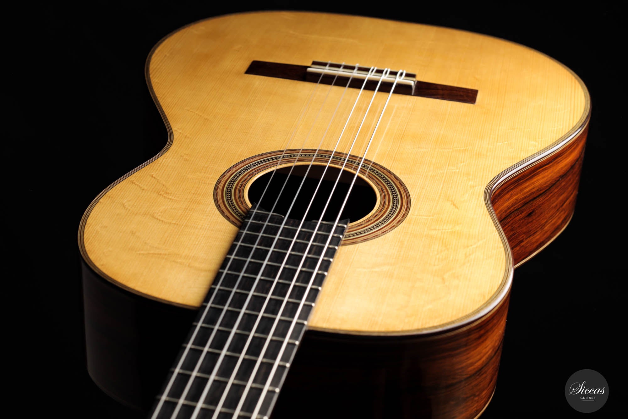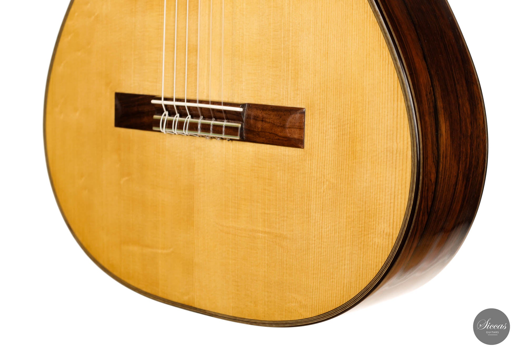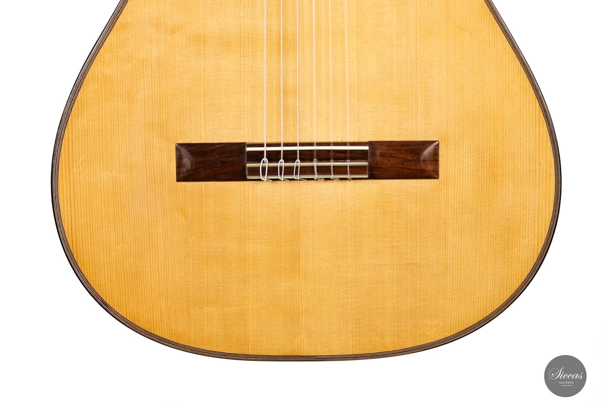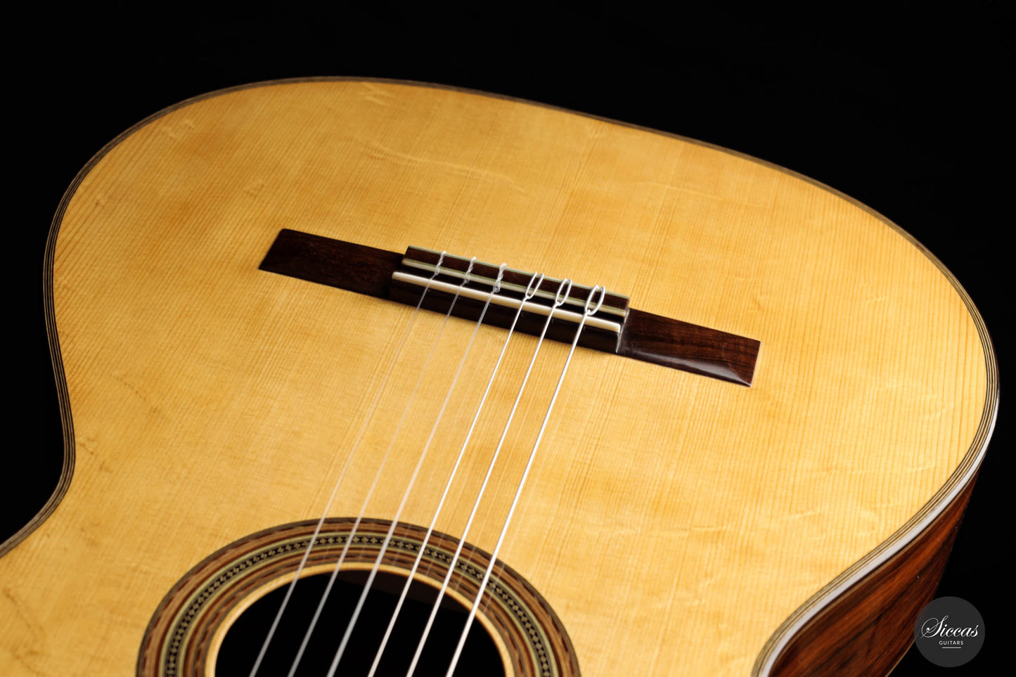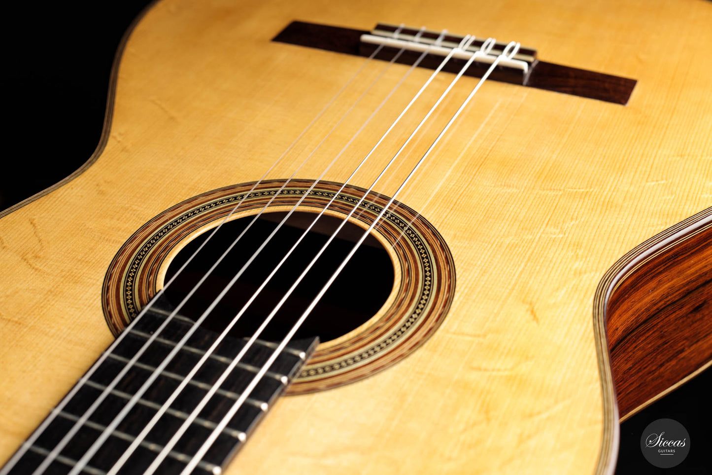 Harmoniously, the guitar exhibits a deep D# air resonance, attributed to its traditional seven fan bracing. A meticulous arrangement that brings forth an orchestra of sounds: from deep, elegant basses to trebles that resonate with a singing sweetness. Its rounded tone, coupled with an array of sound-colour possibilities, promises an exploration of musical landscapes that only a few instruments can genuinely deliver.