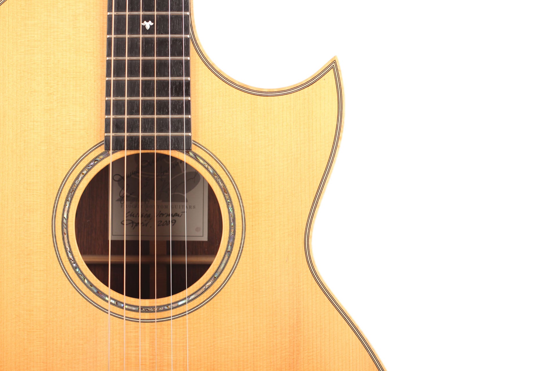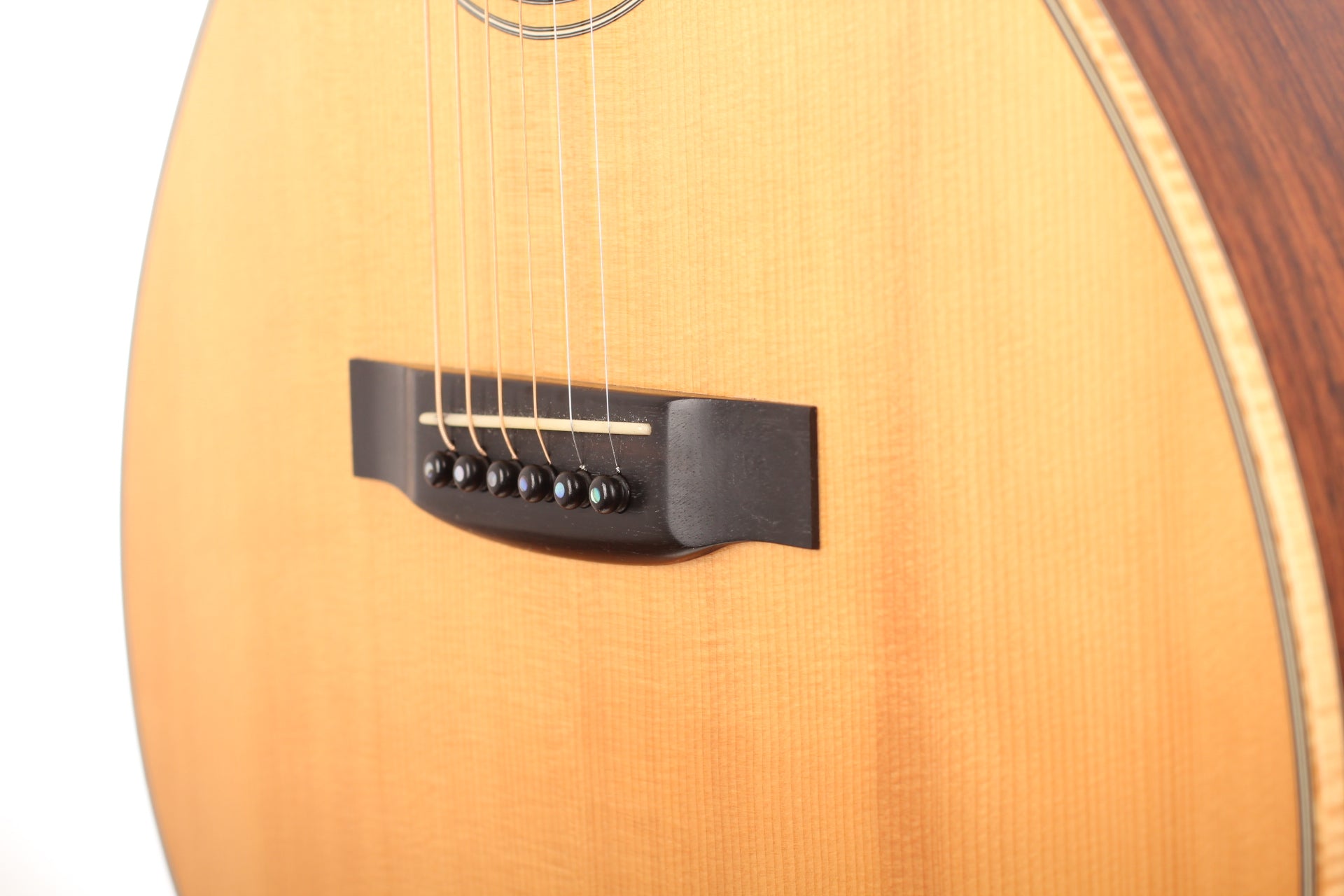 Price: $7,123Sale price $7,123 Price:Unit price / per Tax free (0% BM)$0Save: $-7,123Construction Year: 2025Construction Type: TraditionalTop: SpruceBack and Sides: Indian rosewoodSoundboard Finish: French polishBody Finish: French polishAir Body Frequency: F sharp / GWeight (g): 1435Tuner: Kris BarnettCondition: New -
