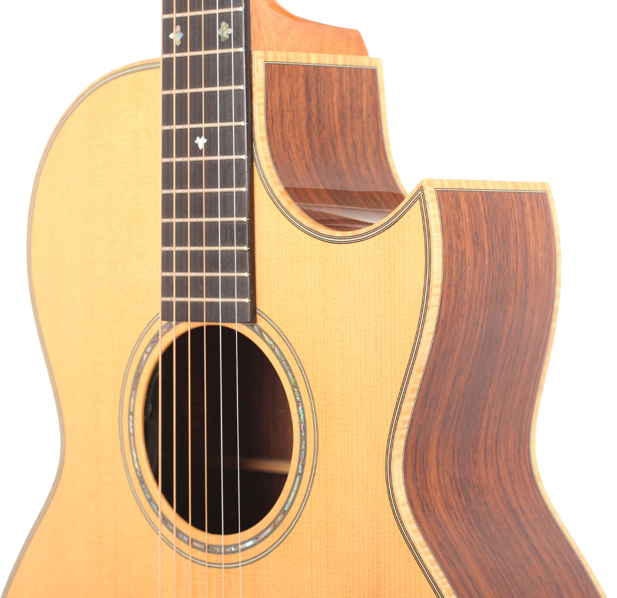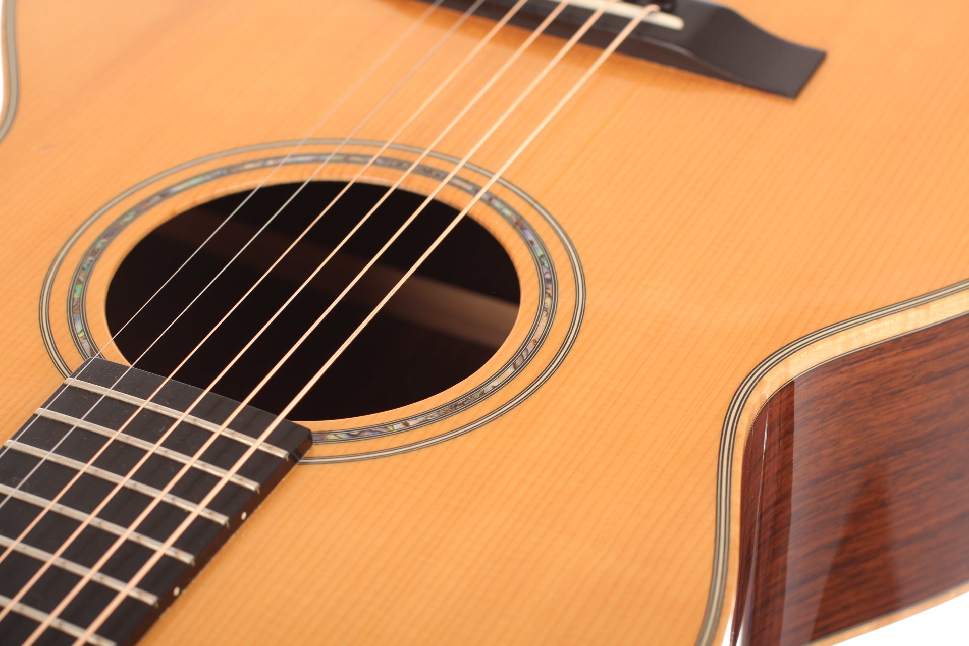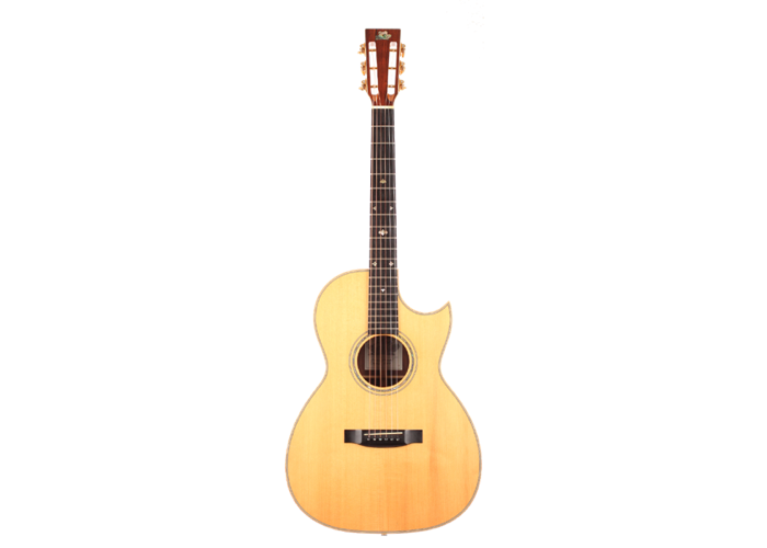 For any fingerstyle player, it doesn’t get much better than Froggy Bottom. This H12 Deluxe cutaway has a punchy, direct tone, dry and crisp. The handsome Florentine cutaway allows for easy access way up the neck. Combine that with the slim comfortable neck profile and smooth playability up and down the ebony fingerboard, and you’ve got a well-oiled machine that would suit any serious picker.