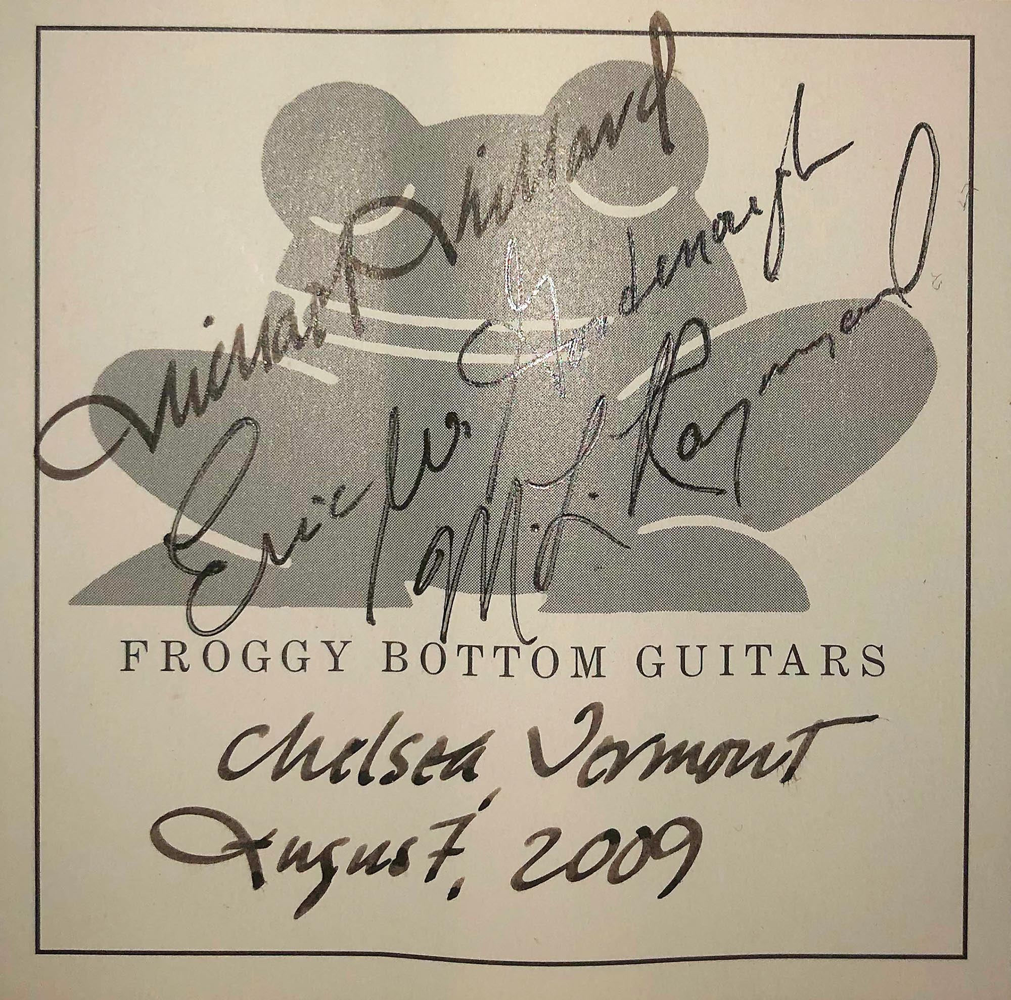 Over the course of fifty years of instrument building handmade custom guitars Froggy Bottom make one guitar at a time. At Froggy Bottom, they have not lusted to increase their guitar output year after year. Their connection to each instrument and player would suffer. Instead, they strive to get each instrument to exceed the hopes and expectations of its player, to open new territory for them and to satisfy and expand their musical lives. Every guitar is a custom guitar.