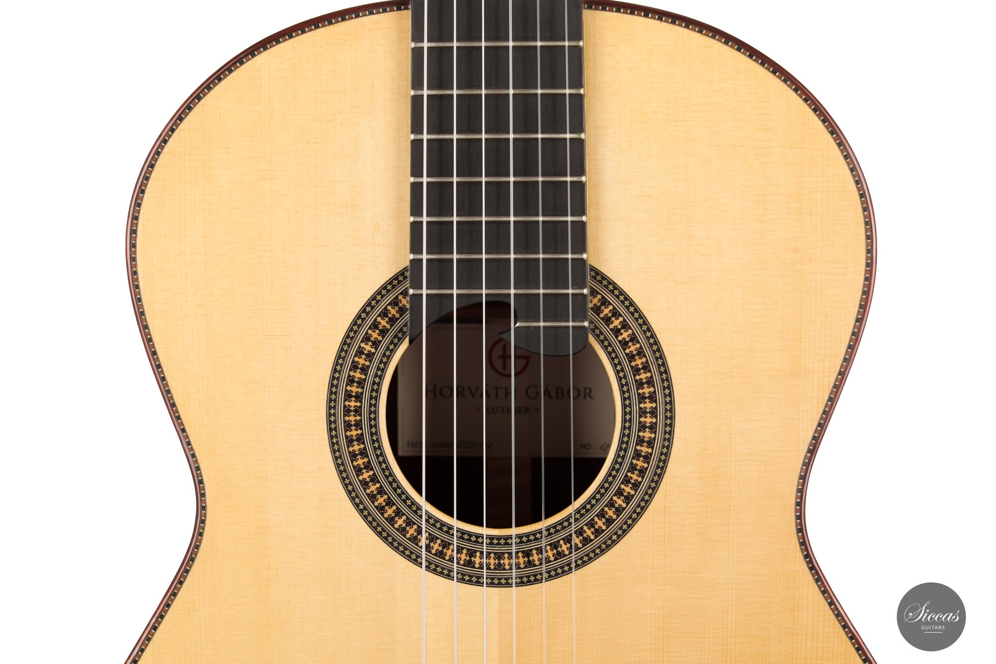 Gábor Horváth was born in 1986 in Salgótarján (Hungary). After studying classical guitar and jazz percussions, he met the violin maker András Nagy and the passion for instrument making started. Gábor Horváth completed studies at the Musical Instrument Making School of the Franz Liszt Academy of Music in 2010, where he obtained an official qualification as a Bowed and Plucked Musical Instrument Maker and Restorator. From 2013 on, Gábor devoted himself to classical guitar making, and he now works in his workshop in Bátonyterenye.
