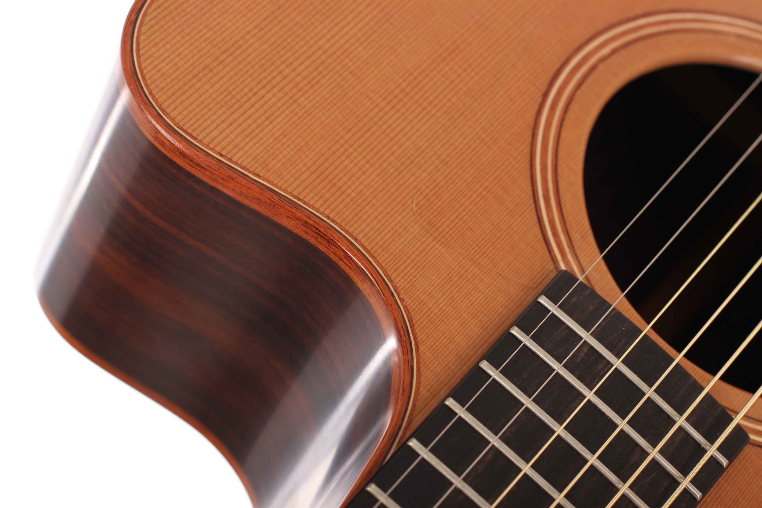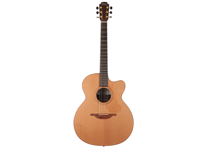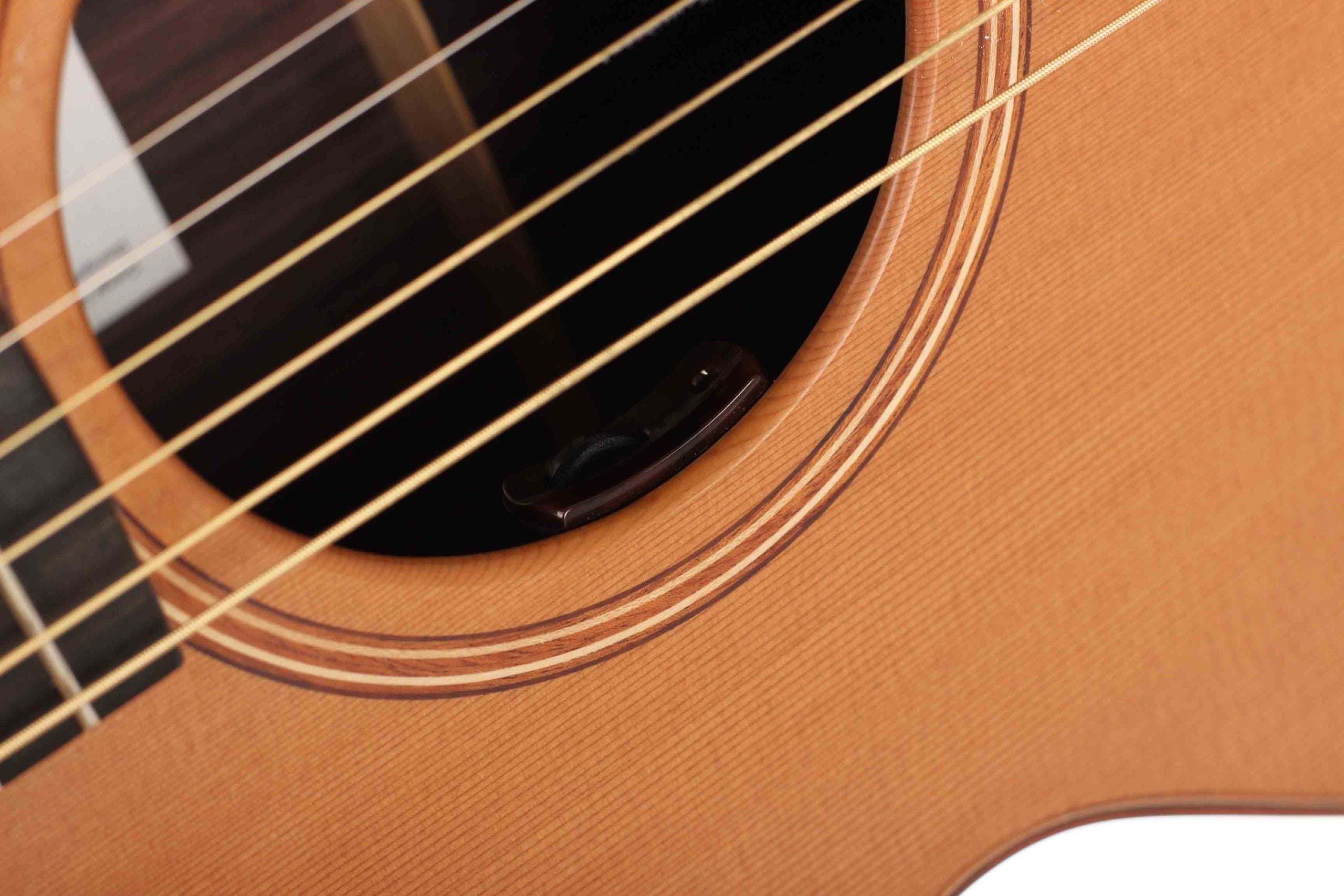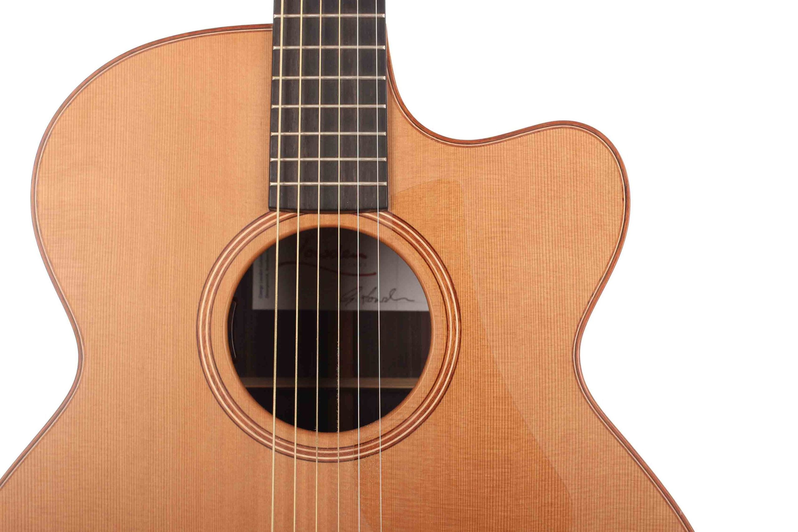 This model from 2013 is a real pleasure to play. It has a strong, taut, and brilliant sound which evolves like a carpet, being especially perfect for folk and country flat picking and strumming. The cutaway provides comfortable use of the higher frets. Beside a little ding on the top and minor signs of usage it is in excellent overall condition. It is equipped with an L. R. Baggs Lyrics pick up, which transports the guitar's actual voice to a live audience for a very realistic and inspiring sound. An original Hiscox case is included.