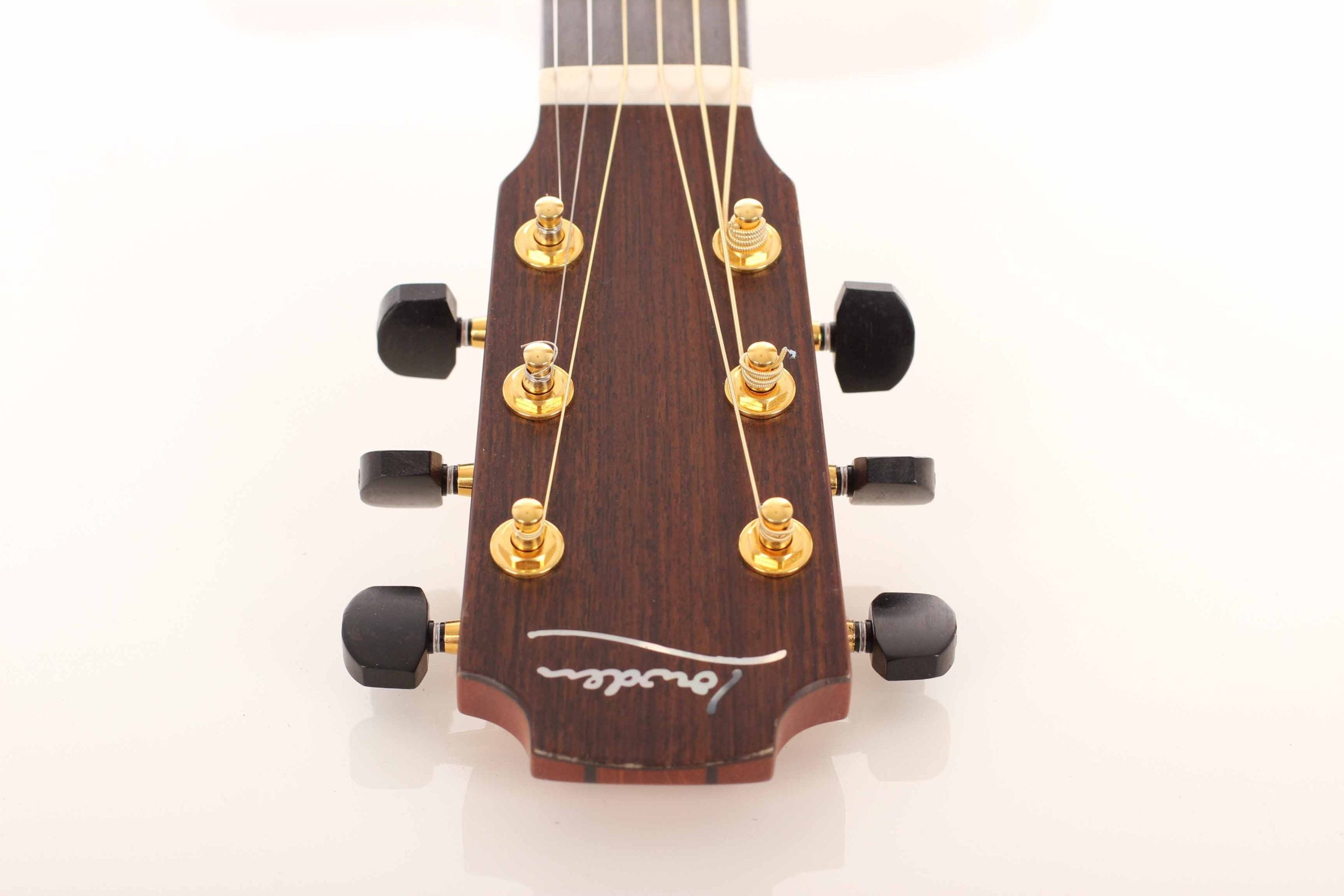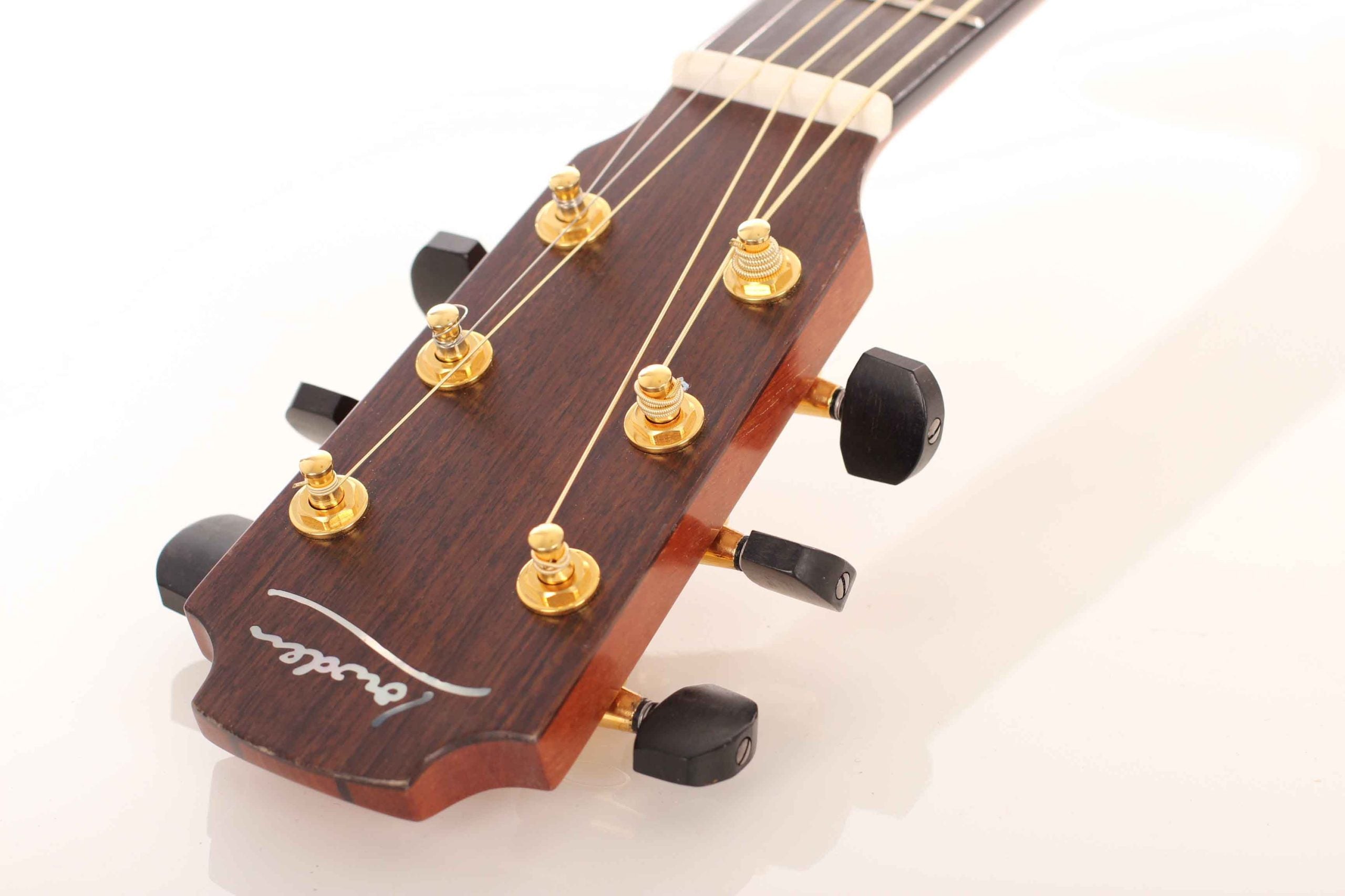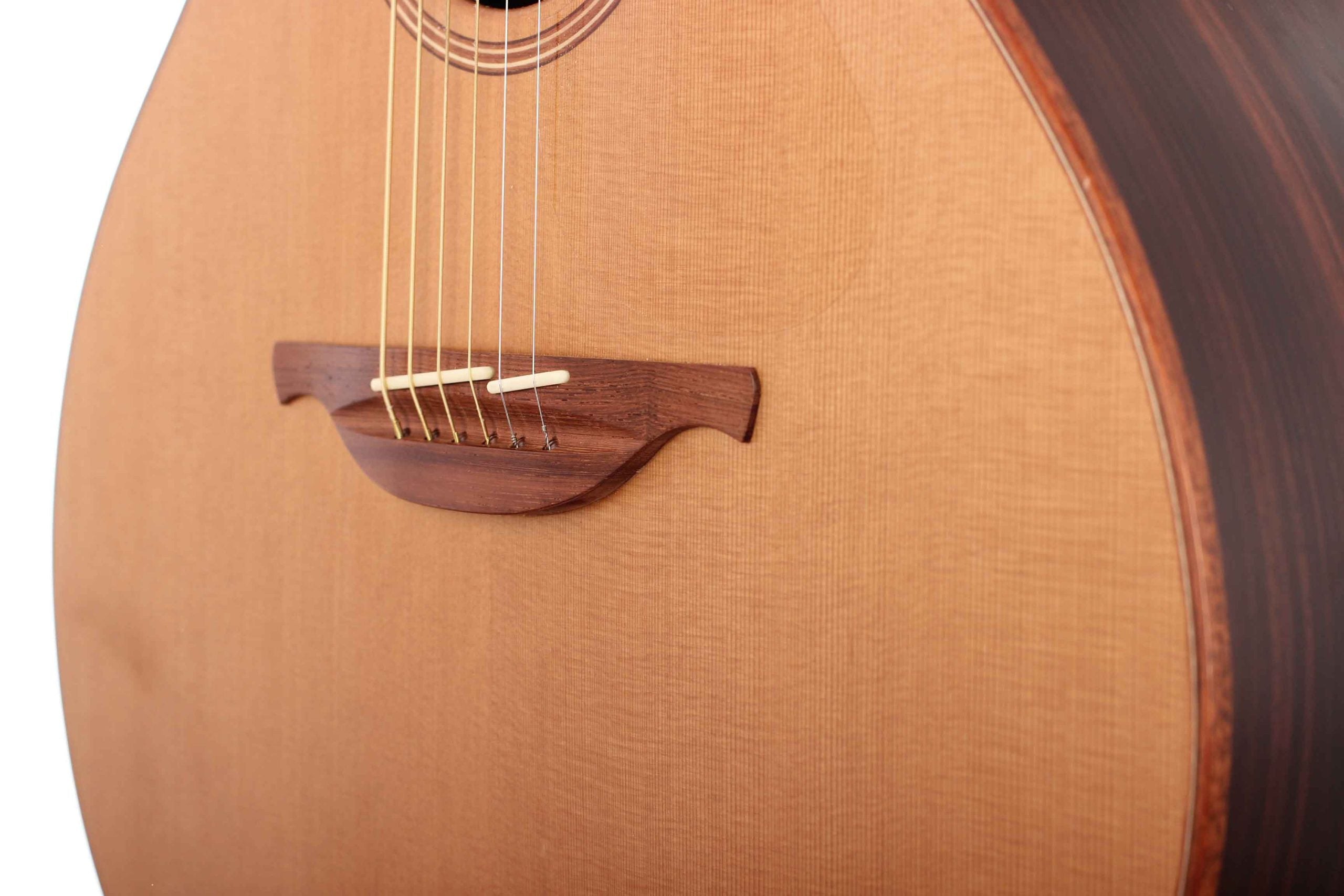This model from 2013 is a real pleasure to play. It has a strong, taut, and brilliant sound which evolves like a carpet, being especially perfect for folk and country flat picking and strumming. The cutaway provides comfortable use of the higher frets. Beside a little ding on the top and minor signs of usage it is in excellent overall condition. It is equipped with an L. R. Baggs Lyrics pick up, which transports the guitar's actual voice to a live audience for a very realistic and inspiring sound. An original Hiscox case is included.