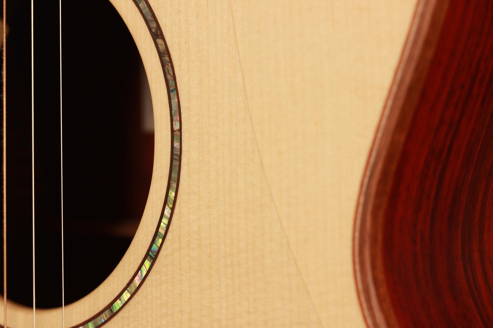 The 12 Fret model is based on the S size body. Whilst the scale length (630mm) remains the same as the regular 14 fret S model, the bridge has been relocated and the soundbox uniquely voiced to create a guitar that offers something different to anything else in the Lowden range. The location of the bridge on the soundboard increases the guitars midrange punch and despite its more compact feel, the 12 Fret offers projection and vibrancy more akin to a guitar with a much larger body.