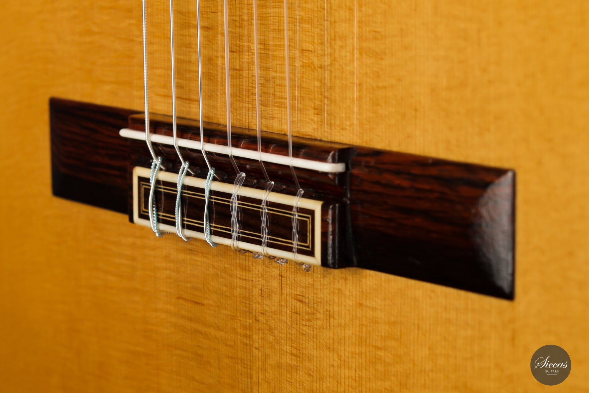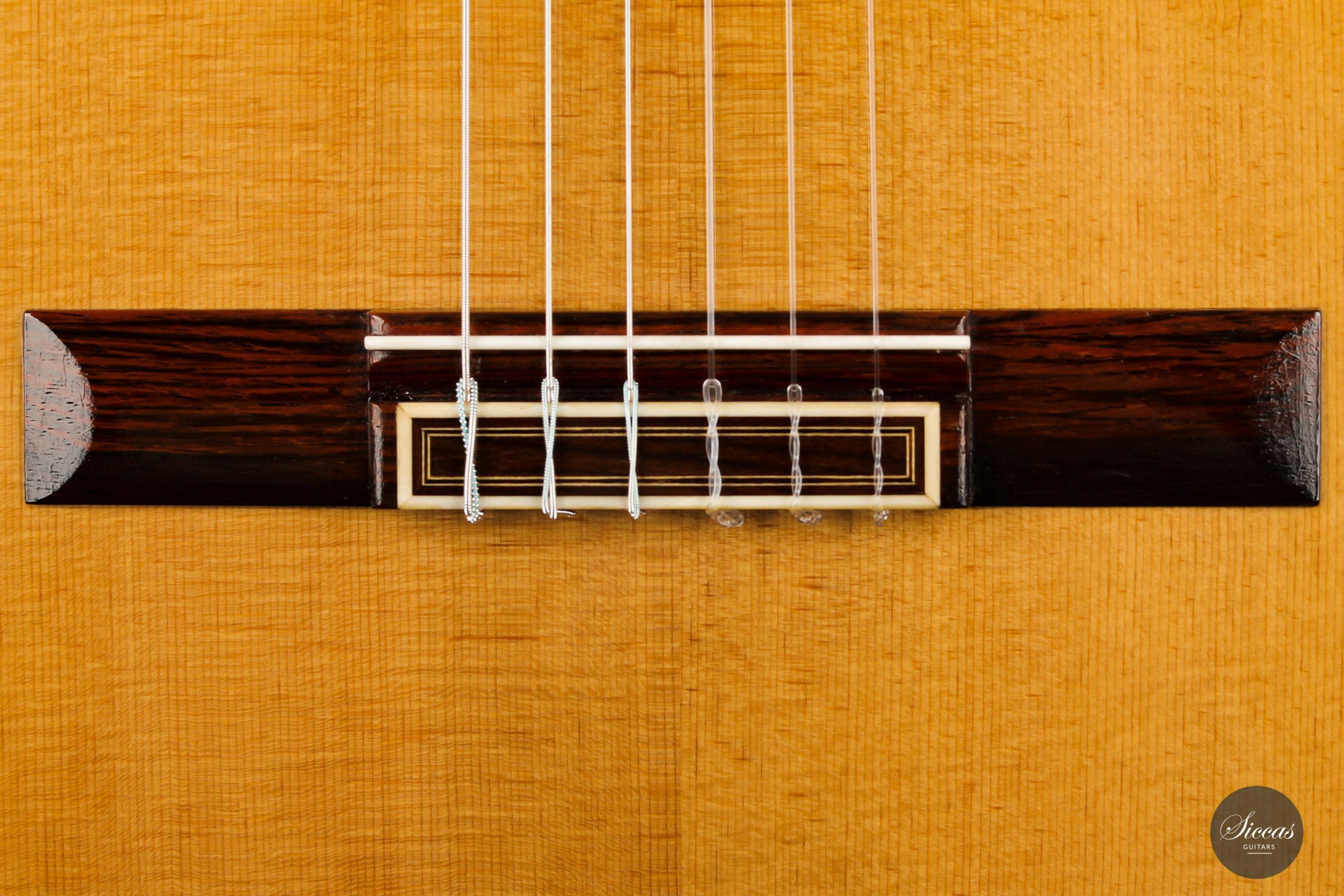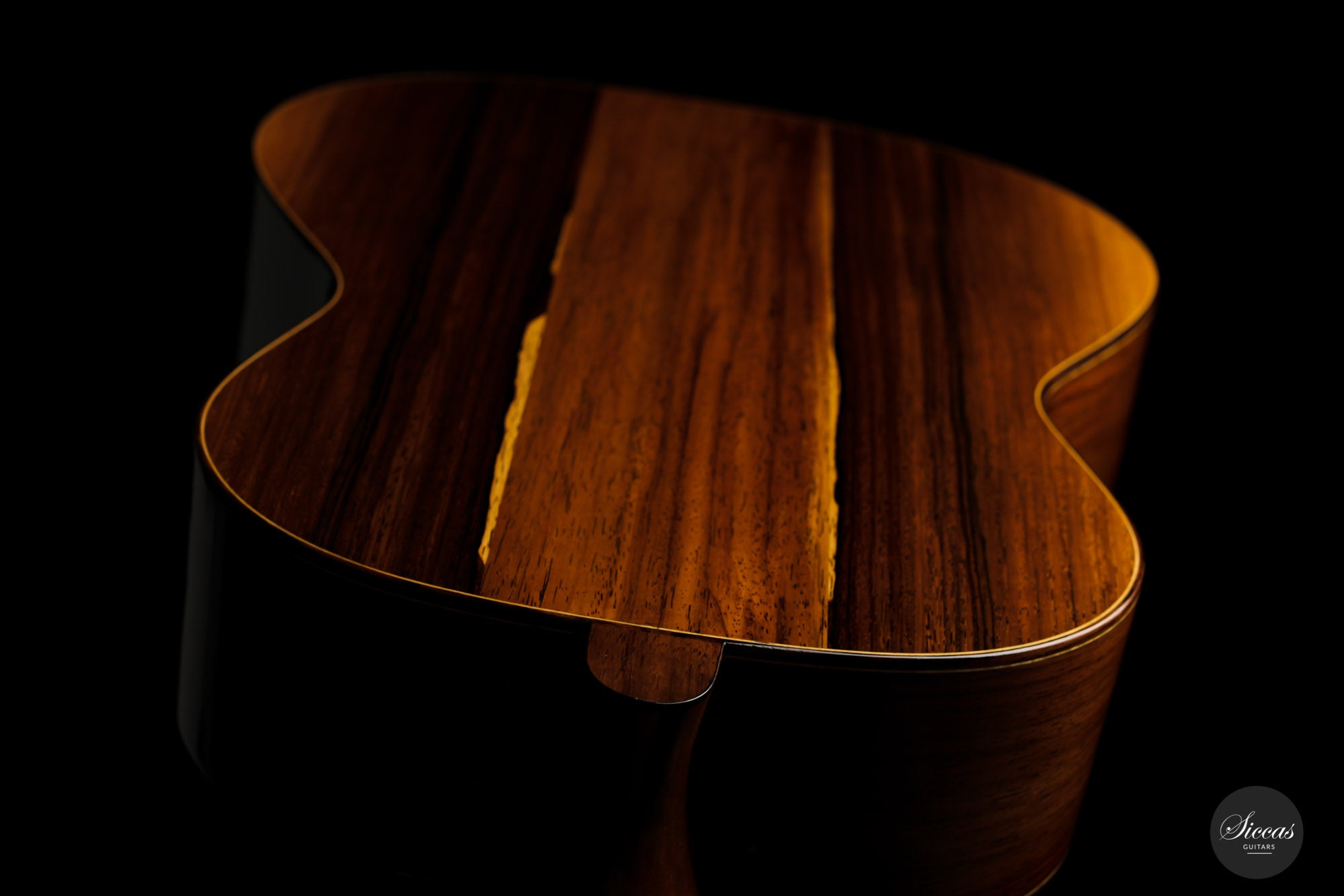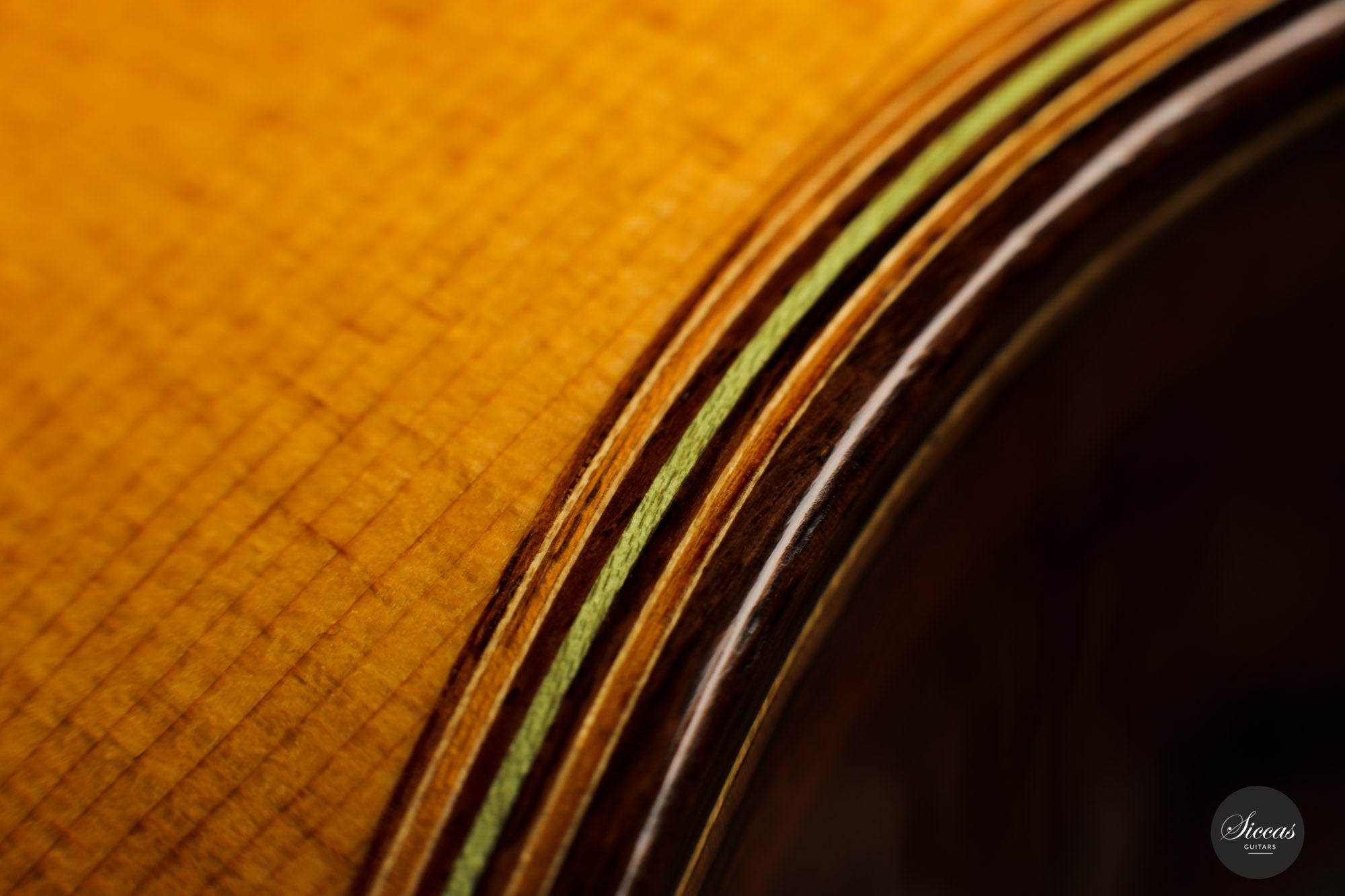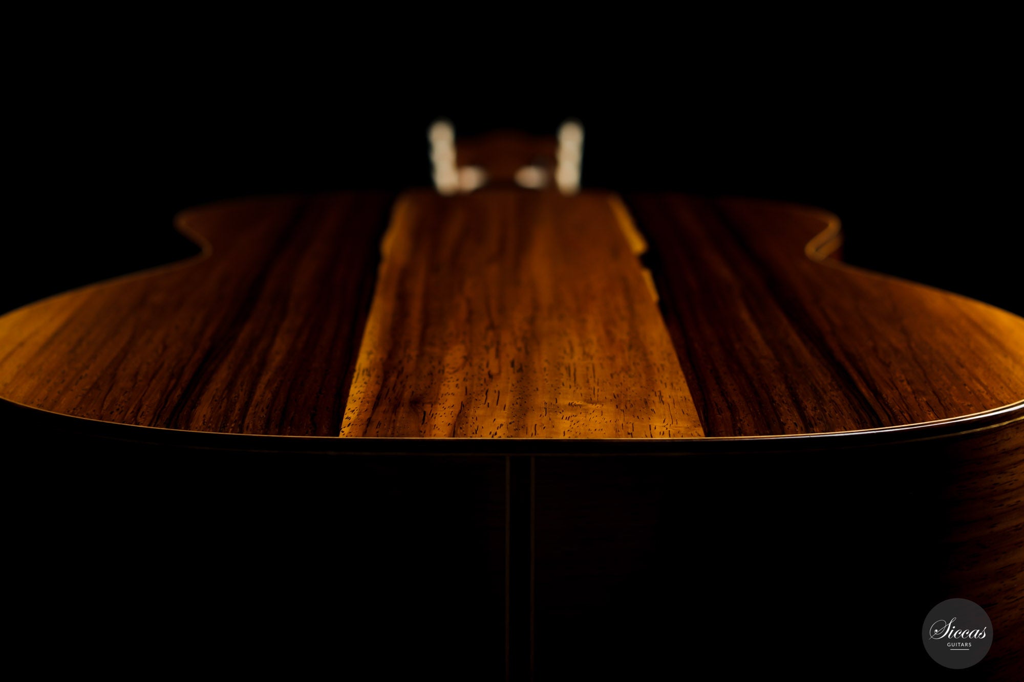 What a wonderful instrument inspired by one of the very last guitars made by the great luthier Francisco Simplicio (1874-1932) from Barcelona. Many details of the appearance and construction of the 1931 Francisco Simplicio guitar, bearing the number 327, have been faithfully reproduced, while Gérhard Oldiges also took the liberty of adding his own personal touch. The three-piece back made of the finest Brazilian rosewood is simply outstanding and presents an unmistakable color pattern. The soundboard, made of torrefied spruce, has furthermore developed a gorgeous honey color. Torrefaction reproduces the dryness and thus the response of a wood that has been dried for decades, offering a special response and excellent tone. Last but not least, this instrument is in perfect condition and is fitted with high-end Scheller tuning machines that have been intricately engraved by hand in Germany.