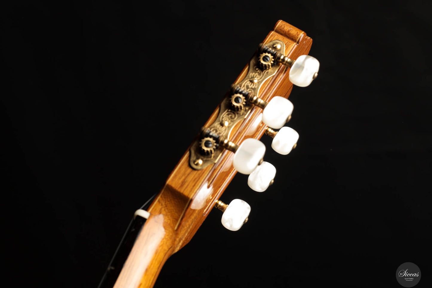 Gerold Hannabach (1928-2015) was born in Schönbach, Czechoslovakia, in a music instruments makers family. In 1948, he started his apprenticeship in Arnold Hoyer’s workshop in Bubenreuth. He then opened his own workshop for classical guitars and for resale in 1953. He passed the examination as a master guitar maker in 1966 and started working as a lecturer for musical instrument making at various institutions. In addition, he was a prolific guitar maker and received numerous awards for his work, including the Federal Cross of Merit. Gerold Karl Hannabach is one of the most famous German guitar makers.