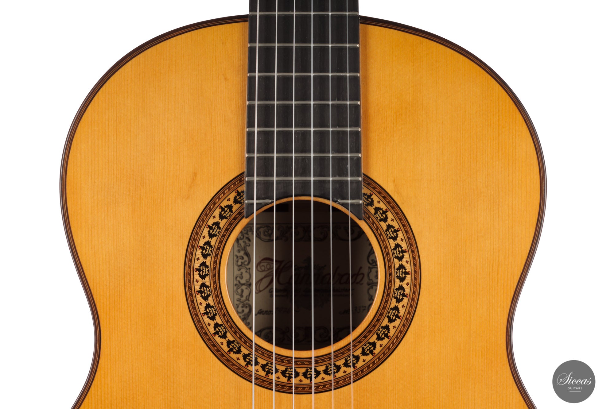 Gerold Hannabach (1928-2015) was born in Schönbach, Czechoslovakia, in a music instruments makers family. In 1948, he started his apprenticeship in Arnold Hoyer’s workshop in Bubenreuth. He then opened his own workshop for classical guitars and for resale in 1953. He passed the examination as a master guitar maker in 1966 and started working as a lecturer for musical instrument making at various institutions. In addition, he was a prolific guitar maker and received numerous awards for his work, including the Federal Cross of Merit. Gerold Karl Hannabach is one of the most famous German guitar makers.