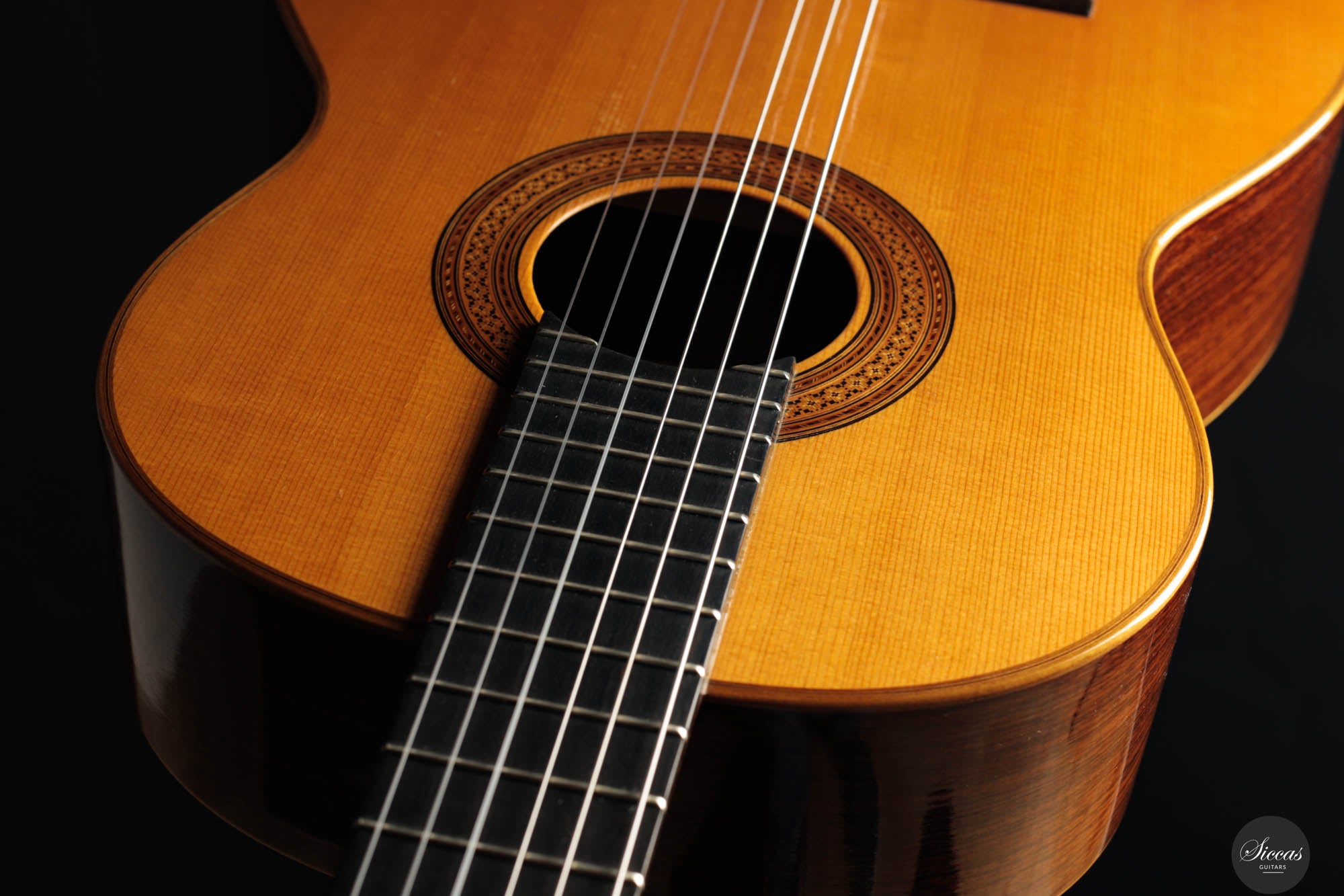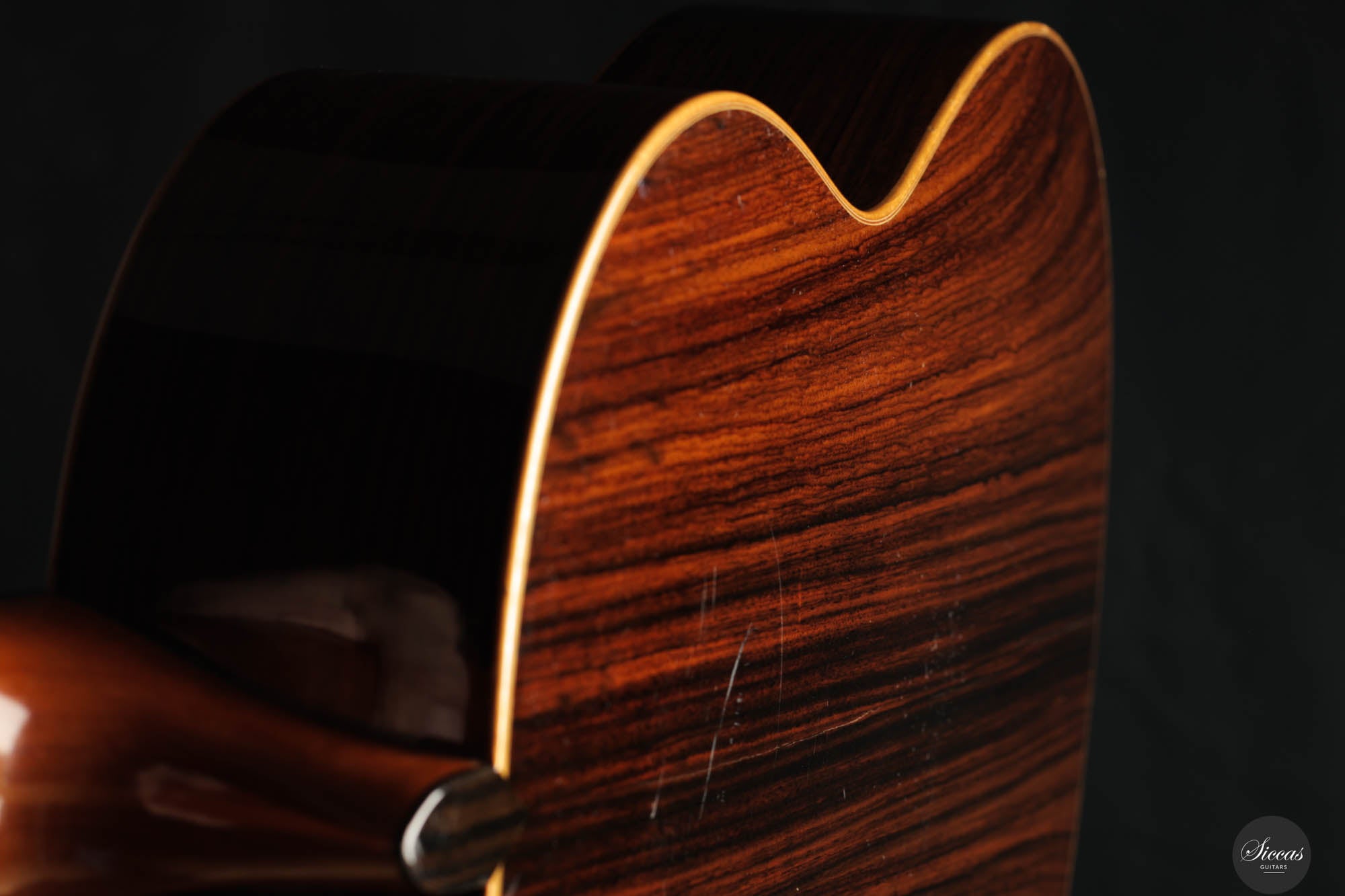 Be mindful when touching your instrument with greasy or unwashed hands: any skin contact is a small attack on the varnish. Of course, a guitar is made to be played, but taking a few precautions helps preserve its beauty: wash your hands before playing, wear long sleeves, and avoid unnecessary direct skin contact with the body of the instrument.