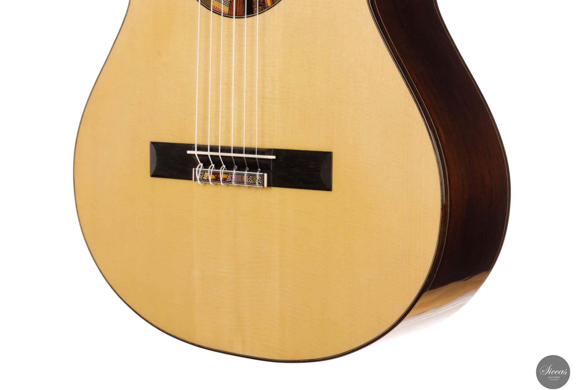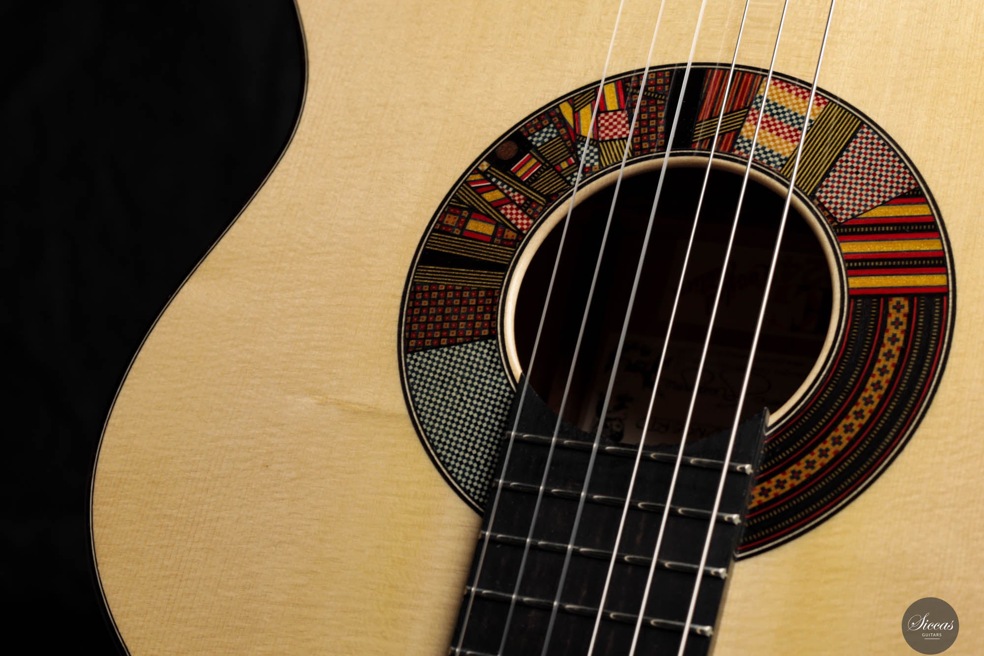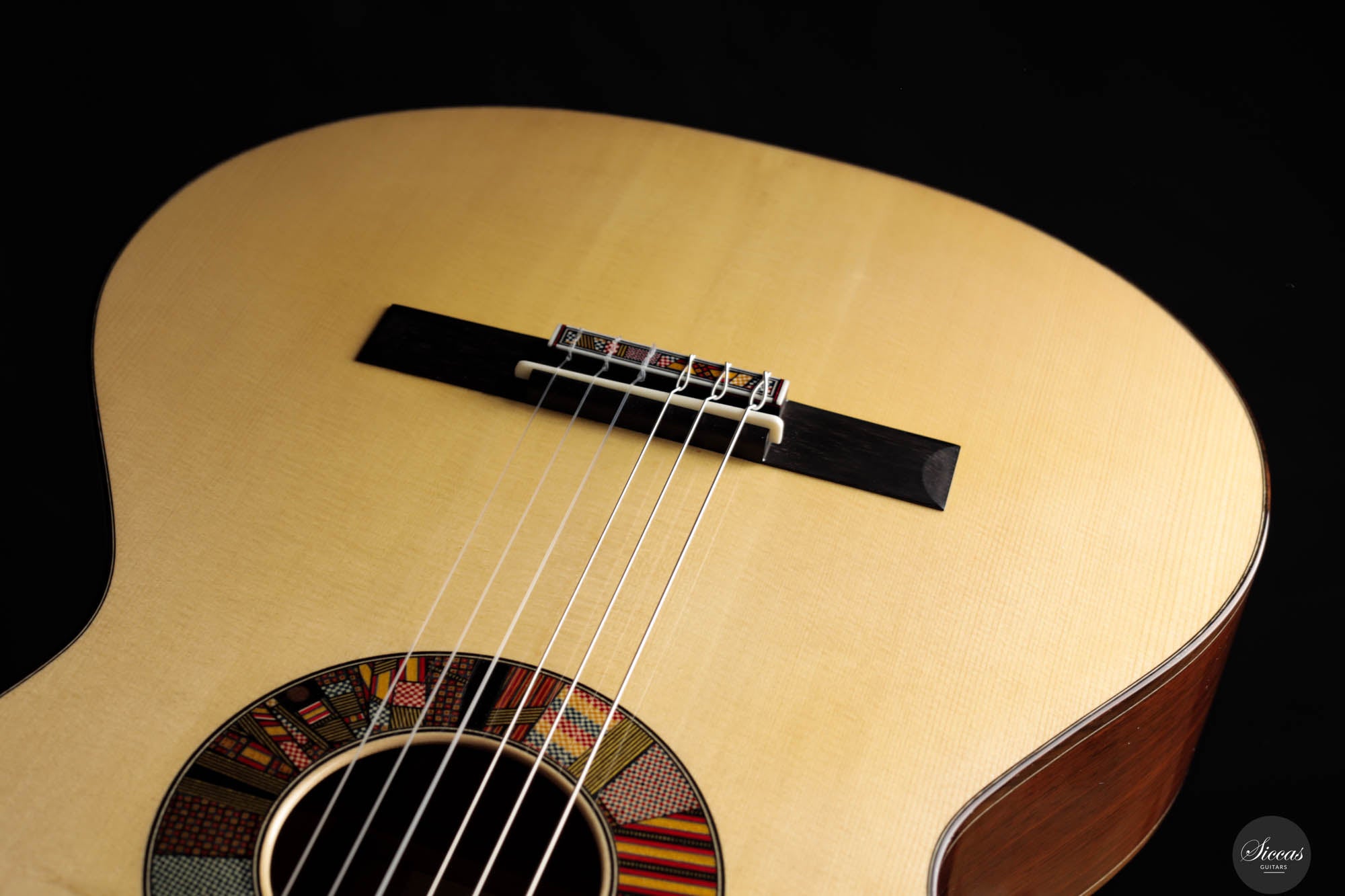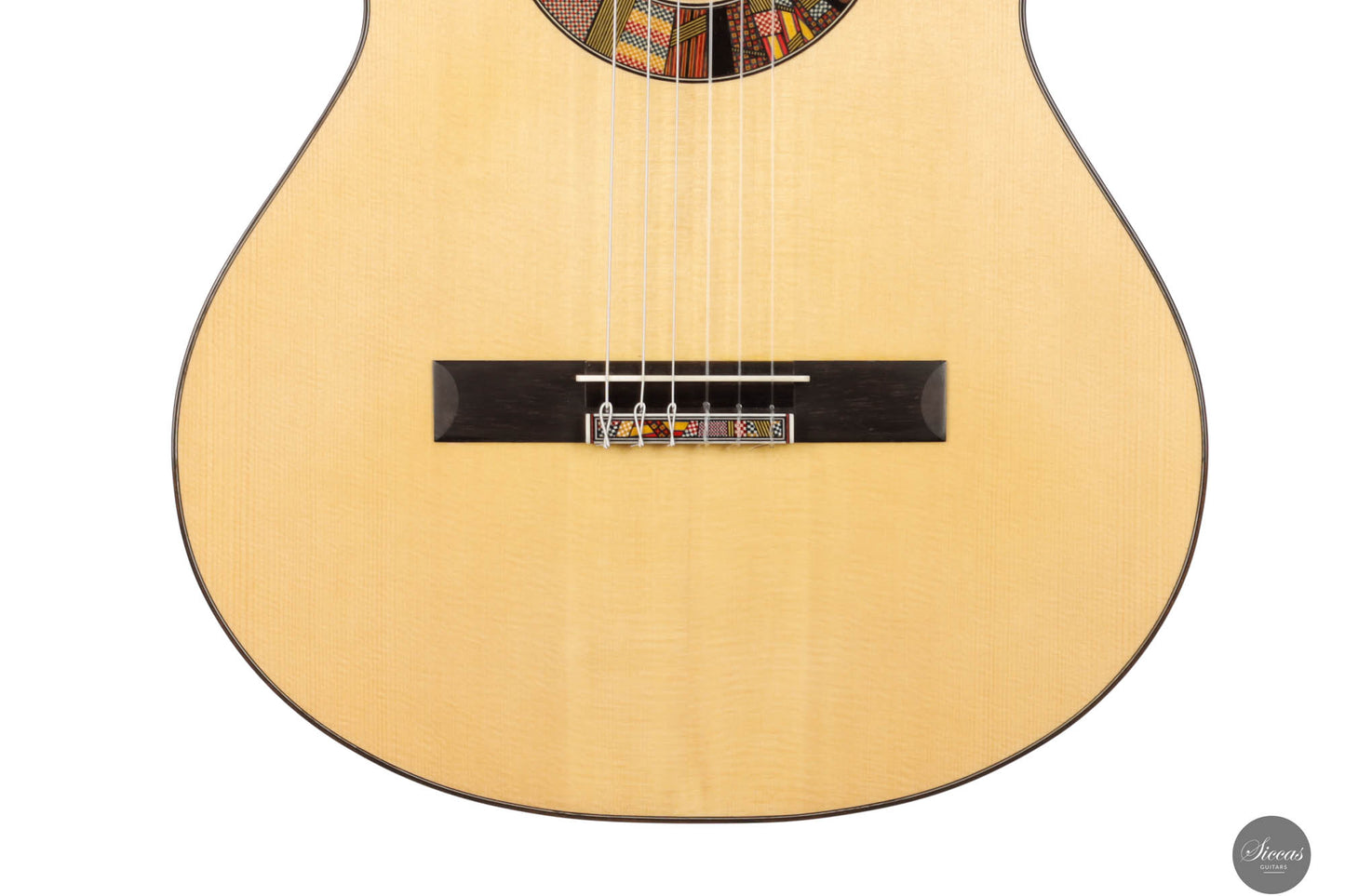 The REG 2024 Limited Edition guitar crafted by Giacomo merges impeccable artistry with superior acoustic qualities, making it a standout instrument capable of handling any concert setting. It boasts remarkable volume and projection, allowing musicians to fully explore its dynamic range while maintaining the organic, resonant quality characteristic of a traditional guitar. An innovative soundport enhances the player's auditory experience, providing immediate feedback on the sound produced, which enriches performance. Additionally, the aesthetic of this guitar is particularly striking, featuring a unique rosette composed of various designs Giacomo has utilized throughout his career. This detail not only adds visual appeal but also tells a story of the luthier's evolving artistic journey, making each performance with this guitar a visually and sonically captivating experience.