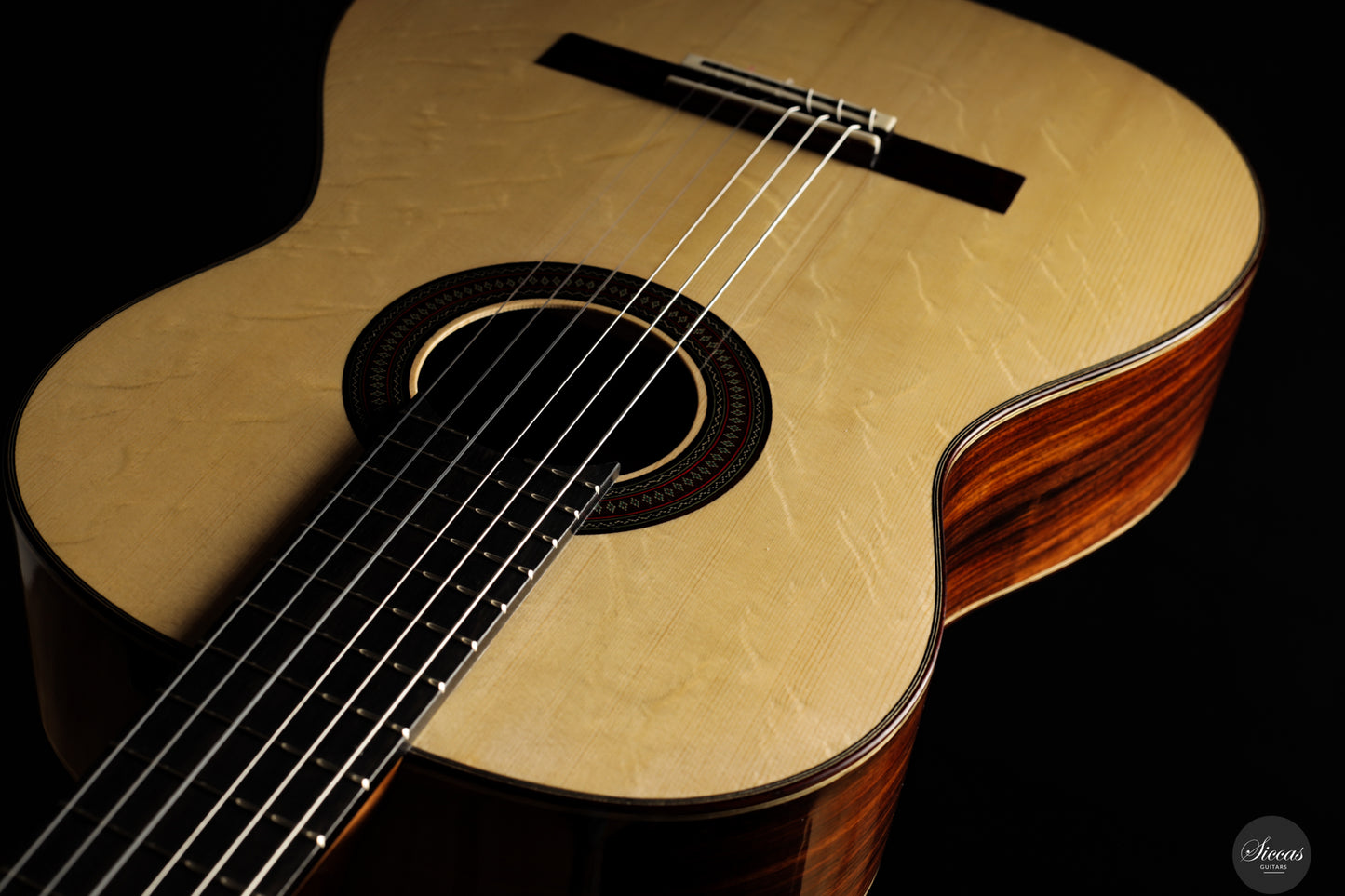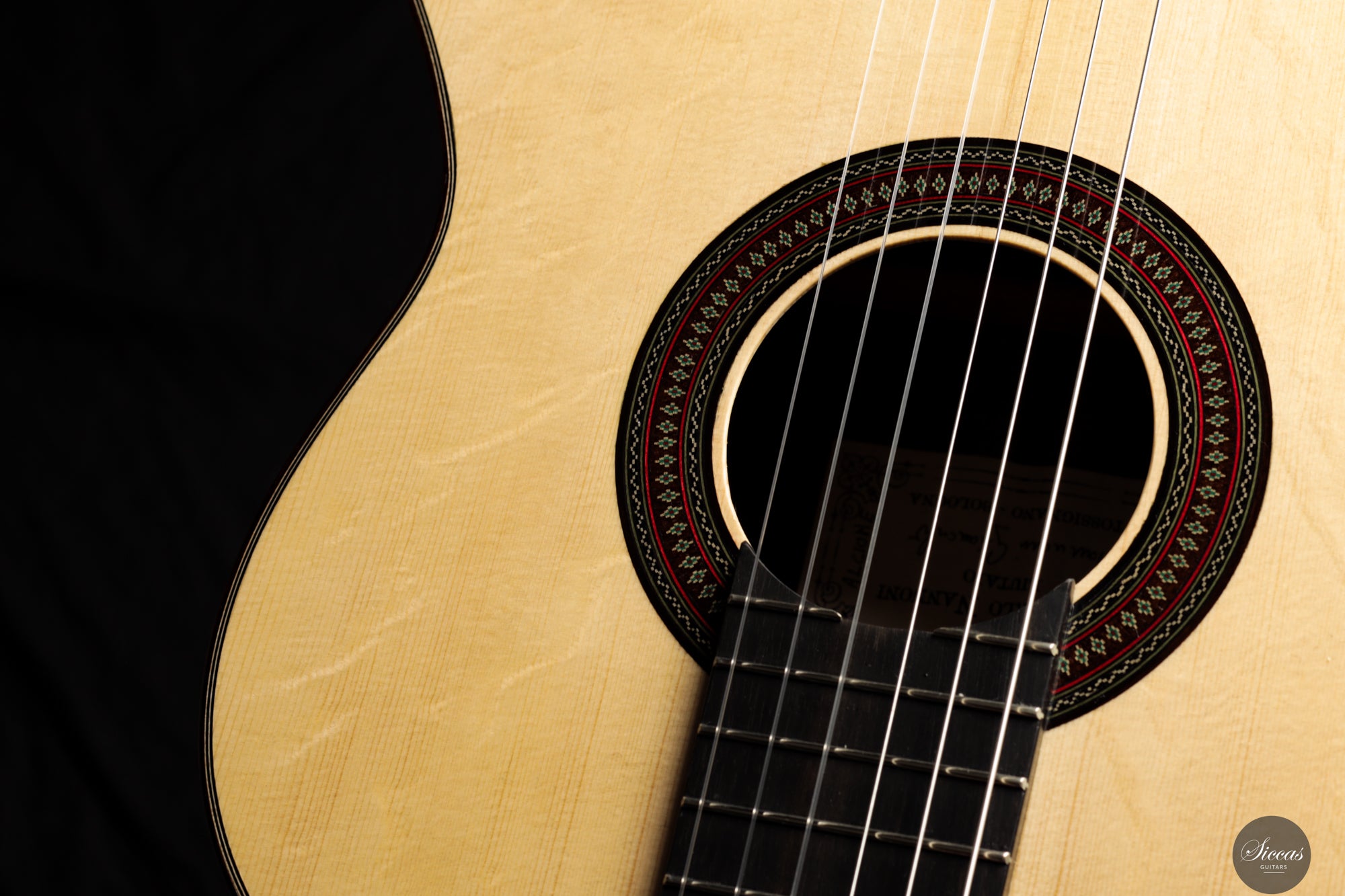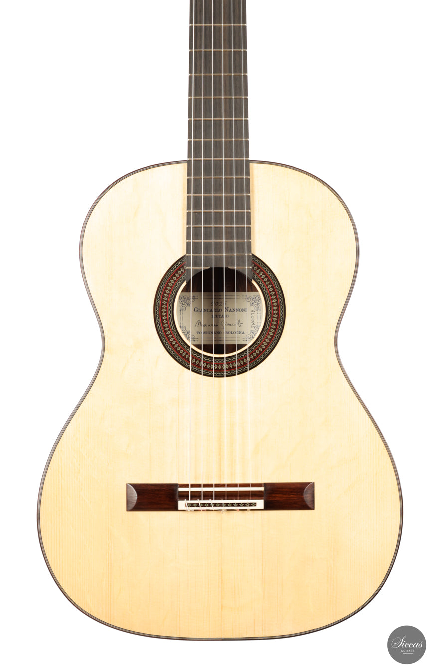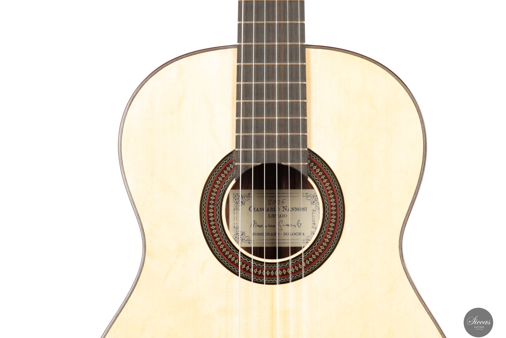 Since 1994, Giancarlo Nannoni has dedicated himself with continuous passion to guitar making, combining technical expertise from his studies with his love for music. As a teenager, he studied and played guitar and other instruments on an amateur level, exploring various musical genres. His encounter with violin making led him to the workshop of luthier Contavalli in Imola, where he was fascinated by the materials, the tools, and the distinctive atmosphere of the small workshop. Looking back, Nannoni often recalls that his earliest desire to build instruments was sparked by those formative visits. He later approached guitar making as a self-taught craftsman, studying physics and acoustics as they relate to classical guitar construction, visiting museums and collections, and deepening over the years his knowledge of the instruments built by the great luthiers of the past. This research-oriented approach provided him with a strong foundation for developing his own construction style. From the very beginning of his career, Nannoni was invited to participate in major exhibitions across Italy, where he also held lectures on lutherie at public and private institutions. These opportunities enriched his experience and knowledge, often through valuable advice and inspiration offered by musicians he met along the way. Today, his guitars are played in Italy and abroad by conservatory professors as well as young concert artists, including winners and laureates of international guitar competitions.About the guitar