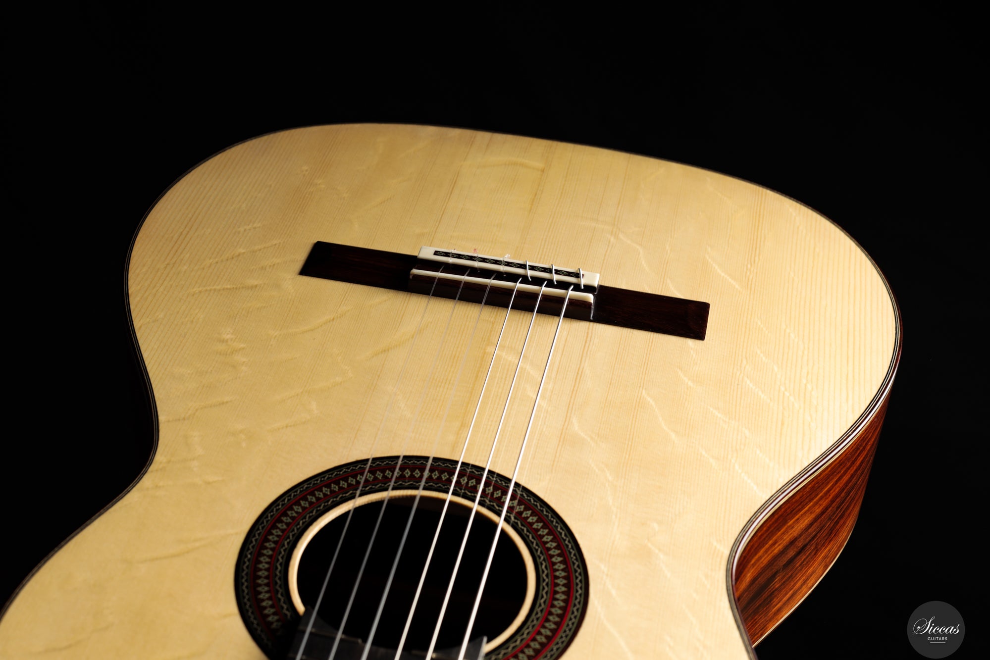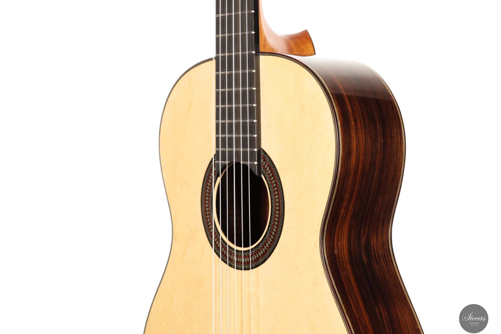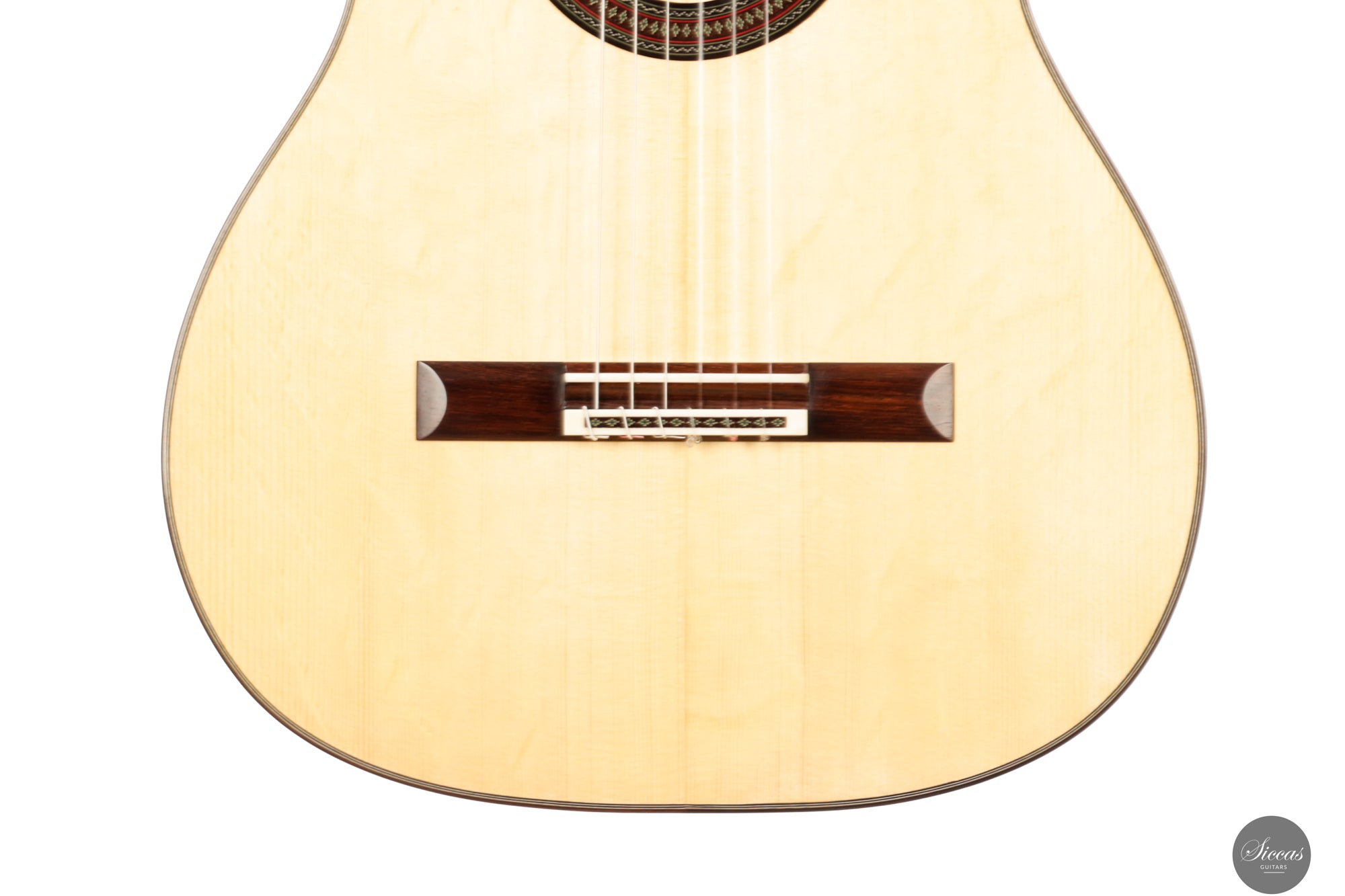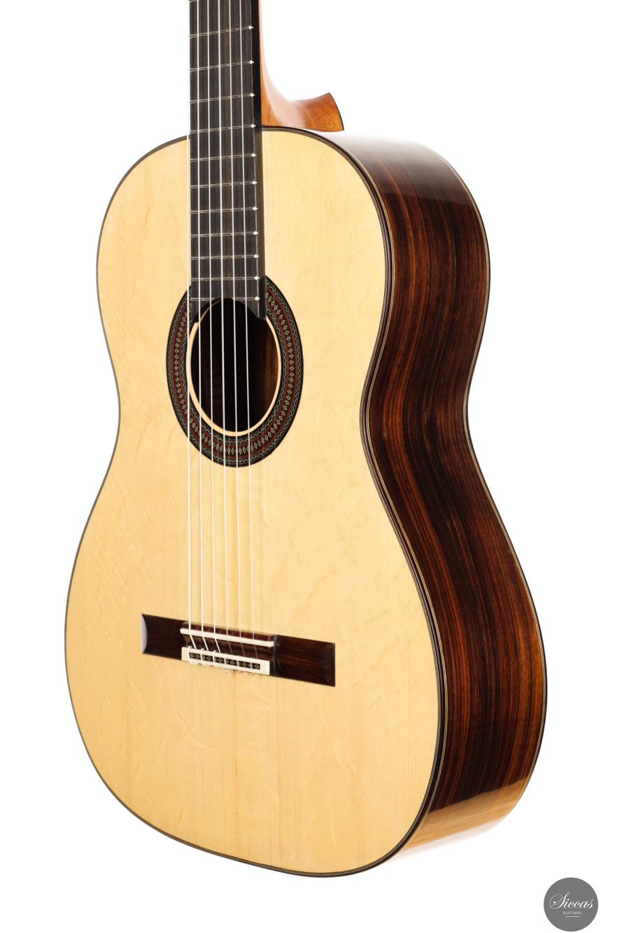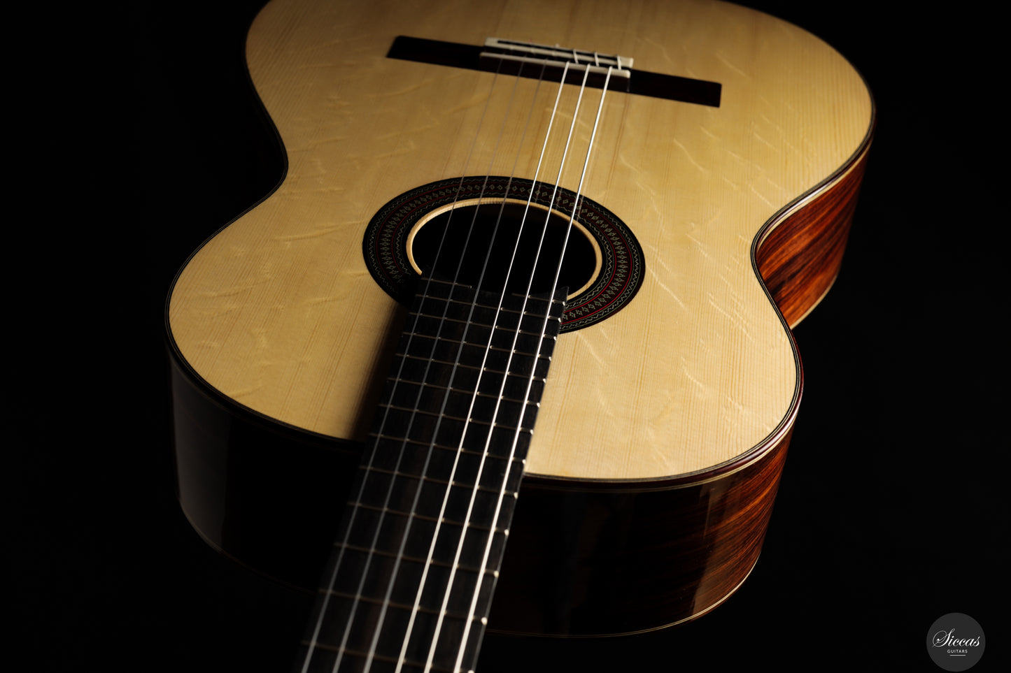 Since 1994, Giancarlo Nannoni has dedicated himself with continuous passion to guitar making, combining technical expertise from his studies with his love for music. As a teenager, he studied and played guitar and other instruments on an amateur level, exploring various musical genres. His encounter with violin making led him to the workshop of luthier Contavalli in Imola, where he was fascinated by the materials, the tools, and the distinctive atmosphere of the small workshop. Looking back, Nannoni often recalls that his earliest desire to build instruments was sparked by those formative visits. He later approached guitar making as a self-taught craftsman, studying physics and acoustics as they relate to classical guitar construction, visiting museums and collections, and deepening over the years his knowledge of the instruments built by the great luthiers of the past. This research-oriented approach provided him with a strong foundation for developing his own construction style. From the very beginning of his career, Nannoni was invited to participate in major exhibitions across Italy, where he also held lectures on lutherie at public and private institutions. These opportunities enriched his experience and knowledge, often through valuable advice and inspiration offered by musicians he met along the way. Today, his guitars are played in Italy and abroad by conservatory professors as well as young concert artists, including winners and laureates of international guitar competitions.About the guitar