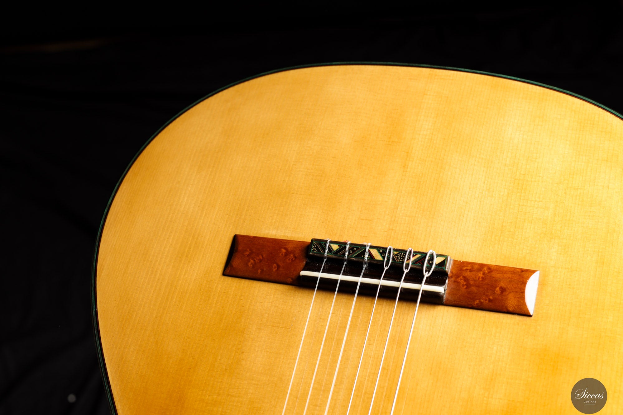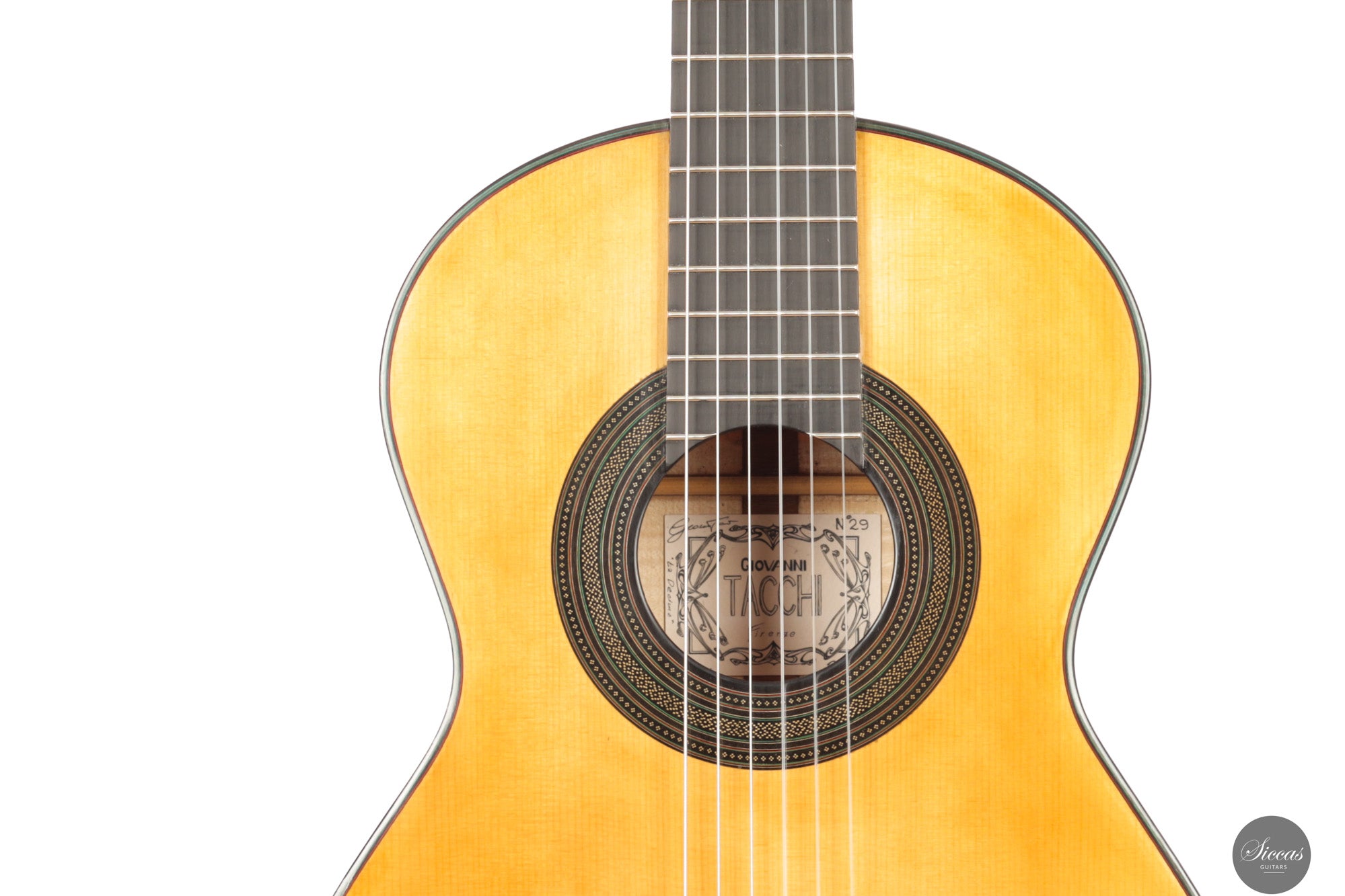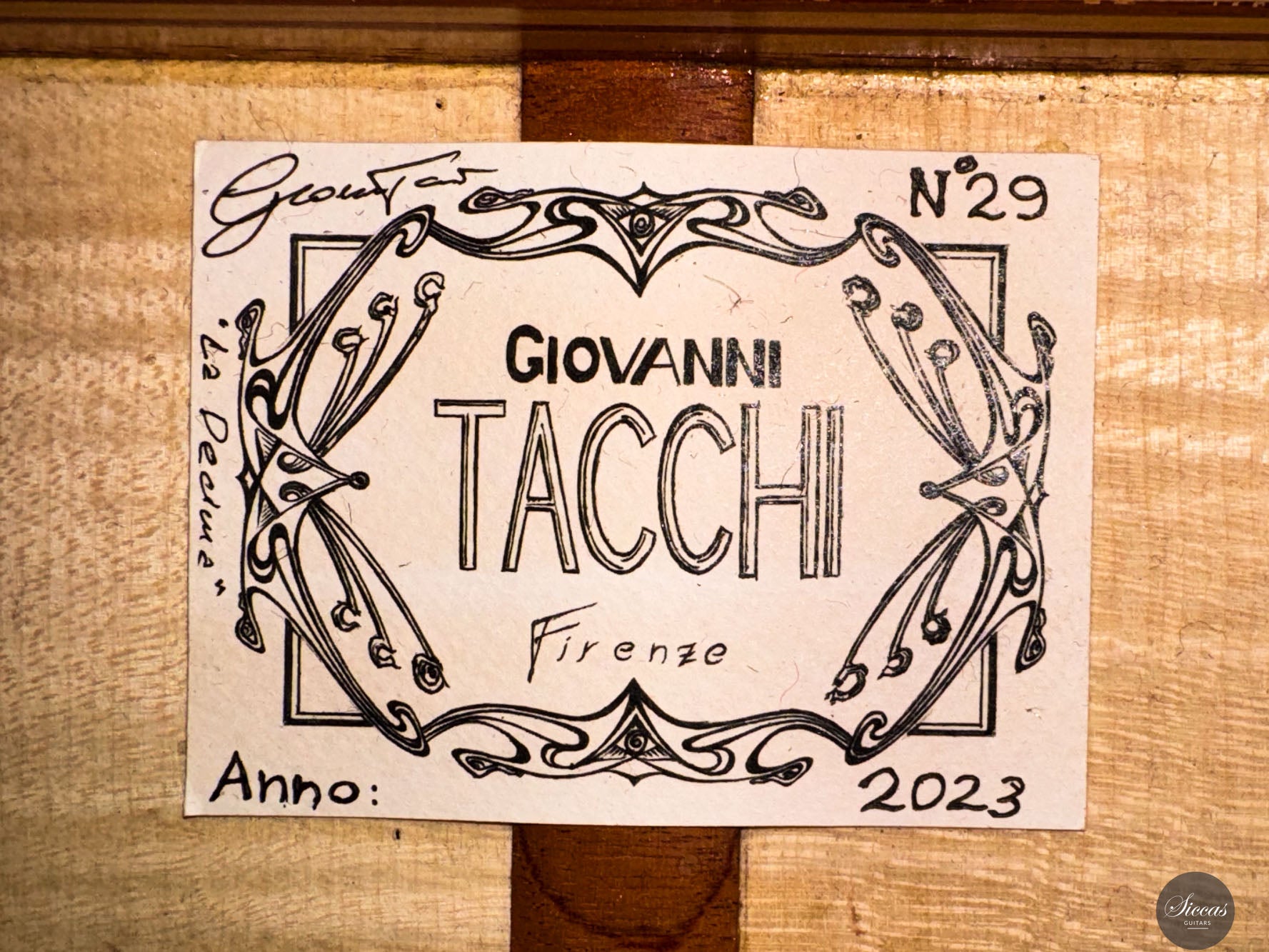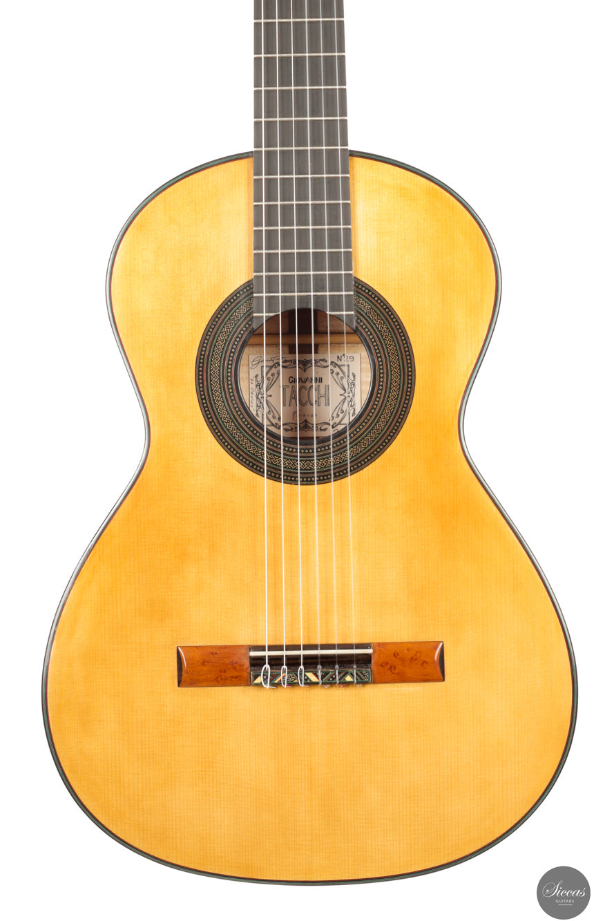 Giovanni Tacchi is the son of the renowned Florentine luthier Andrea Tacchi. Having grown up in a workshop steeped in the traditions of classical guitar making, Giovanni inherited not only the techniques but also the artistic sensibility of his father. Andrea Tacchi collaborated closely with Robert Bouchet and Daniel Friederich in the 1980s and continued to deepen his craft through exchanges with Ignacio Fleta, José Luis Romanillos, and Robert Ruck. Giovanni has refined this legacy through his own vision and precision, producing instruments of great tonal complexity and craftsmanship. Giovanni Tacchi’s guitars display a clear identity: rich in color, dynamic in expression, and beautifully constructed. The attention to detail is striking, from the elegant rosettes to the refined joinery and wood selection. Though still early in his independent career, Giovanni has already established himself among the most promising young luthiers in Europe. His instruments reflect not only his heritage but also a distinct and confident voice in contemporary guitar making.About the guitar