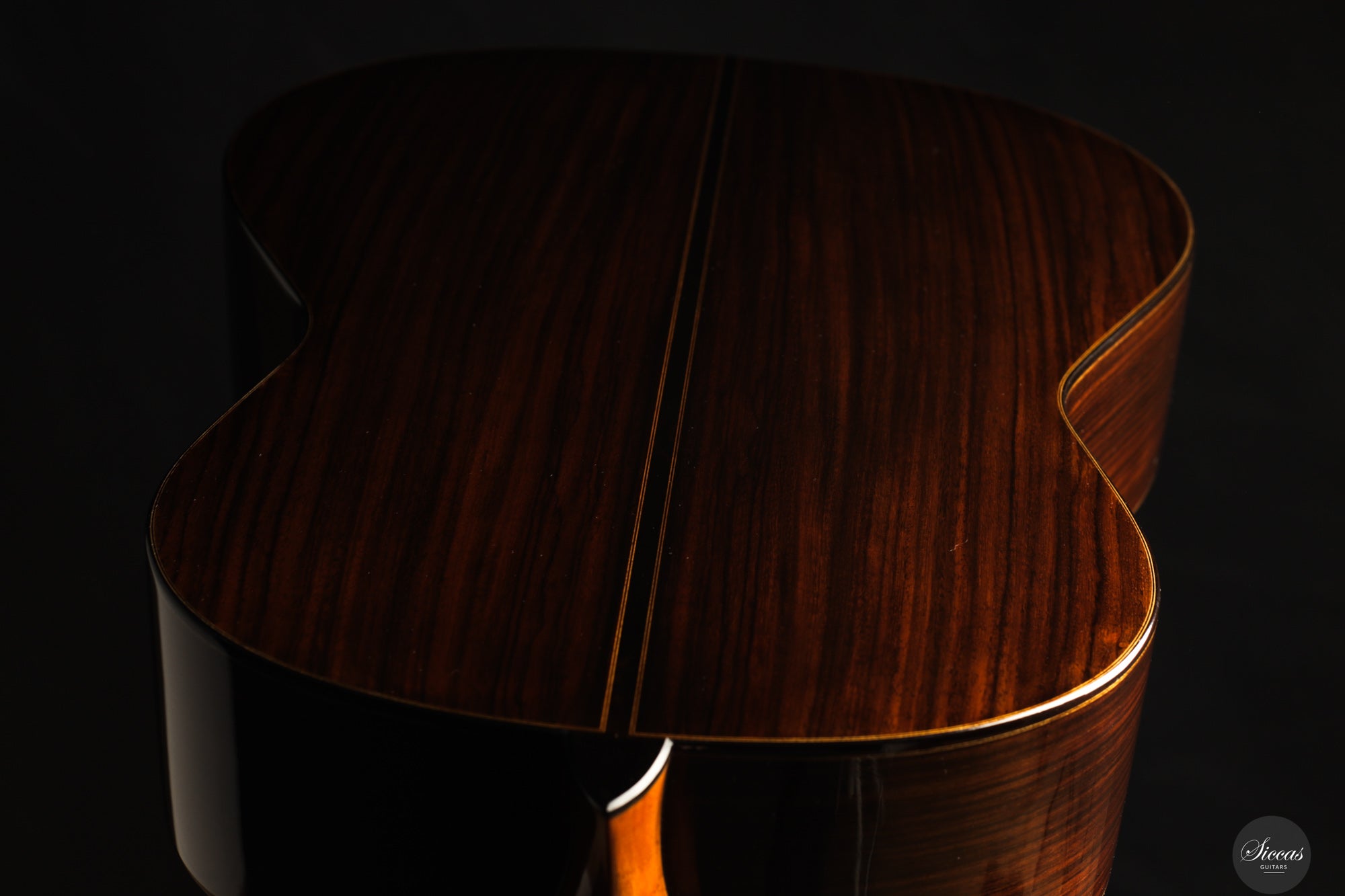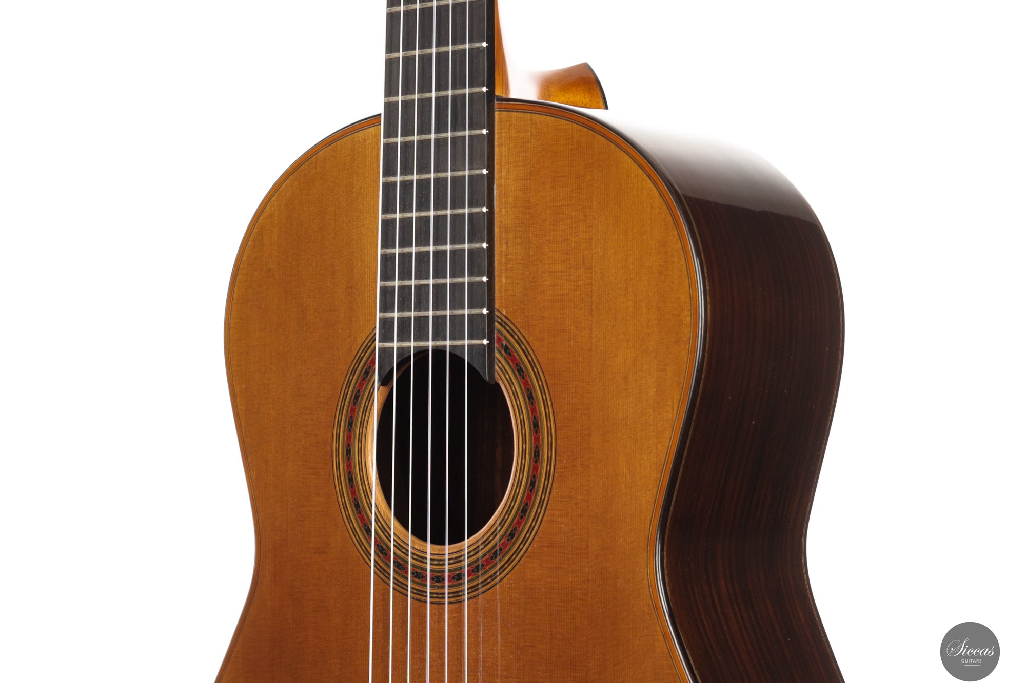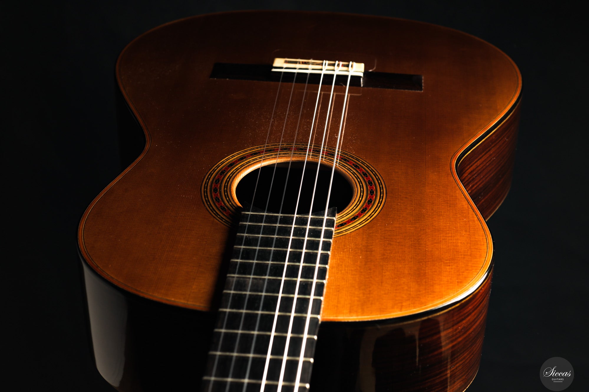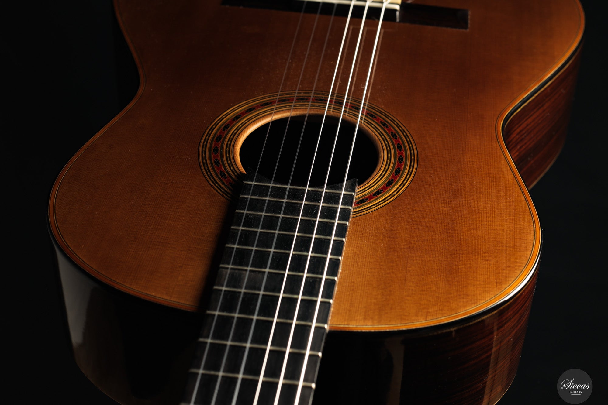 Tonally this guitar delivers powerful and stable basses paired with the glass‑clear, singing trebles for which Friederich‑style instruments are celebrated. The voices separate gracefully, every note resonates and carries. The instrument responds with immediacy and clarity, offering refined expressiveness across the dynamic spectrum.
