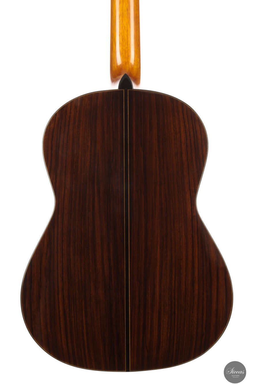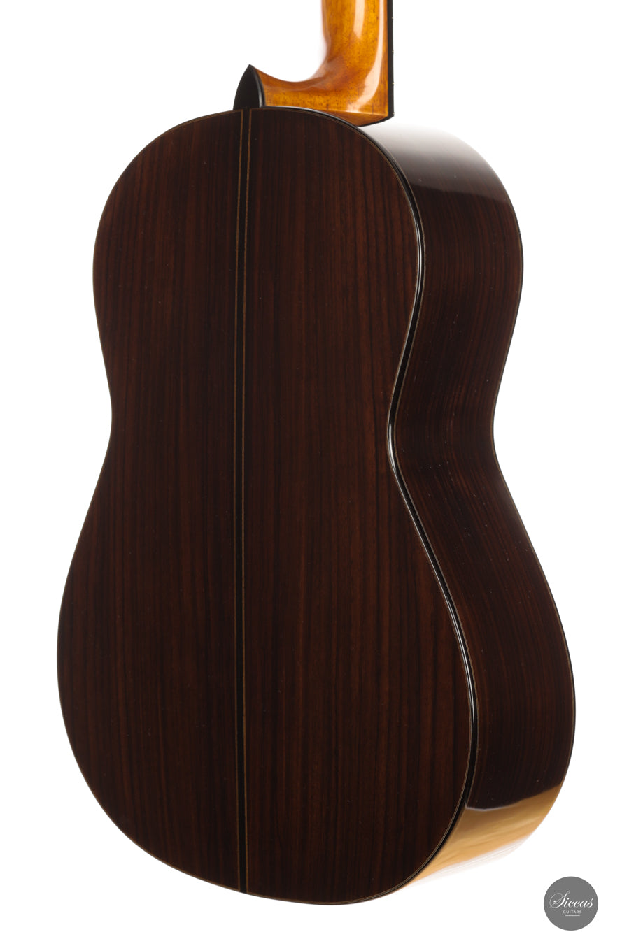 His instruments are mature, with remarkable build quality and an outstanding tonal palette. This guitar stands among his most accomplished works, combining the refined heritage of the French classical guitar tradition with contemporary performance demands.