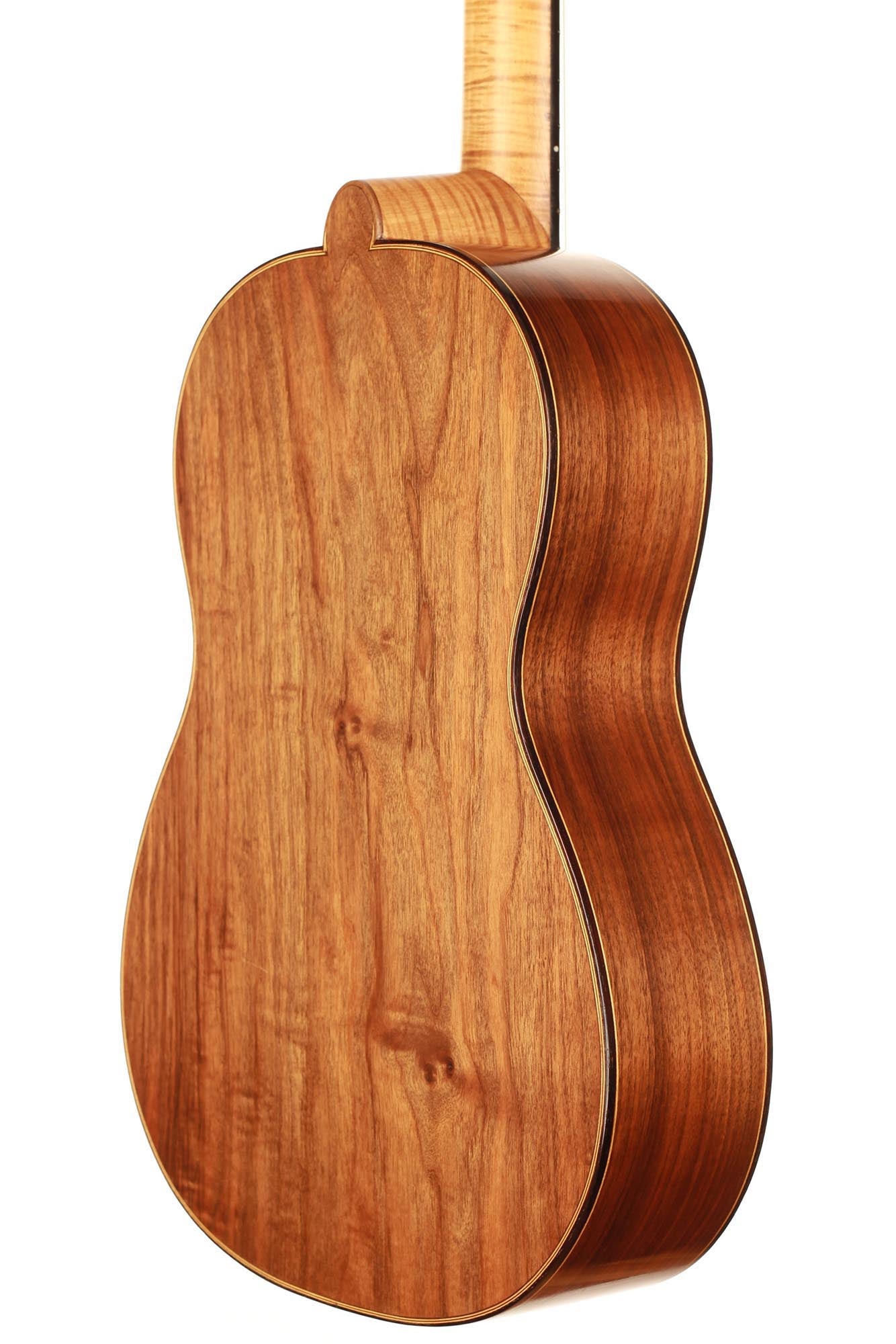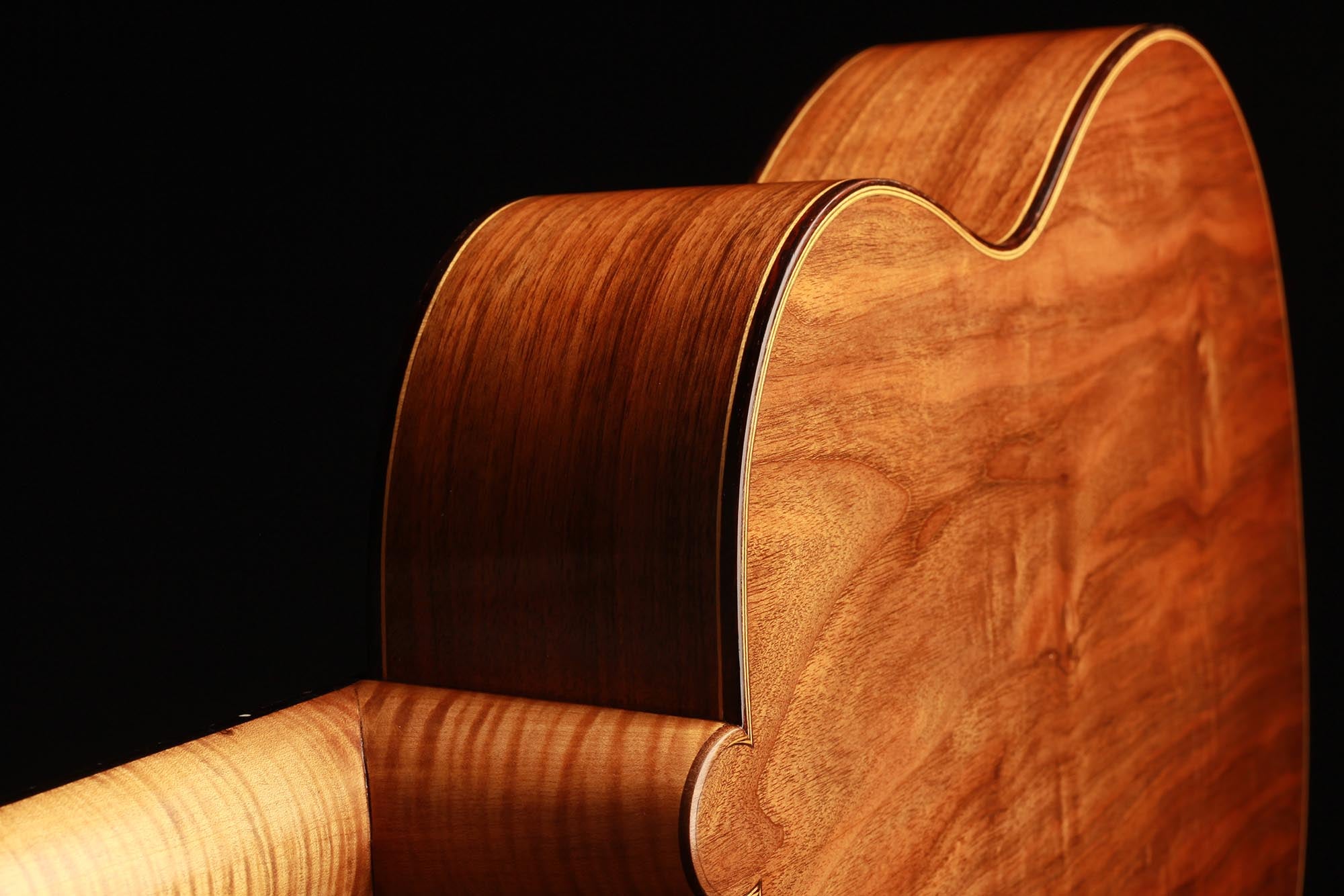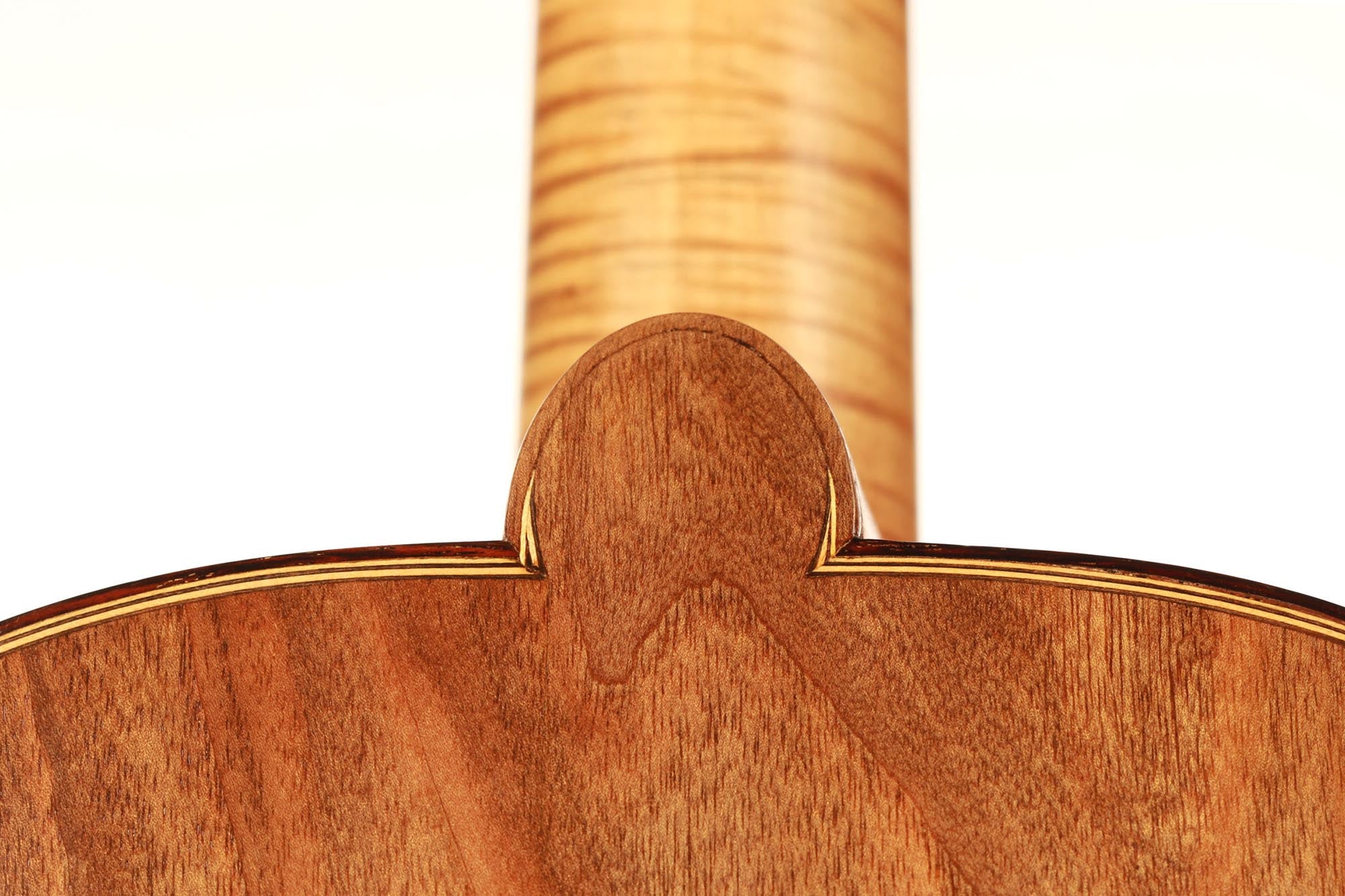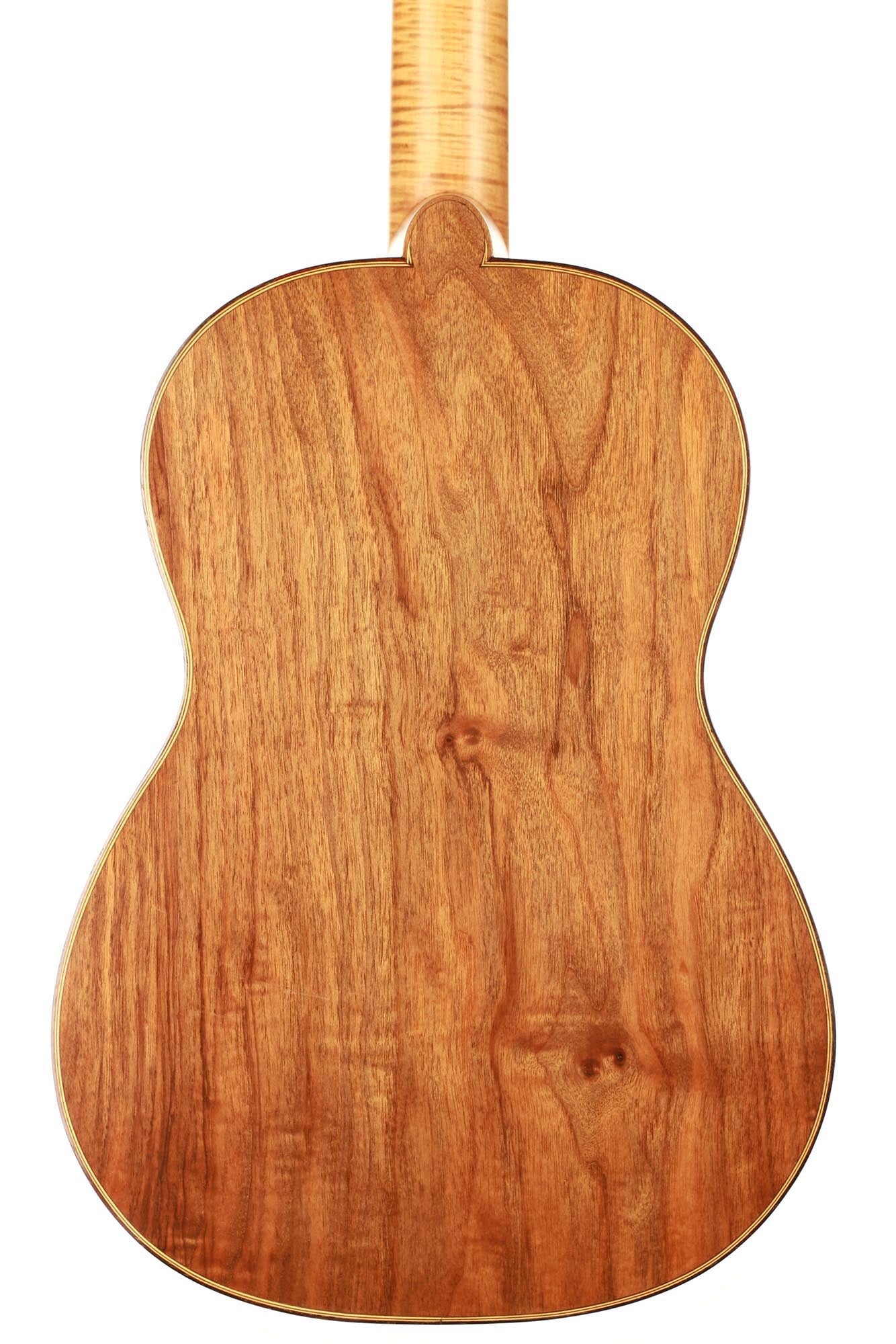 This beautiful instrument made in 1954 is in great condition with no cracks nor repairs. The woods chosen for this guitar are very interesting: the one-piece walnut back and the maple neck were two rare features at this time. Furthermore, the maple neck is a subtle reminder of Lecchi’s violin-maker education.