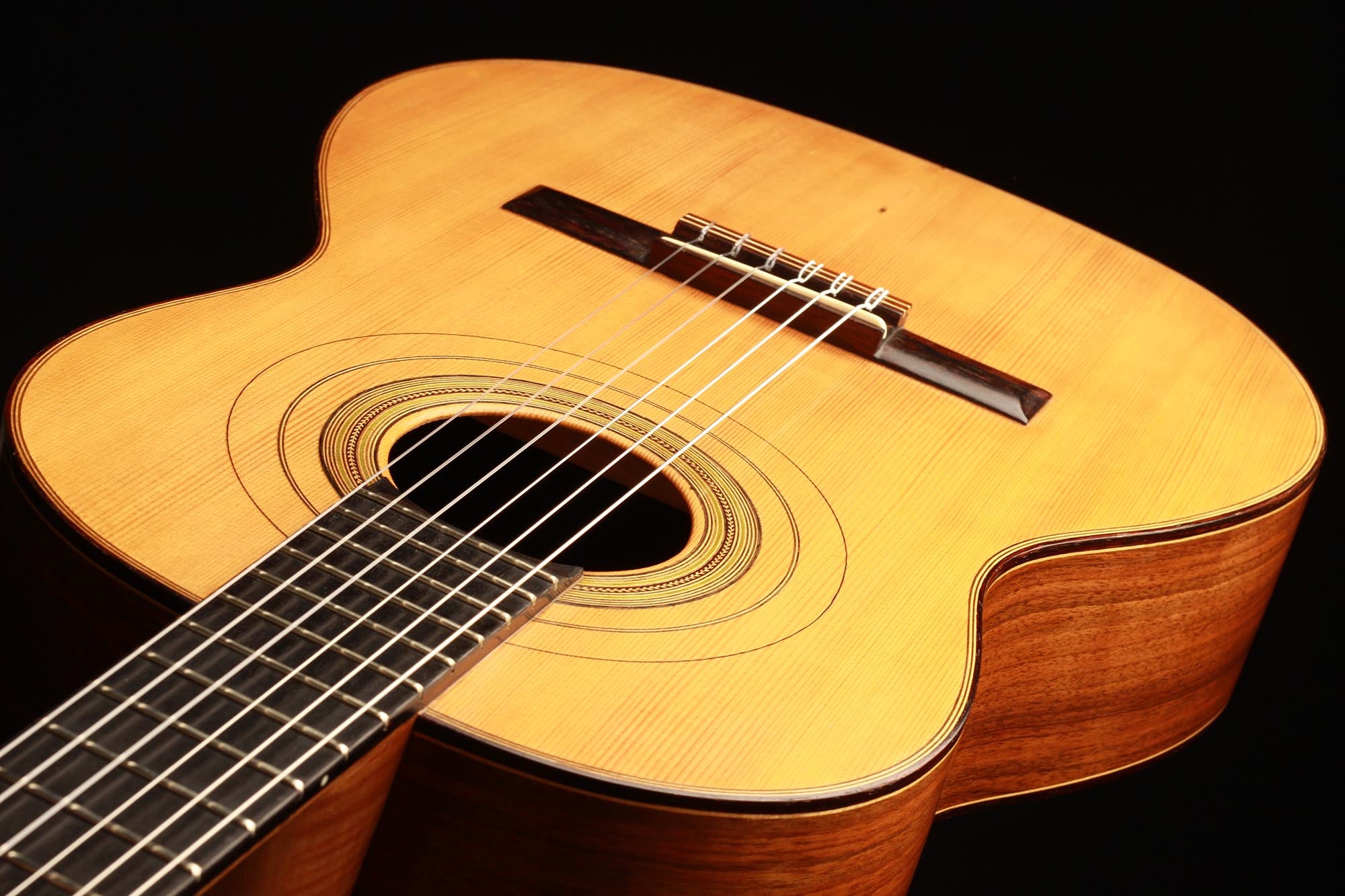This instrument has a fantastically refined and delicate sound. It has a pure voice with a clear projection and an incredible separation of the note. The playability is great, and the softness of the sound is characteristic from such vintage instruments. That is definitely a rare and highly collectible guitar, in great condition, and featuring its authentic original case.