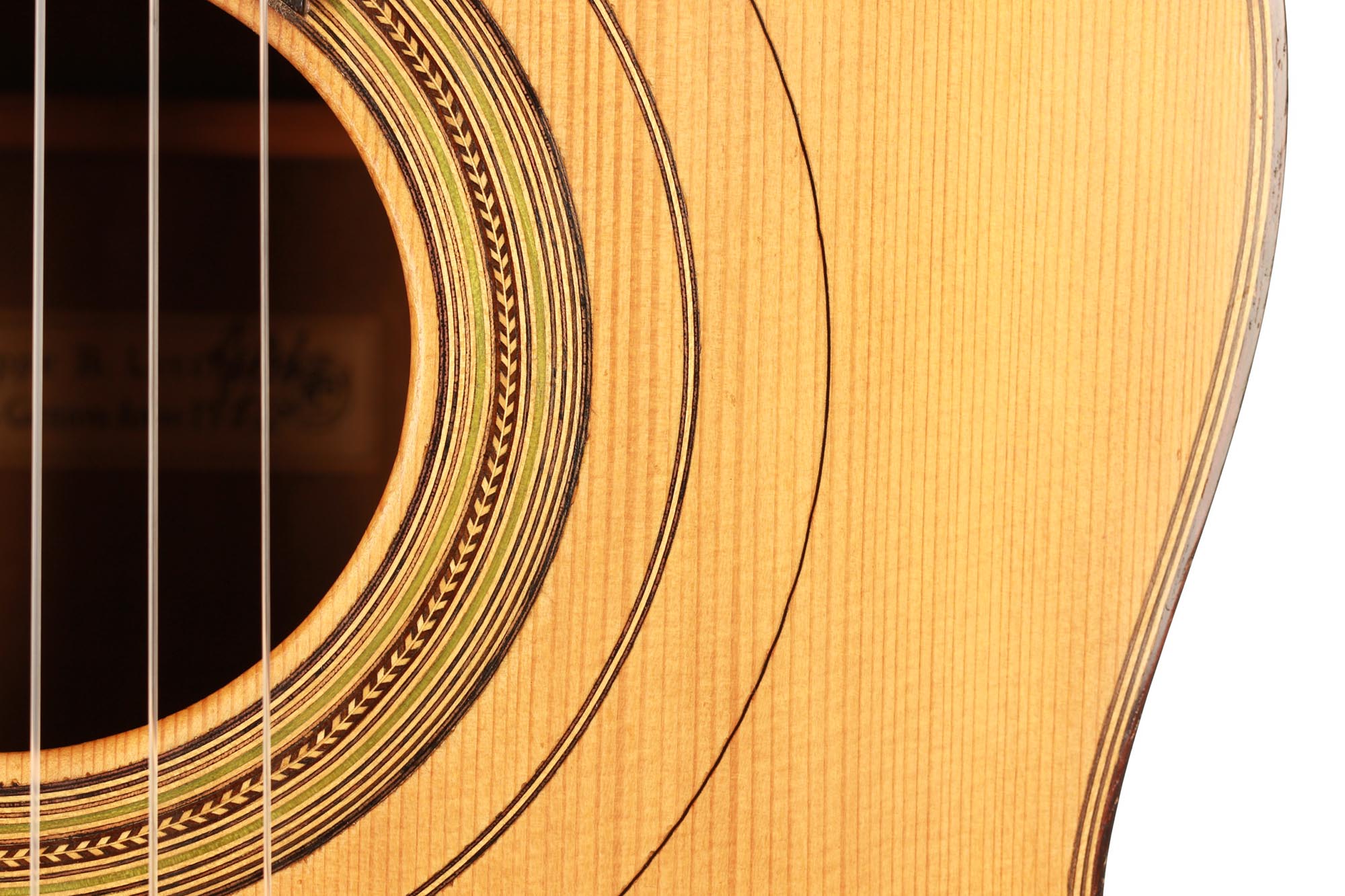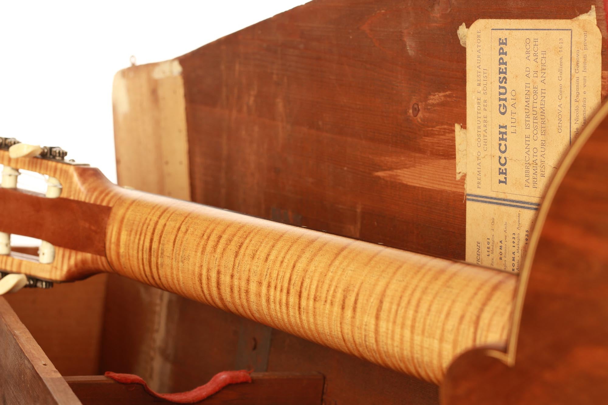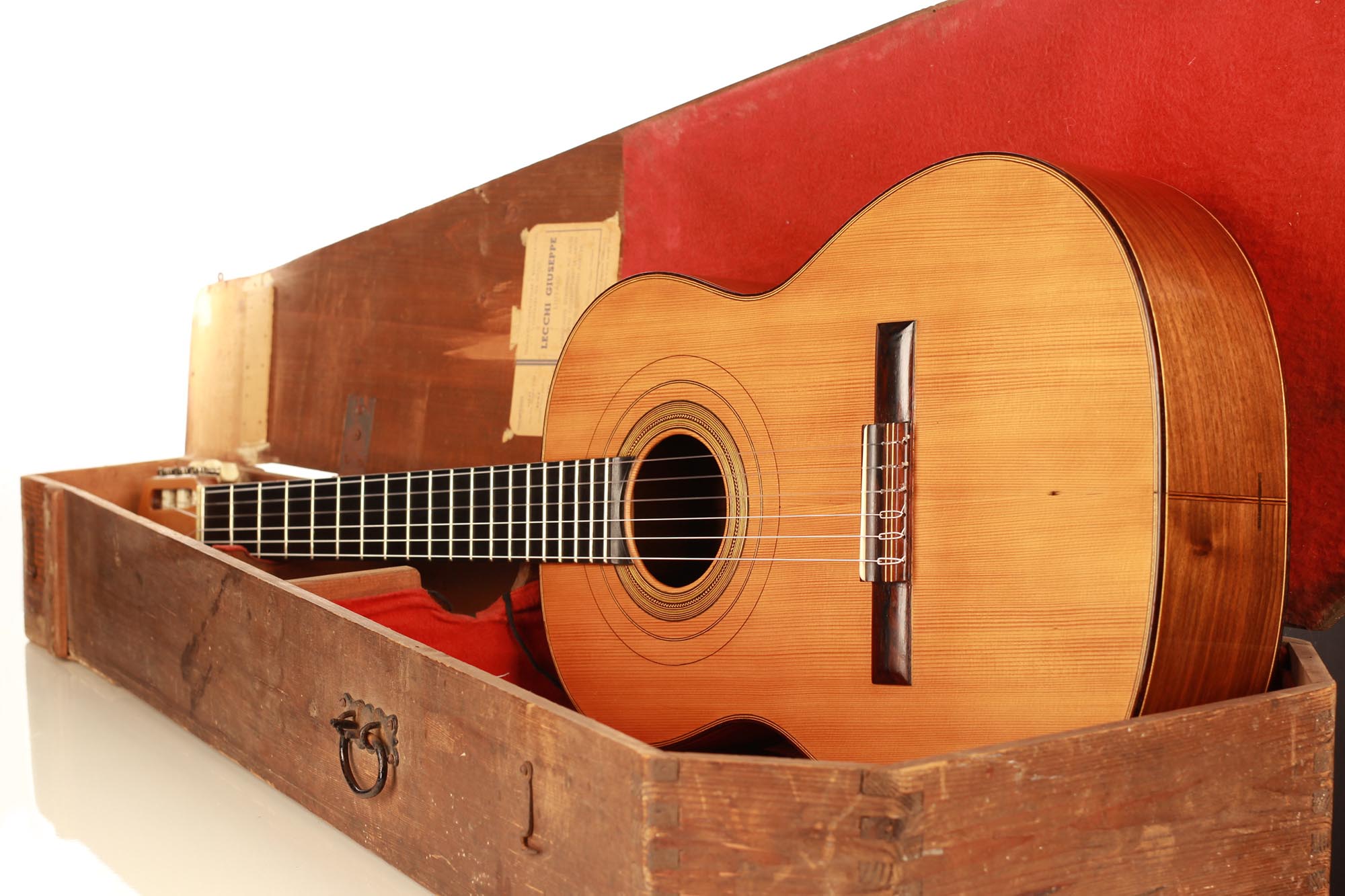 Giuseppe Lecchi was born on 20 August 1895 in Felizzano, Italy. After having served as a soldier during the World War I, he started to work as a violin maker in Cesare Candi’s workshop in Genoa in 1923. He then registered as a self-employed instrument maker in 1929 and opened up his own workshop in Genoa in 1933. He won the first price at the 1937 violin making competition dedicated to the bicentennial of Antonio Stradivari and had his first contact with classical guitar the same year. Guiseppe Lecchi then dedicated himself to the building of classical guitar and had the chance to execute his high restoration skills on Andrés Segovia’s 1912 Manuel Ramirez / Santos Hernandez.