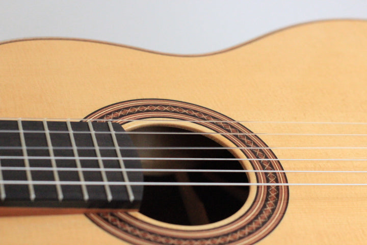 The classical guitar, with its soft nylon strings and characteristic timbre, has become a symbol of chamber music, Spanish tradition, and concert repertoire. Its modern form was shaped by Antonio de Torres in the 19th century, setting the standard for the body, fan bracing, and the 65-centimeter scale length that are still used today. Instruments in this category open up a rich palette from the refined Romantic miniatures of Tárrega to the majestic concertos of Rodrigo. Here you will find guitars that preserve historical continuity and at the same time inspire new interpretations.Look all products of the collection -