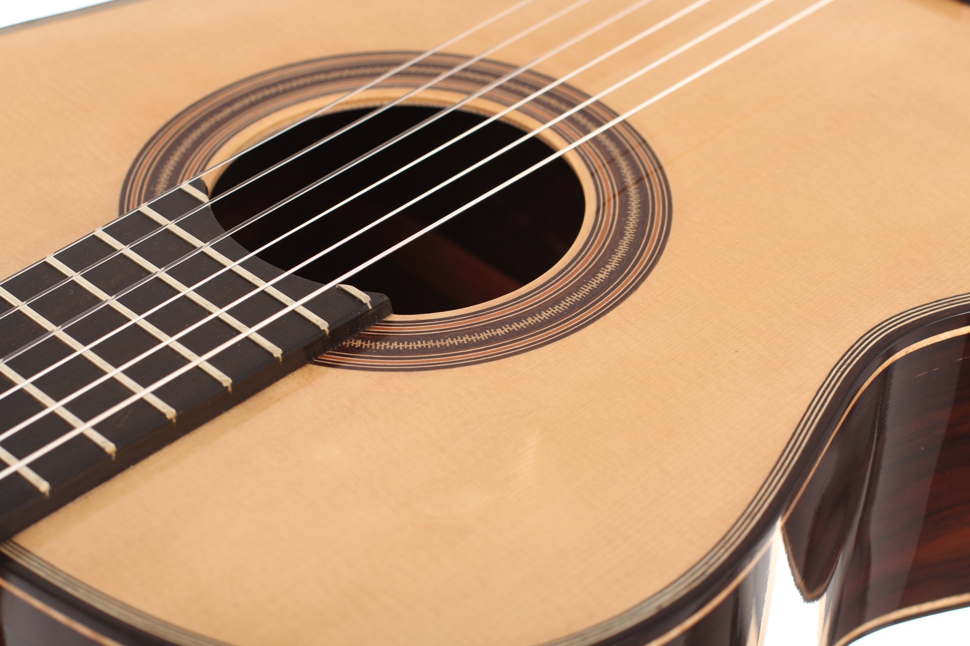 Price on requestLuthier: Fritz OberConstruction Year: 2019Construction Type: TraditionalTop: SpruceBack and Sides: Brazilian rosewood (CITES certified)Soundboard Finish: French polishBody Finish: French polishAir Body Frequency: C sharp / DWeight (g): 1345Tuner: Klaus SchellerCondition: Excellent -