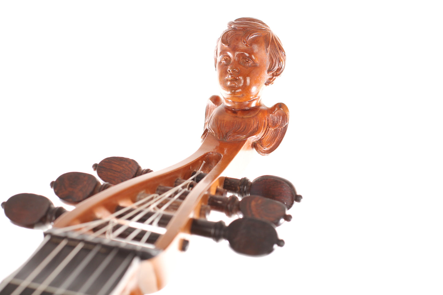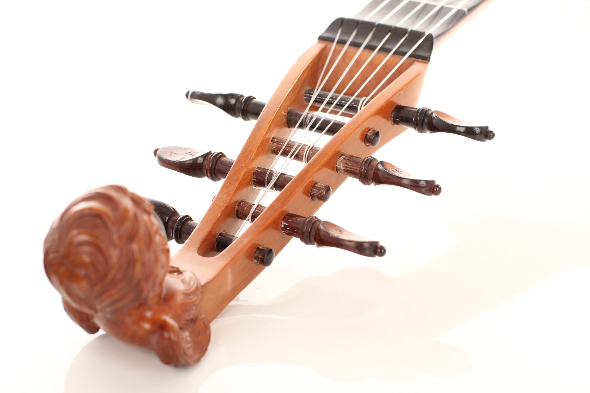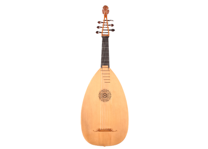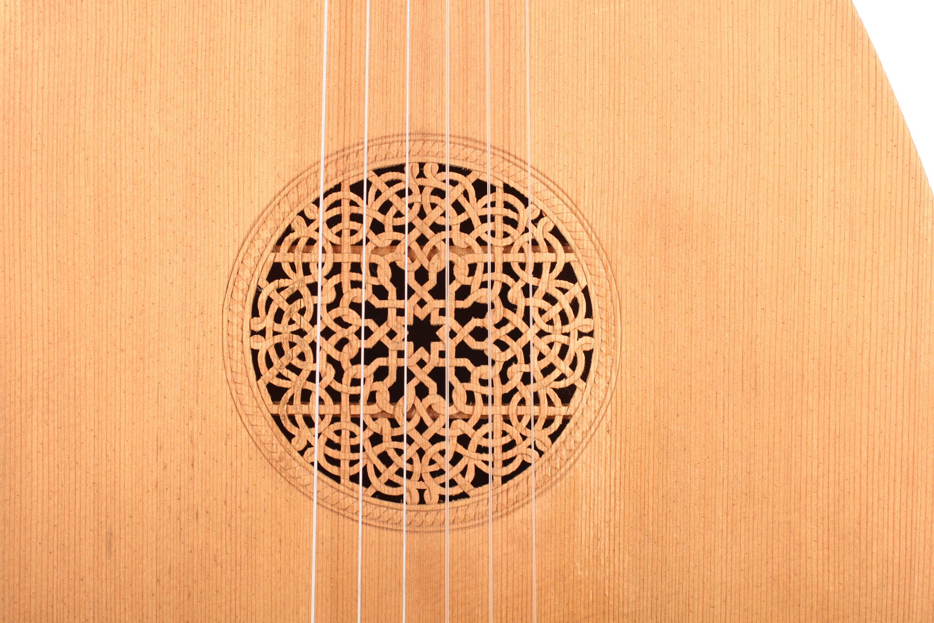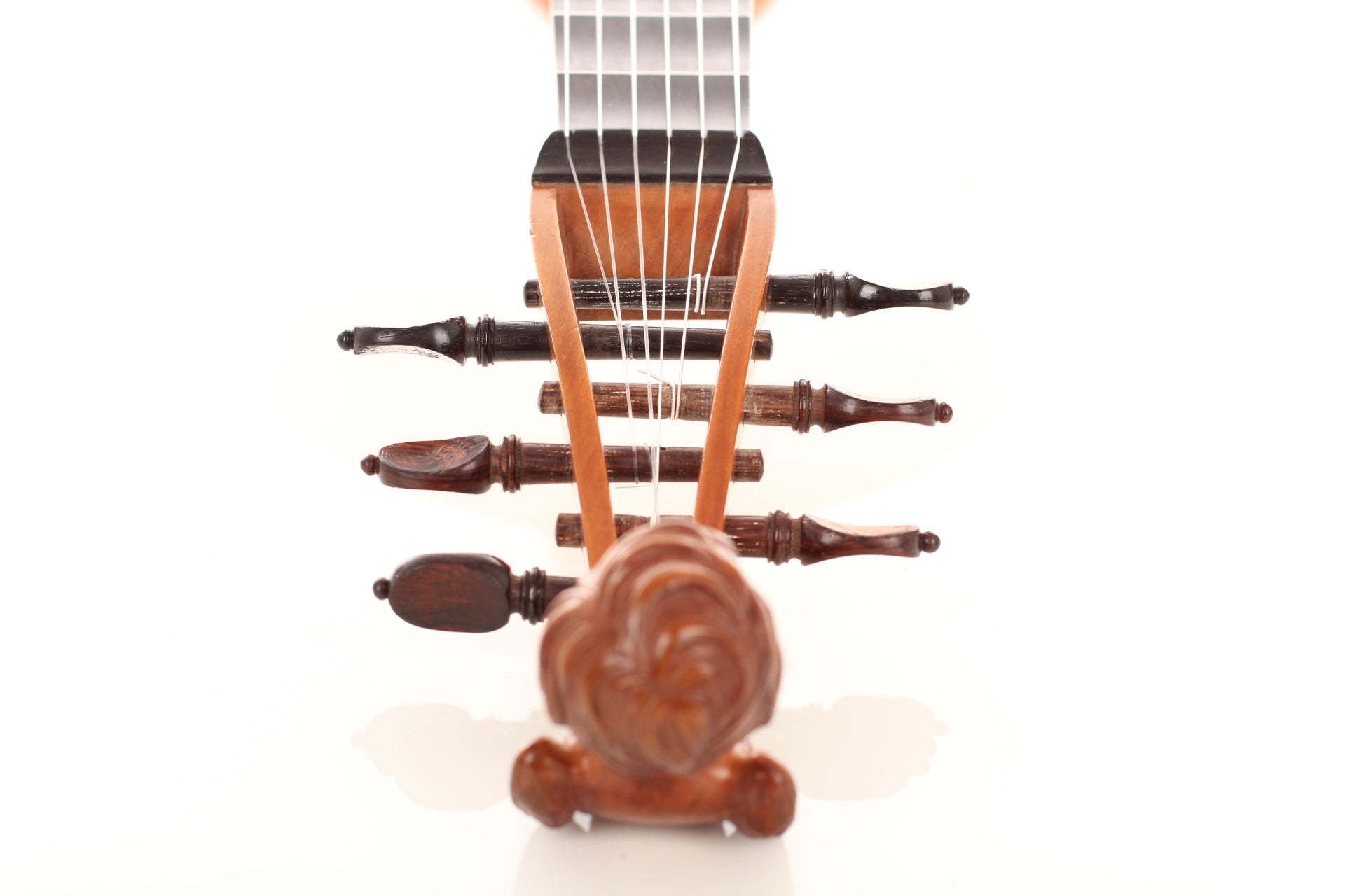 This is a very rare lute that was made in 1913 by Hauser ® I. The top of this lute is made of spruce and the back is made of maple. Overall condition is good, there are only some little marks on the top and two well repaired cracks below the brdige. The original case is included.