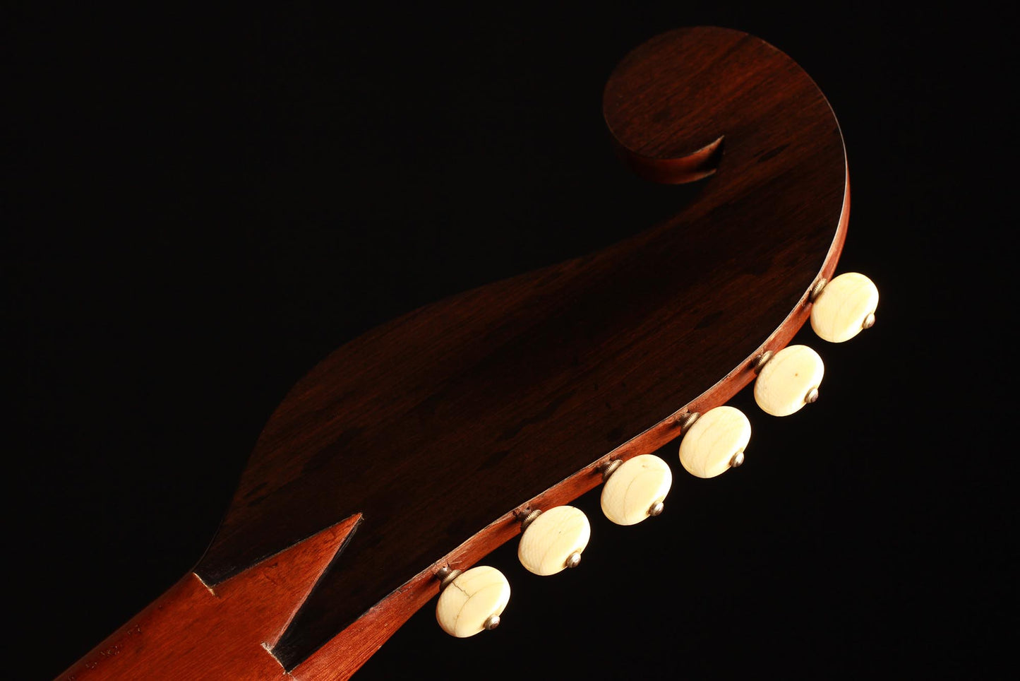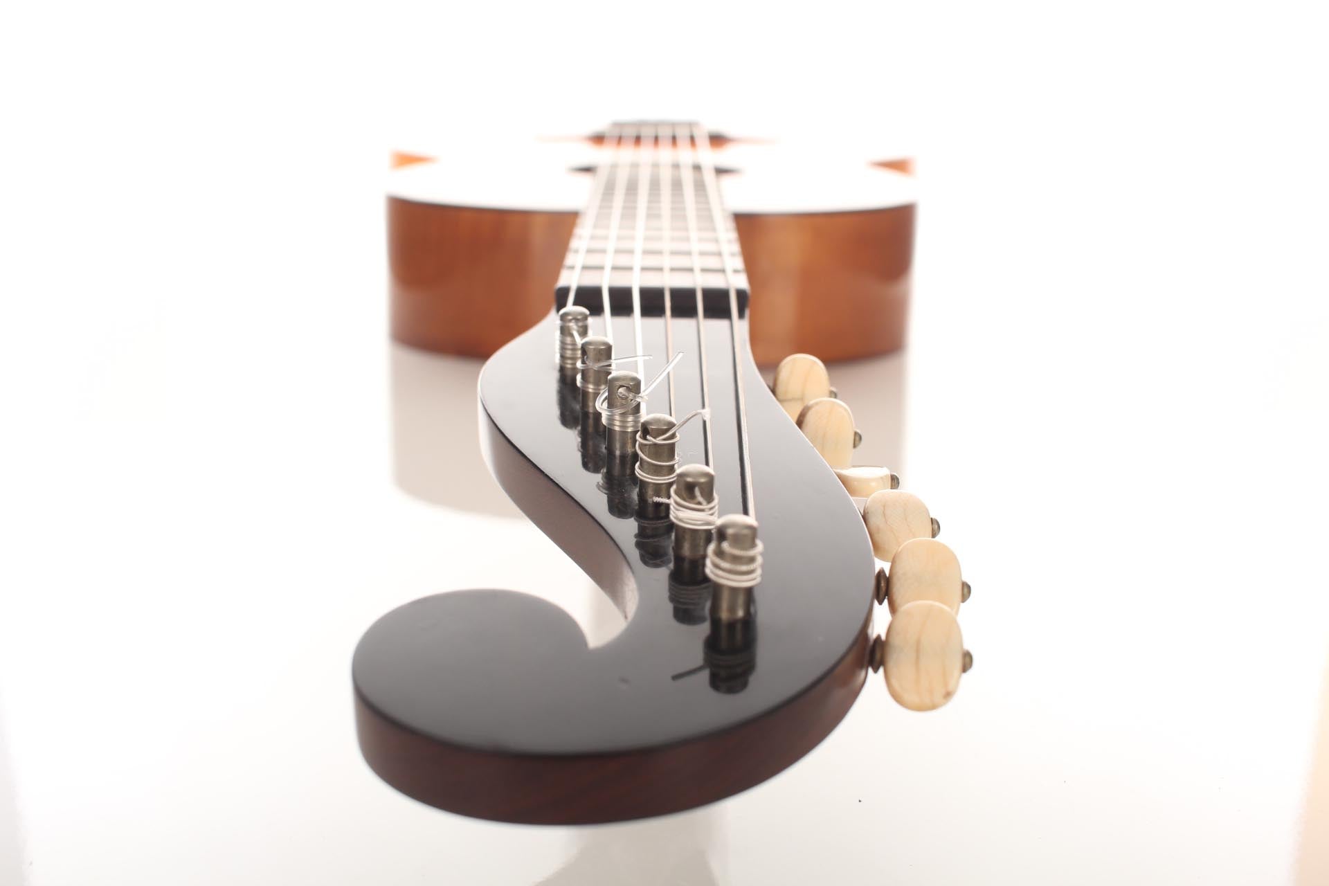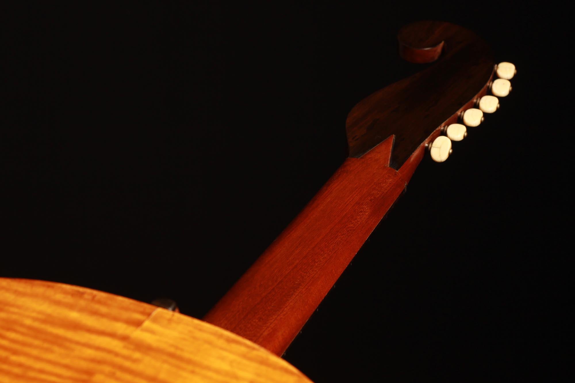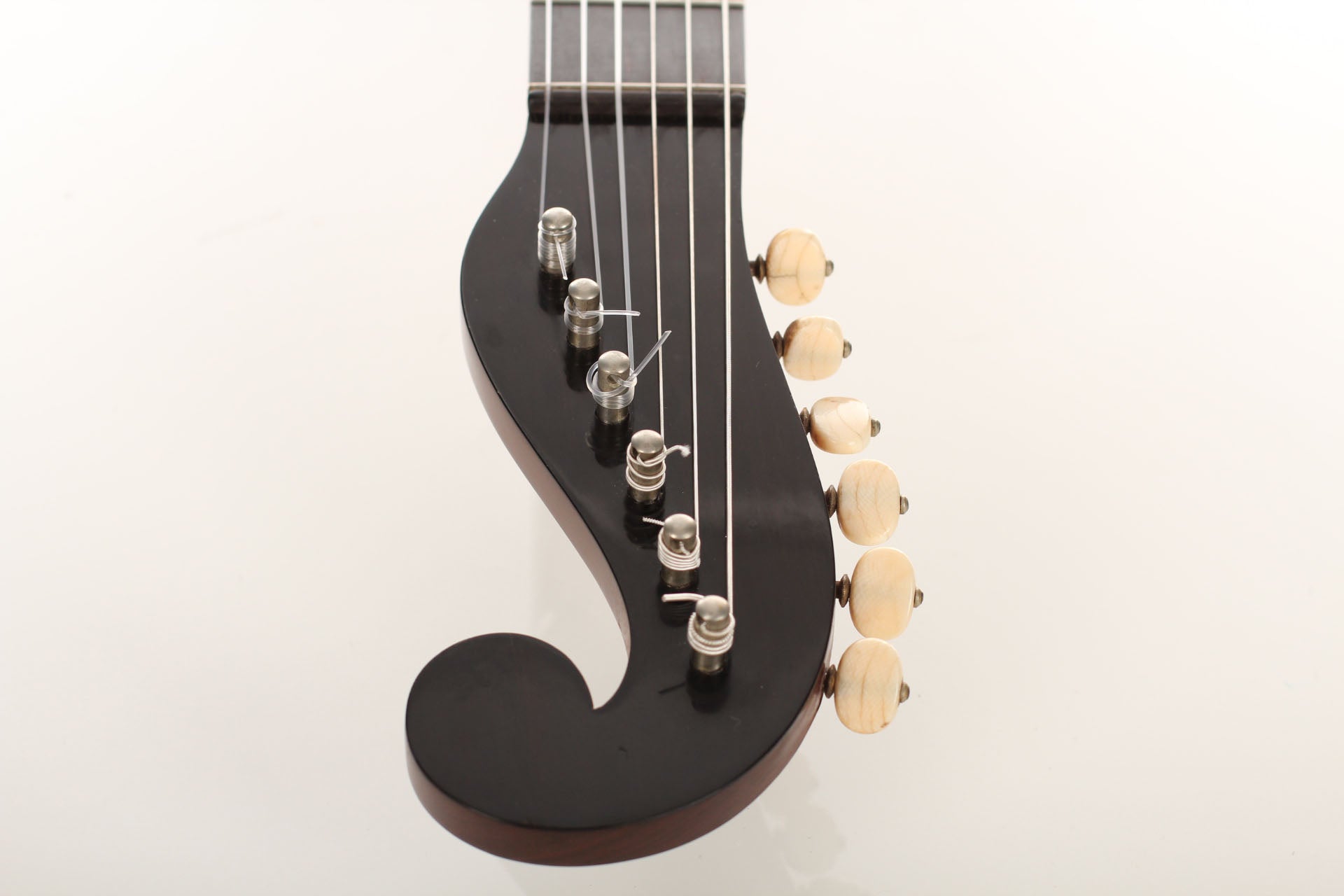 The head of this guitar has a Stauffer head silhouette, which is elegantly curved. This Stauffer motive can also be found here with this replica of a Stauffer model by Herman Hauser ® II.