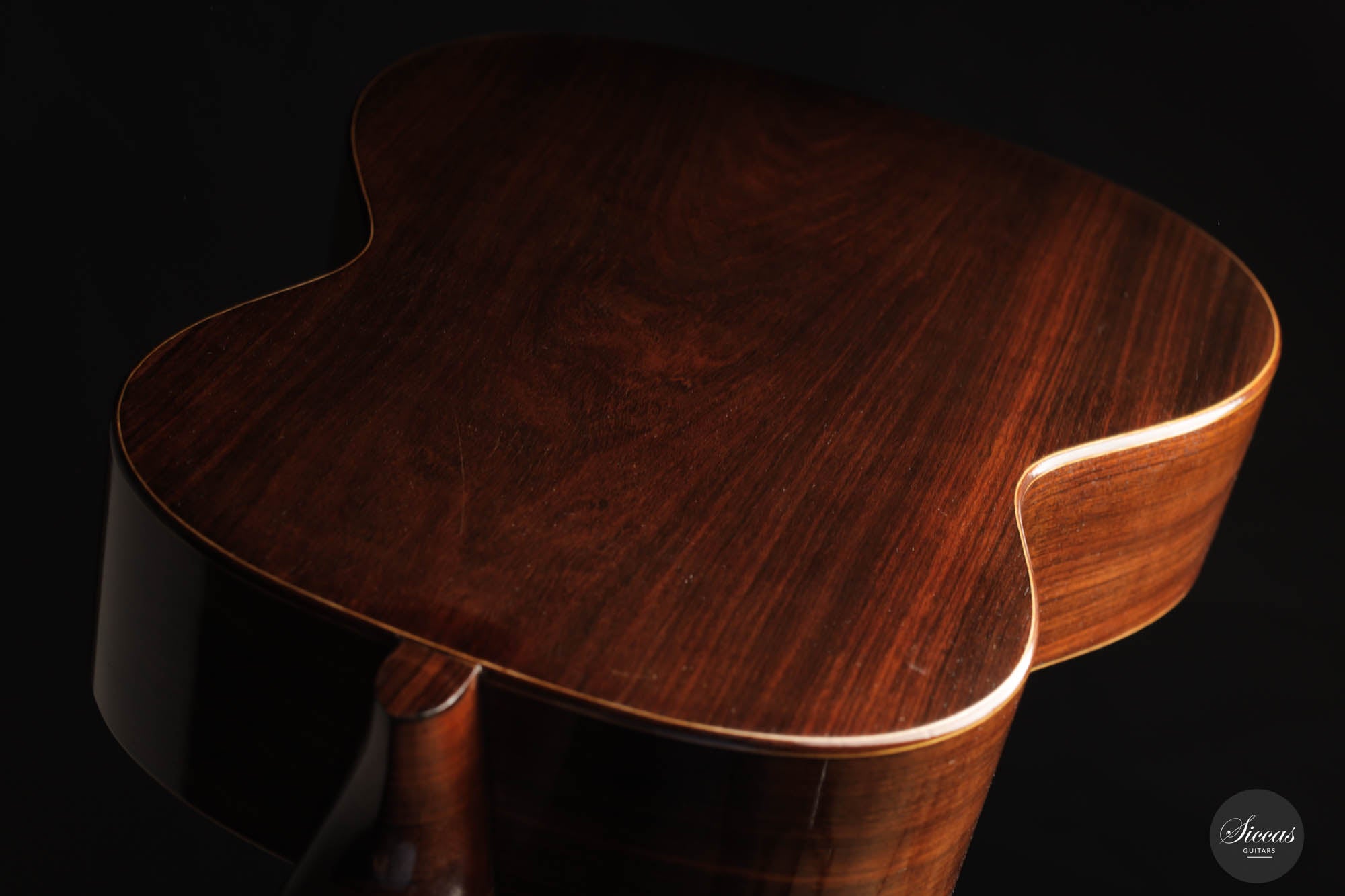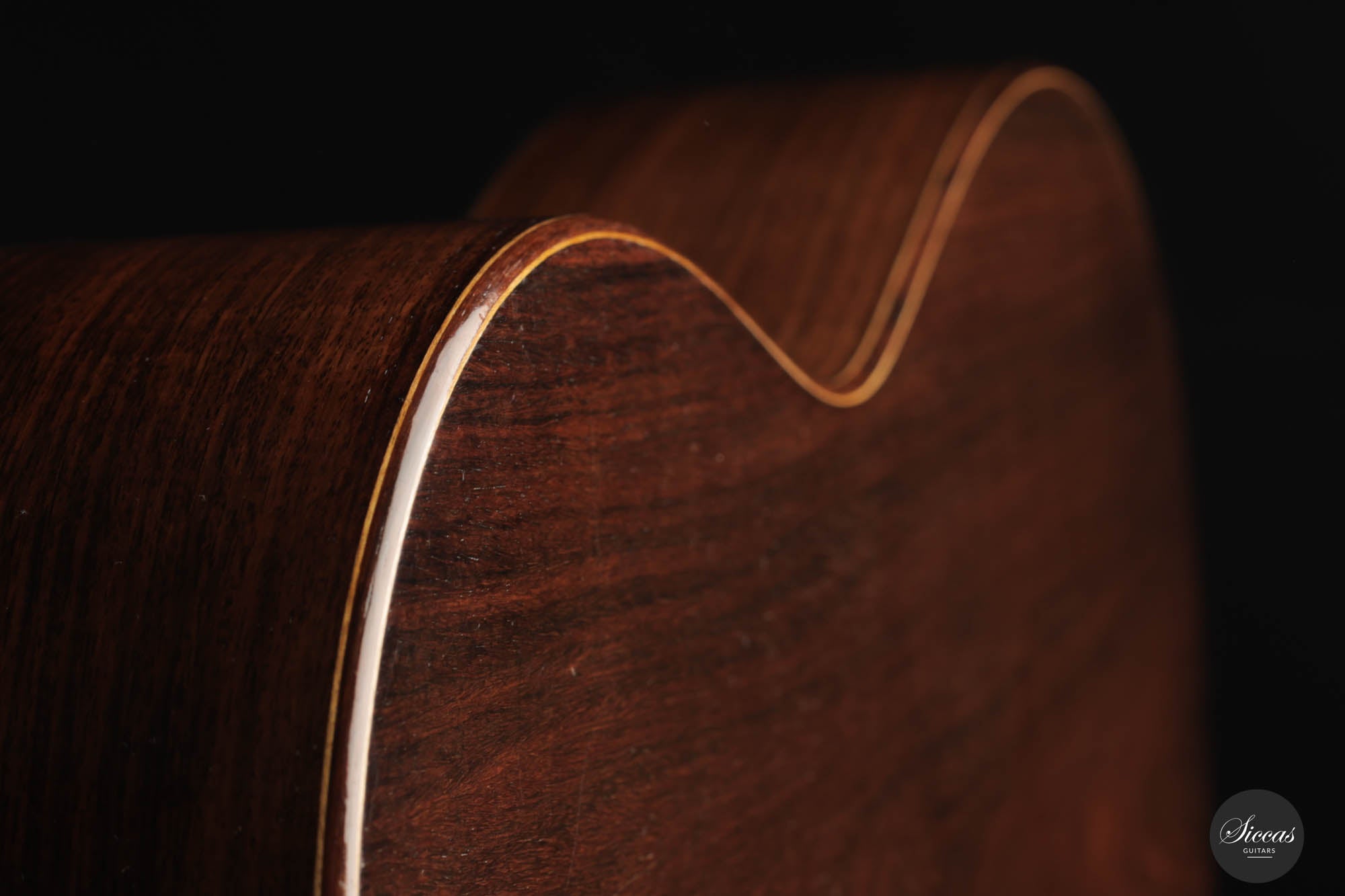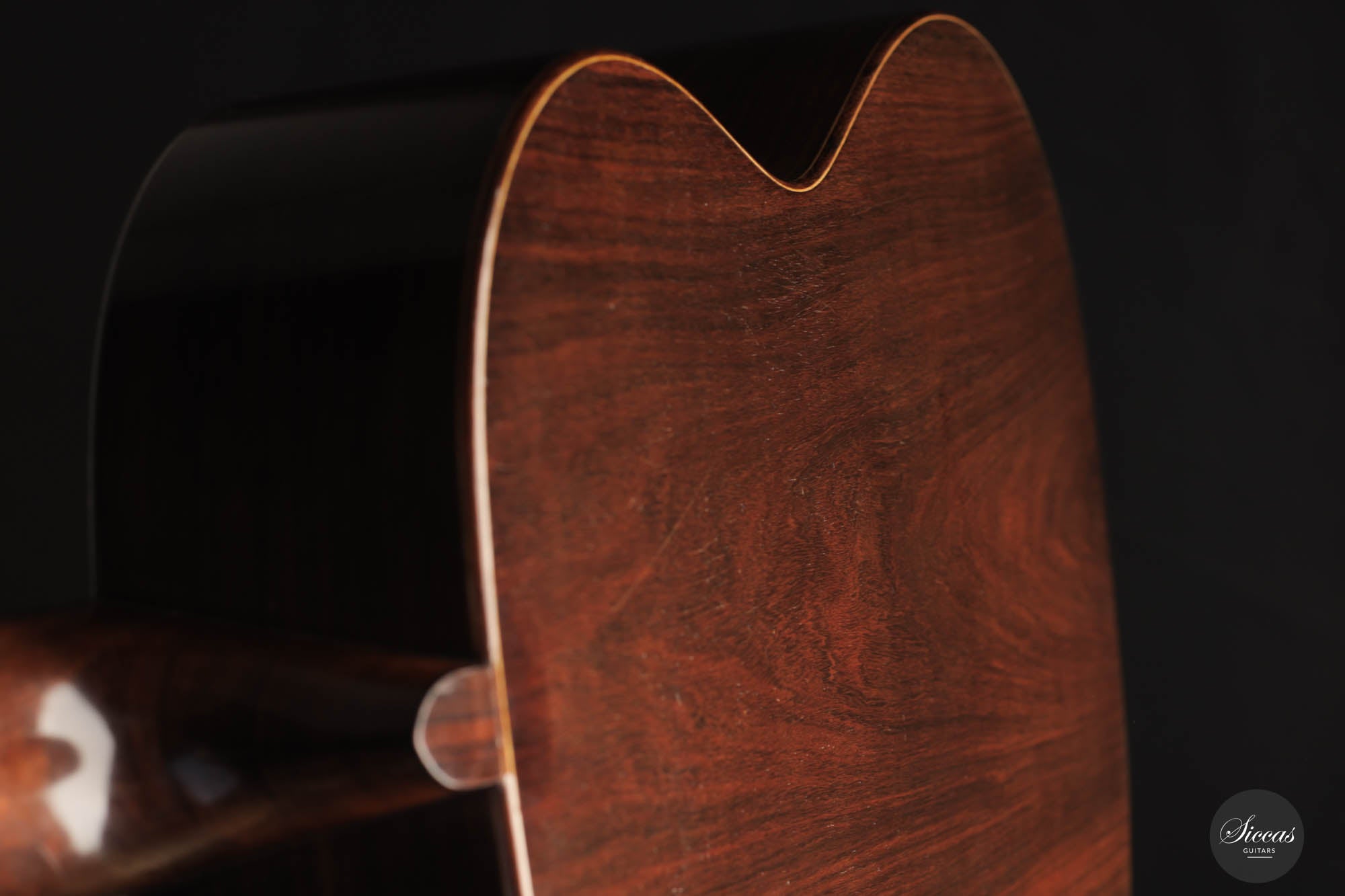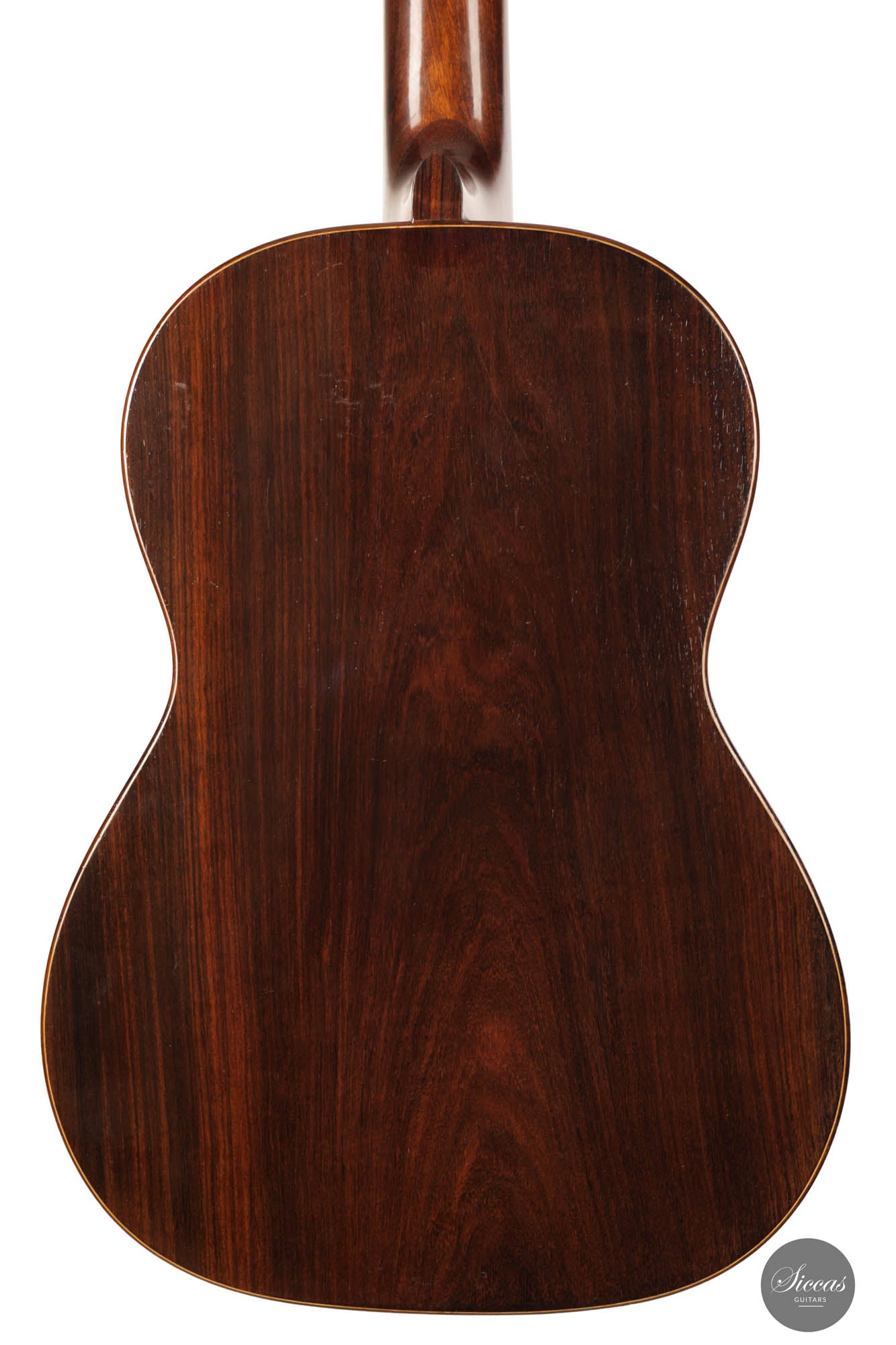 The guitar remains in a remarkably preserved condition, a testament to the superb quality and craftsmanship of Hauser®. Several expertly repaired cracks on the soundboard pay homage to the instrument's journey through time, while adaptations to the modern guitar standard, including the removal of the original zero frets and the end pin on the tail block, present it as a symbiosis of traditional aesthetics and contemporary functionality. Moreover, the French polish of this guitar has been refreshed. Crafted from one-piece Madagascar rosewood at the back and Indian rosewood on the sides, this guitar's exterior bears no structural damage, having defied the tests of time. It's further enhanced by the original Landstorfer tuning machines that are not just ornamental additions but also perform flawlessly, maintaining the guitar's harmonious voice.