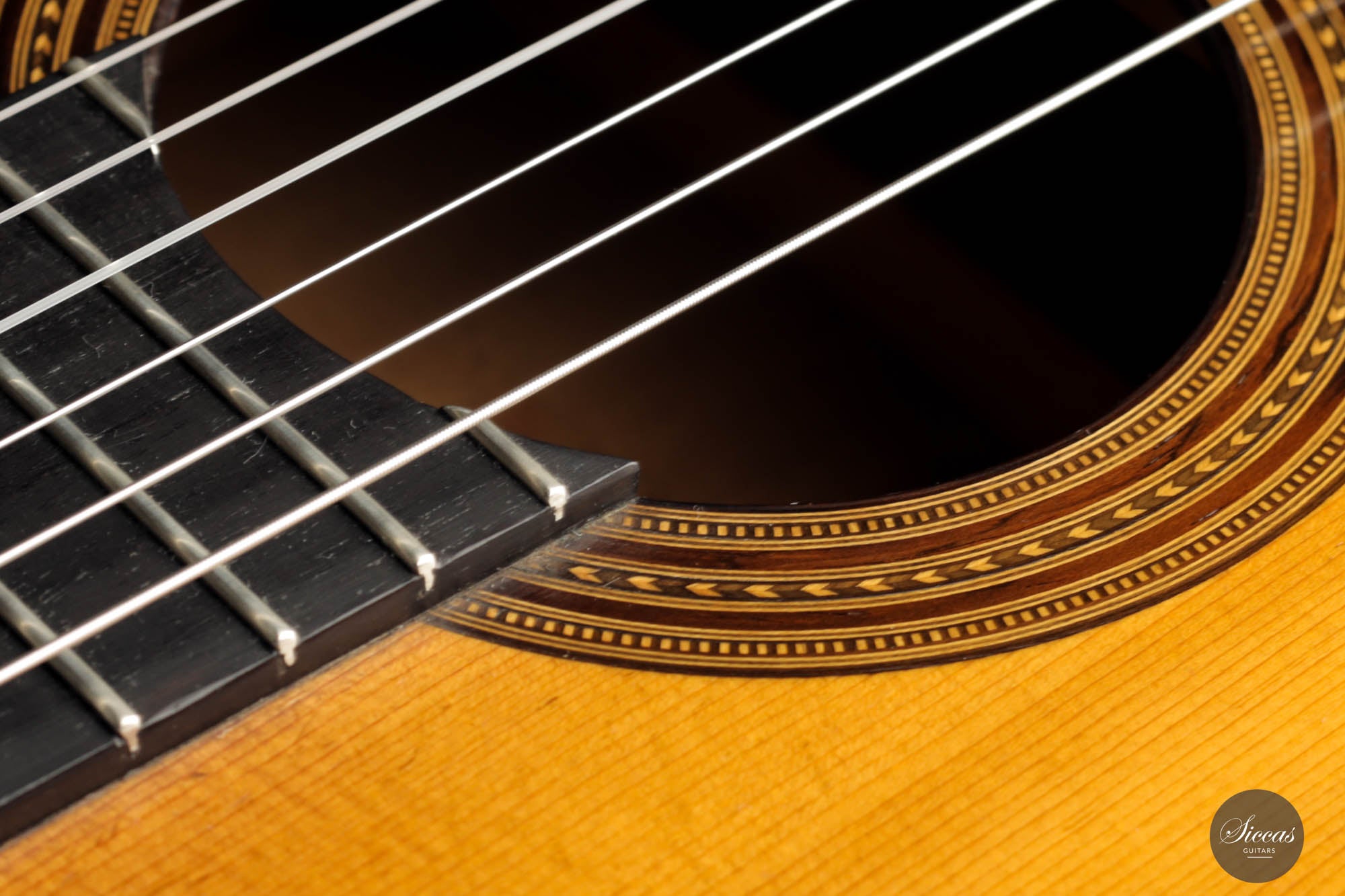 Acoustically, the 1927 Hermann Hauser® I guitar is nothing short of awe-inspiring. Its refined and pure timbre exudes an inimitable aural charm that no modern replica could match. Bell-like trebles provide a vibrant, endless resonance underpinned by deep and responsive bass notes that create a balanced, harmonious soundscape. The aesthetic appeal of the instrument is further heightened by the intricate mother-of-pearl rosette, adding an additional layer of elegance to this historical masterpiece. The guitar rightfully commands a legendary status, standing tall as one of the most exceptional examples of Hermann Hauser® I's craft and one of the greatest guitars ever made.