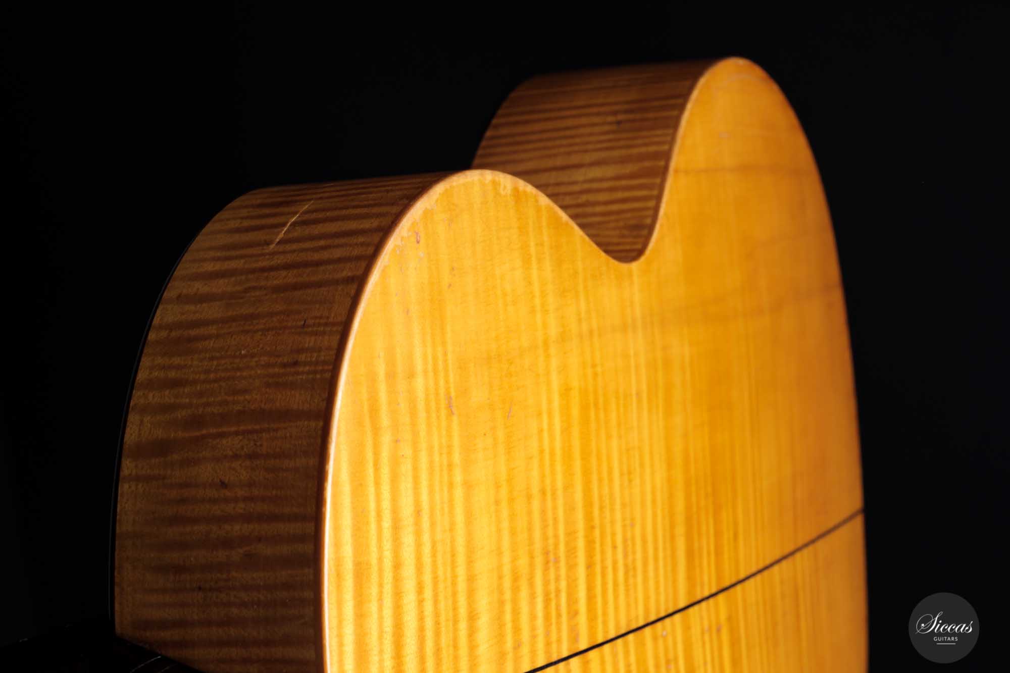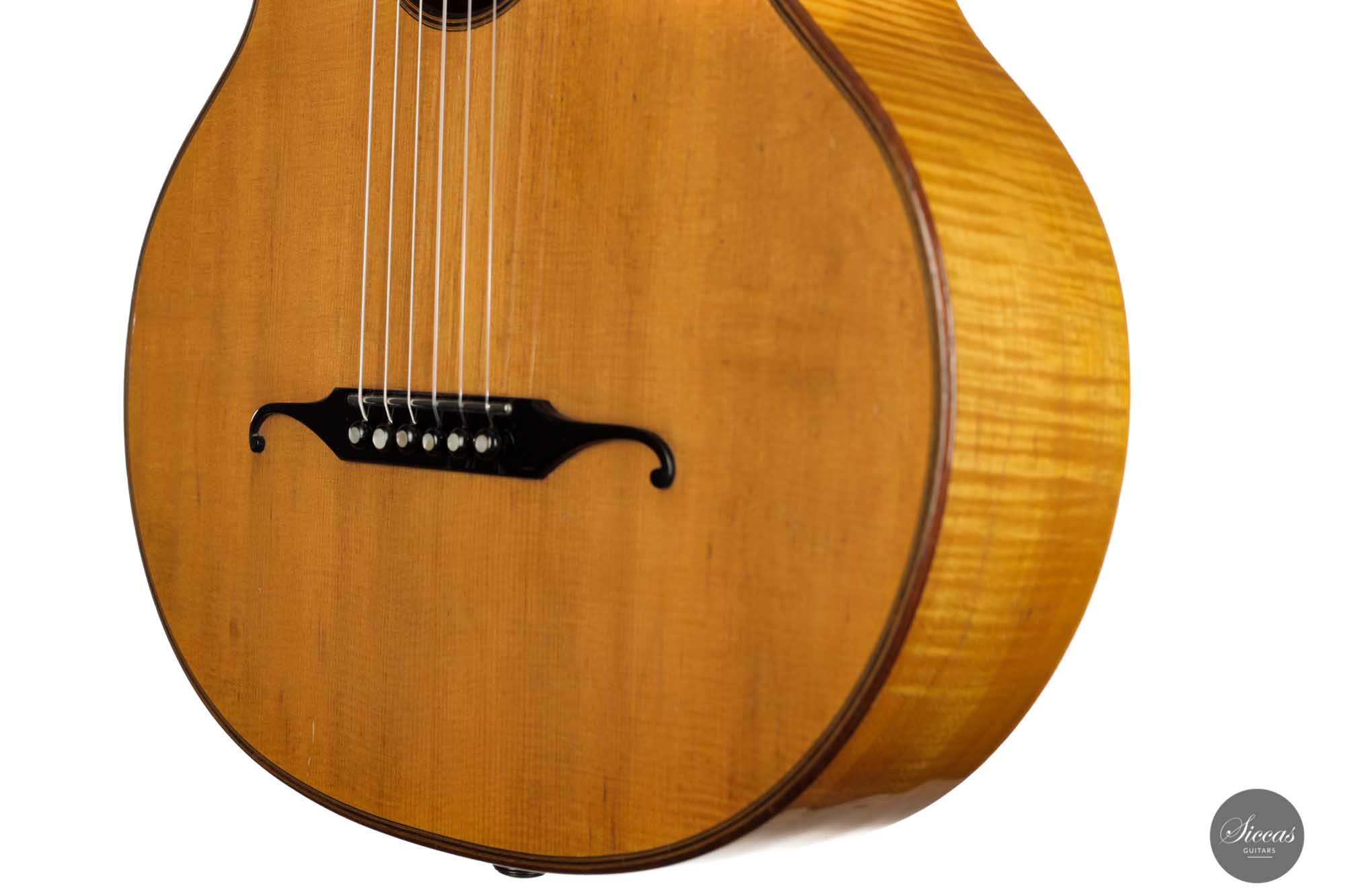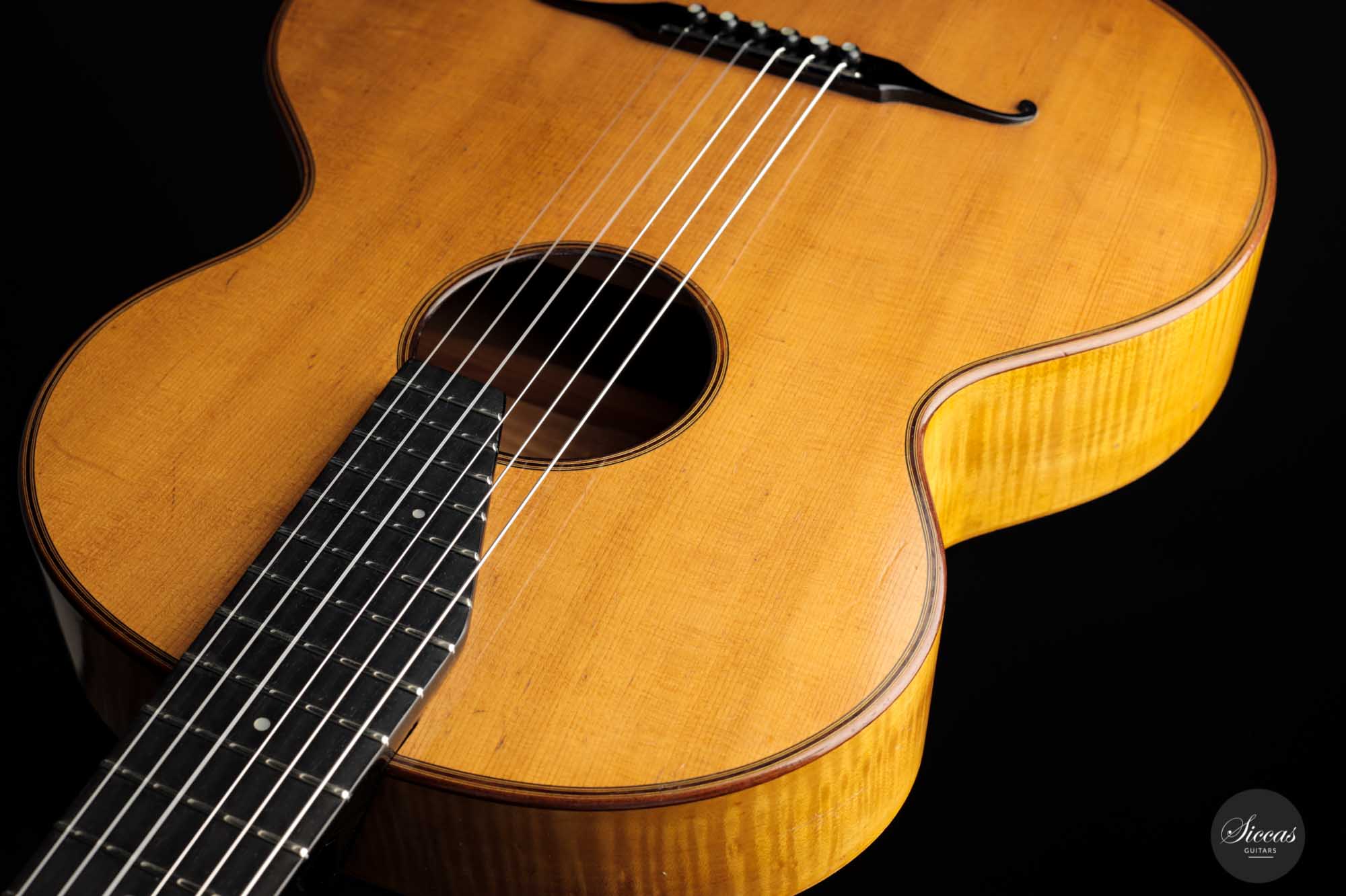 This wonderful and rare 1934 Hermann Hauser I is a real piece of history. Built at the peak of the collaboration between Hermann Hauser I and Segovia, it is an outstanding Viennese model with a 63 cm scale. This typical Bavarian instrument is reminiscent of Herman Hauser I's first epoch. This extremely efficient construction offers an exceptional volume and responsiveness relative to the smaller body size. It also features an elevated Stauffer-style fingerboard. This clever system allows the guitarist to modify the neck's angle with a simple screw system, enabling a fast and easy change of the string's action. This particular guitar weir the date 1934 along with Hermann Hauser I's signature on the label. It is also hand-signed under the soundboard with the inscription "Hermann Hauser, München 1935". Hence, this guitar was probably built during the winter of 1934-1935.