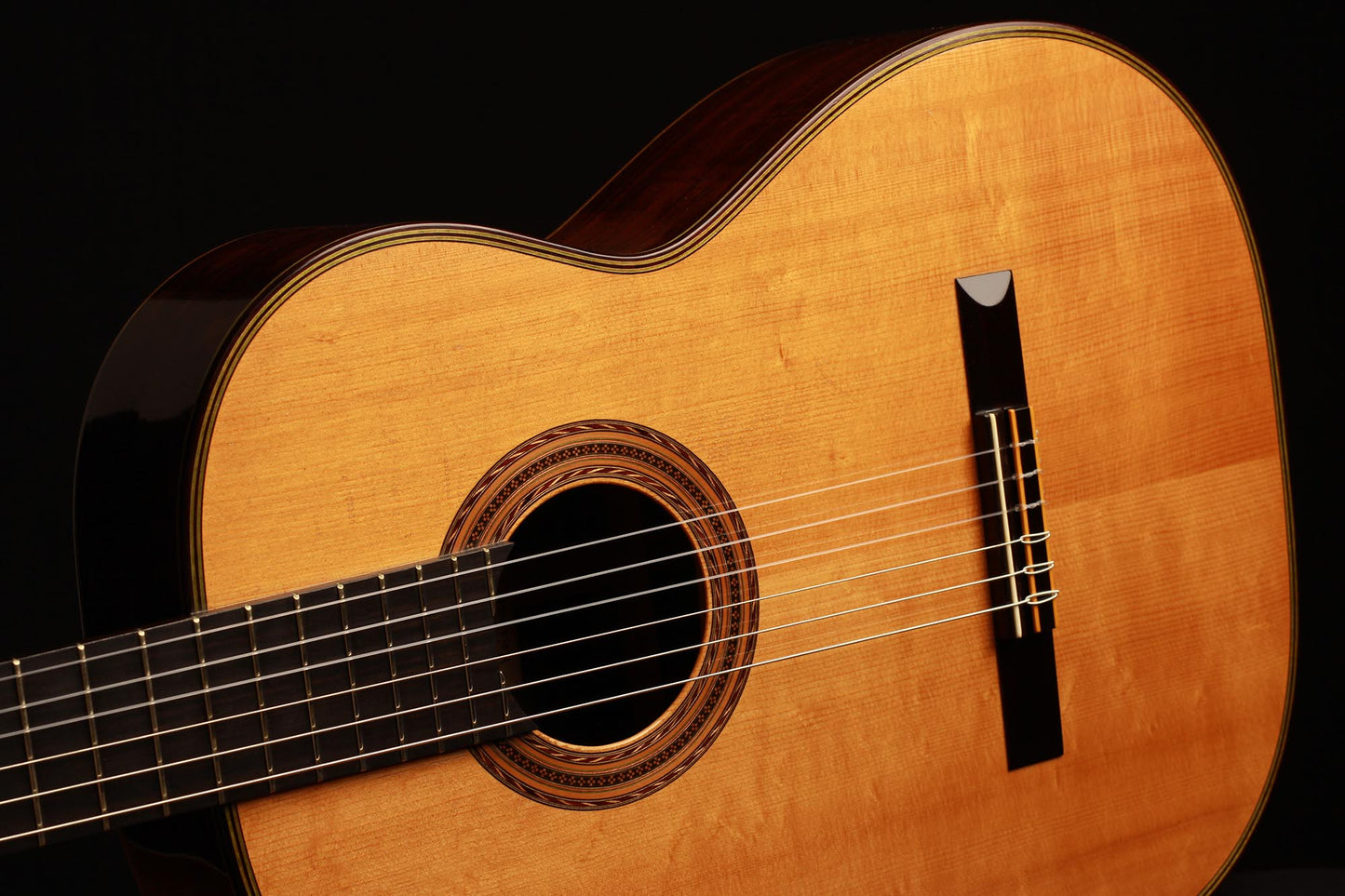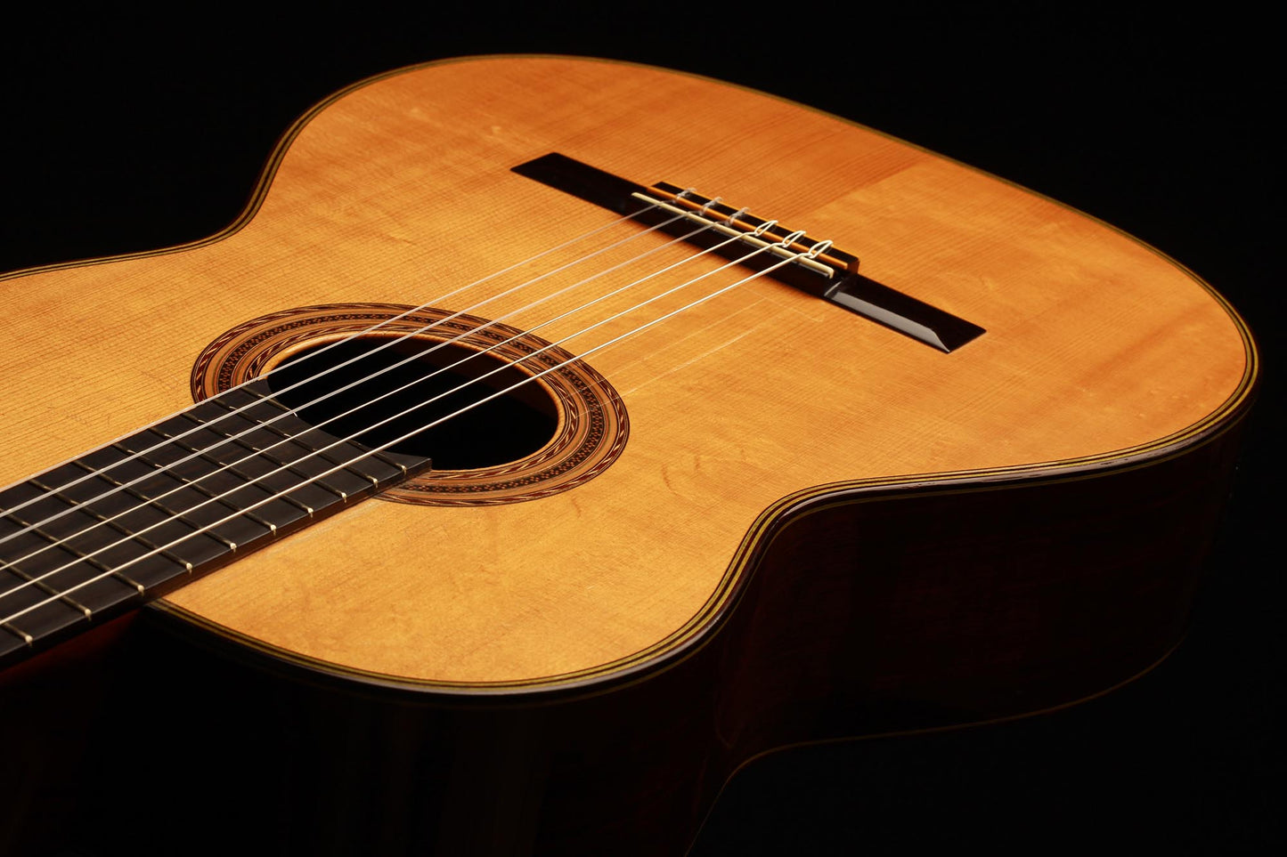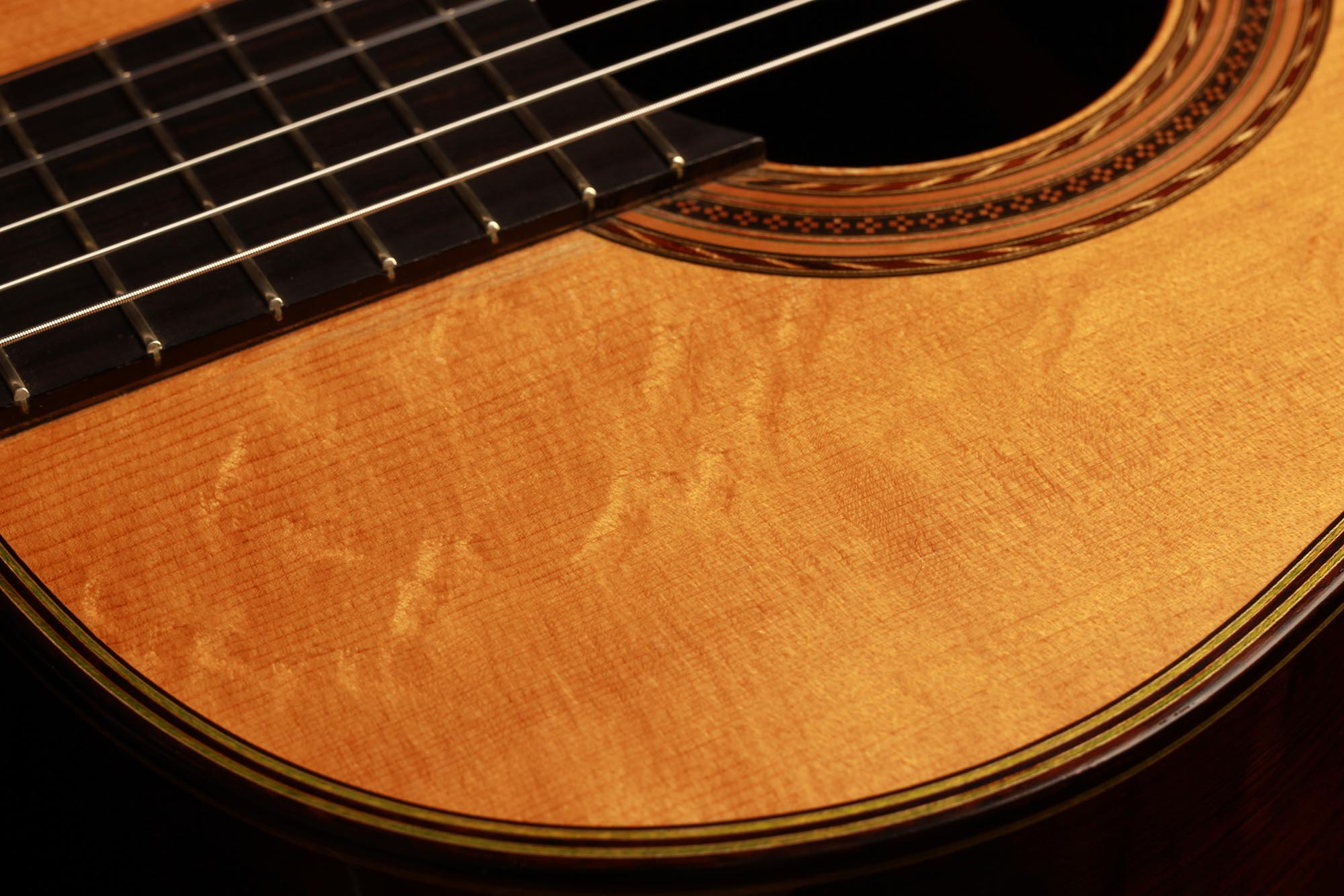 What an incredibly velvety and harmonious sound. Each note is of outermost precision and the endless seeming sustain is consistent up to the highest notes. This rare guitar really produces one of the richest tones we have ever heard on a classical guitar.