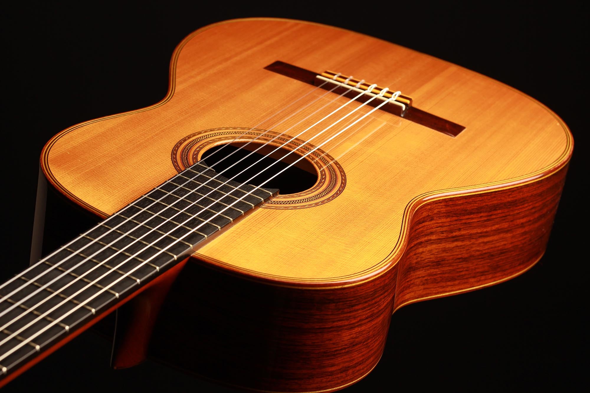 The classical guitar, with its soft nylon strings and characteristic timbre, has become a symbol of chamber music, Spanish tradition, and concert repertoire. Its modern form was shaped by Antonio de Torres in the 19th century, setting the standard for the body, fan bracing, and the 65-centimeter scale length that are still used today. Instruments in this category open up a rich palette from the refined Romantic miniatures of Tárrega to the majestic concertos of Rodrigo. Here you will find guitars that preserve historical continuity and at the same time inspire new interpretations.