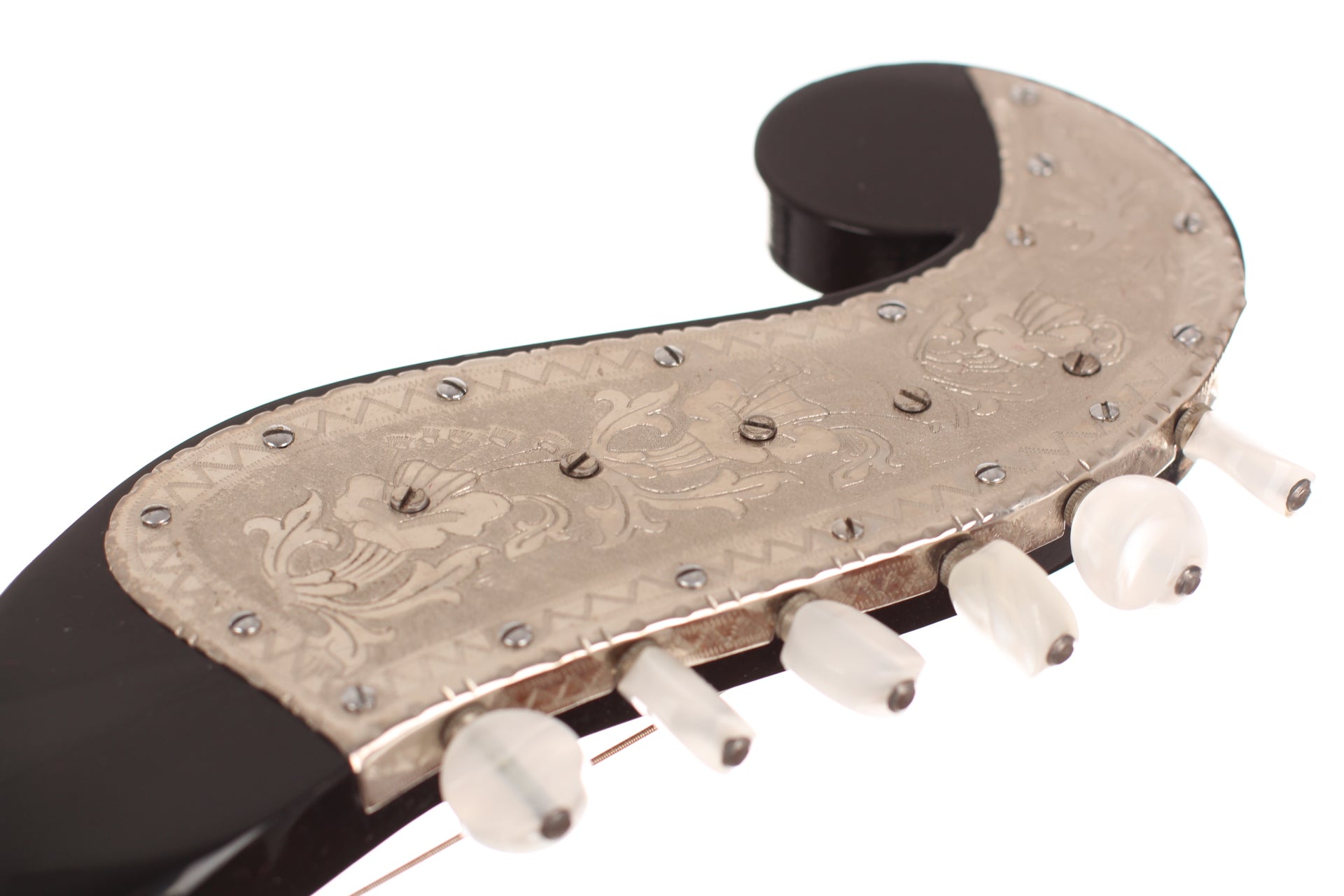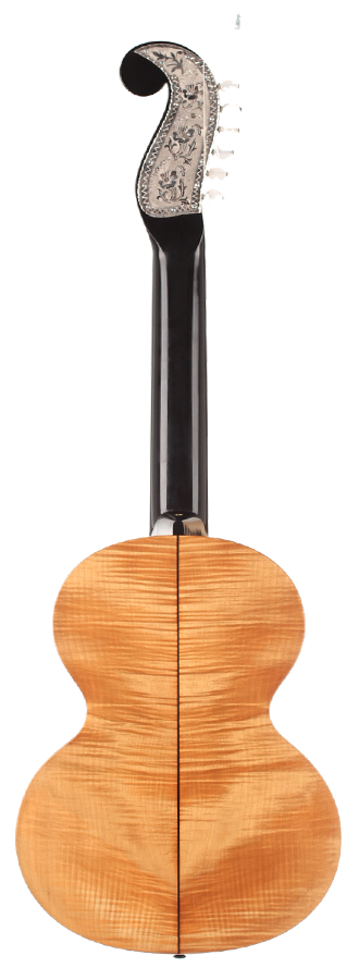 Hermann Hauser ® II is worldwide known for his classical guitars that were played by famous guitarists like Julian Bream and Andrés Segovia. But Hauser ® II has also built some very special guitars for his customers. This rare tierce Stauffer model is one of these special guitars. There are existing only two guitars of this type worldwide, that were built by the famous luthier.