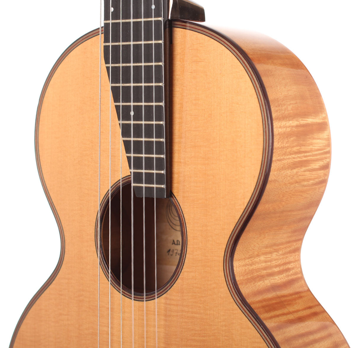 The classical guitar, with its soft nylon strings and characteristic timbre, has become a symbol of chamber music, Spanish tradition, and concert repertoire. Its modern form was shaped by Antonio de Torres in the 19th century, setting the standard for the body, fan bracing, and the 65-centimeter scale length that are still used today. Instruments in this category open up a rich palette from the refined Romantic miniatures of Tárrega to the majestic concertos of Rodrigo. Here you will find guitars that preserve historical continuity and at the same time inspire new interpretations.Look all products of the collection -