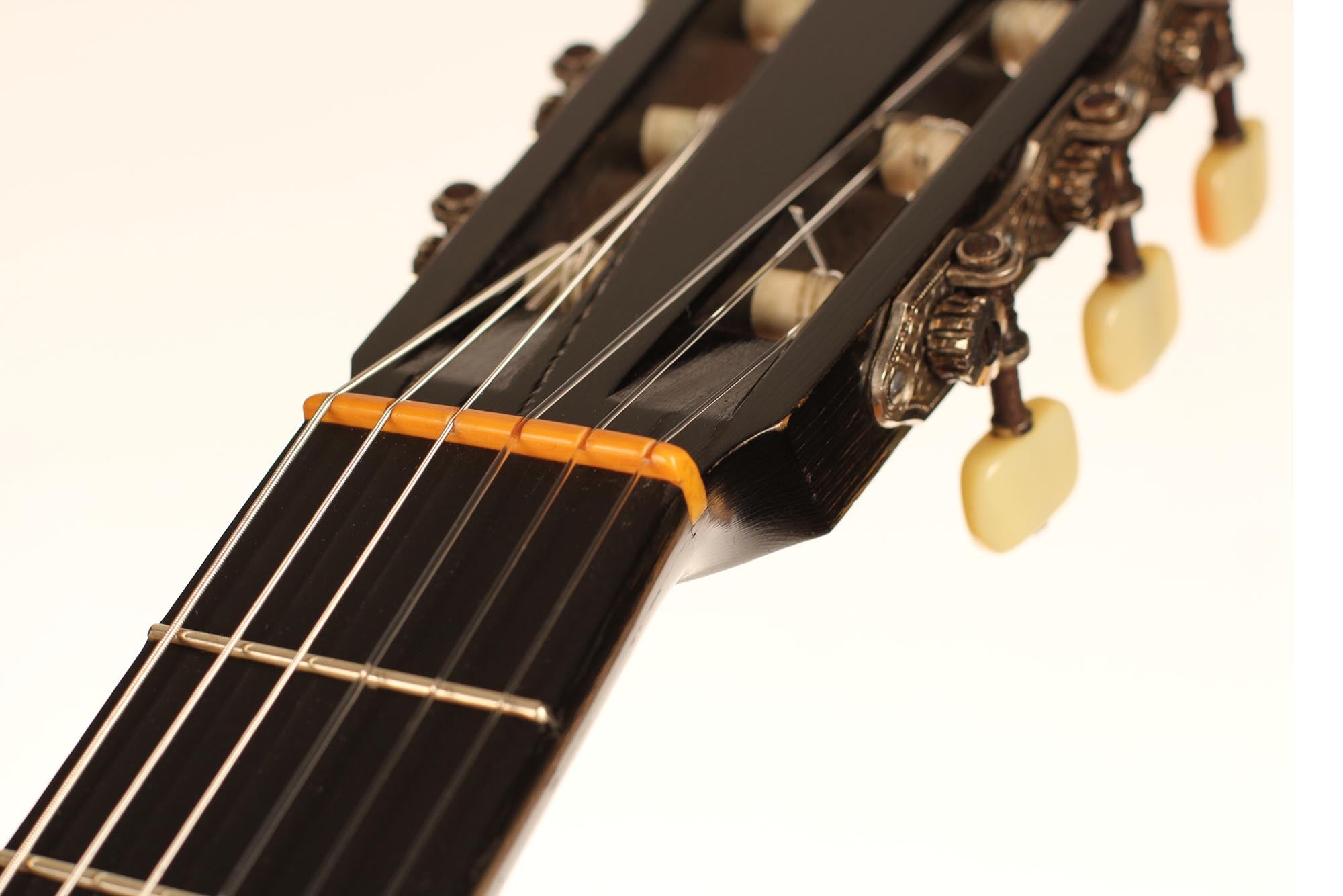 Hermann Hauser ® II also built a few very special guitars for some of his customers and this rare 1968 Viennese is one of those rare instruments. It is in excellent condition without any cracks nor repairs and all elements as well as the finish are original. This great guitar features the concert three-lobes head-stock of Hermann Hauser ® II and is both a very collectible instrument and also a guitar ready to be played with a great vintage tone, quick response and charming overtones.