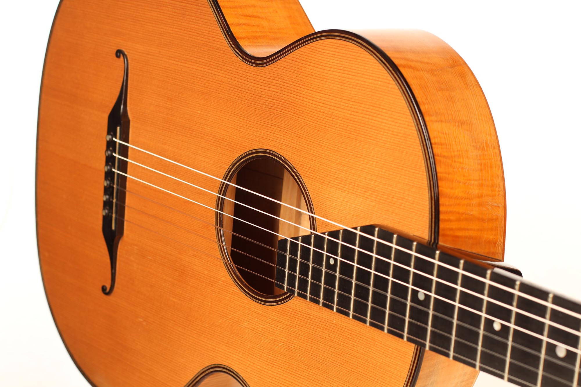 Hermann Hauser ® II is worldwide known for his classical guitars that were played by famous guitarists like Julian Bream and Andrés Segovia. But Hauser ® II has also built some very special guitars for his customers. This rare tierce Stauffer model is one of these special guitars. There are existing only two guitars of this type worldwide, that were built by the famous luthier.