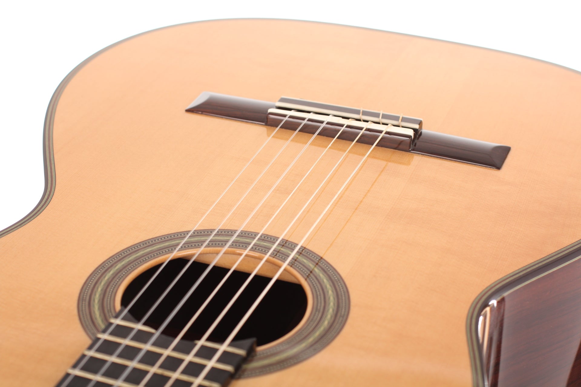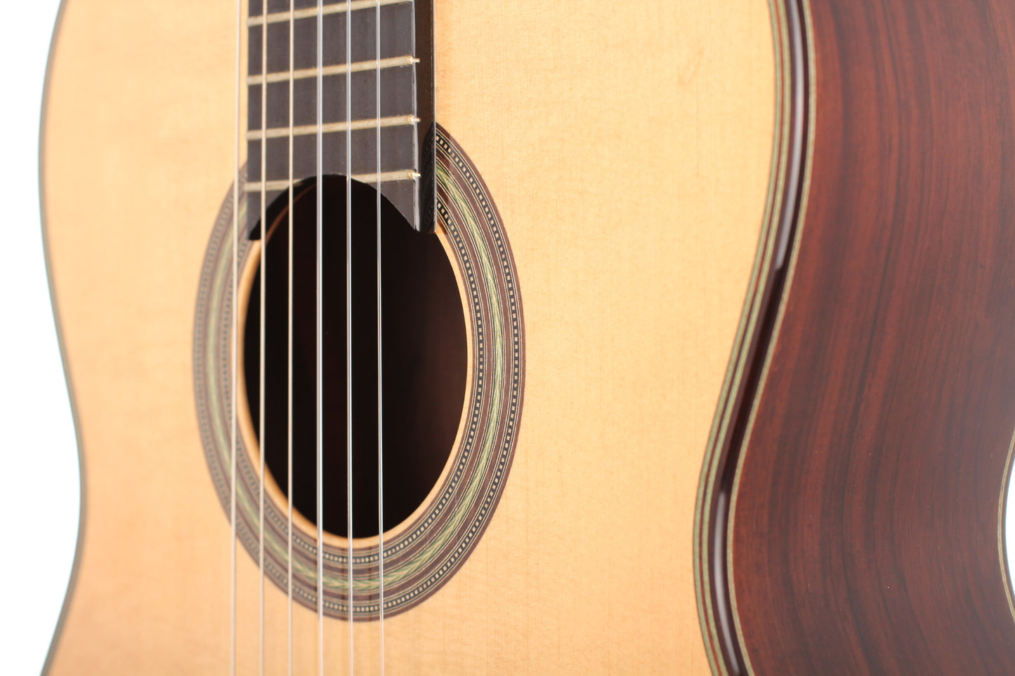 The classical guitar, with its soft nylon strings and characteristic timbre, has become a symbol of chamber music, Spanish tradition, and concert repertoire. Its modern form was shaped by Antonio de Torres in the 19th century, setting the standard for the body, fan bracing, and the 65-centimeter scale length that are still used today. Instruments in this category open up a rich palette from the refined Romantic miniatures of Tárrega to the majestic concertos of Rodrigo. Here you will find guitars that preserve historical continuity and at the same time inspire new interpretations.Look all products of the collection -