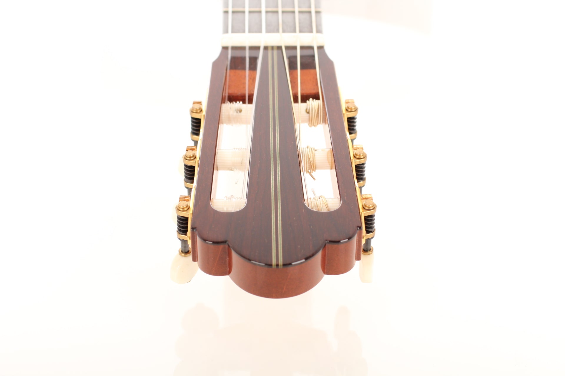Luthier: José Luis RomanillosConstruction Year: 1979Construction Type: TraditionalTop: SpruceBack and Sides: Indian rosewoodSoundboard Finish: French polishBody Finish: French polishAir Body Frequency: G / G sharpWeight (g): 1410Tuner: Klaus SchellerCondition: Excellent