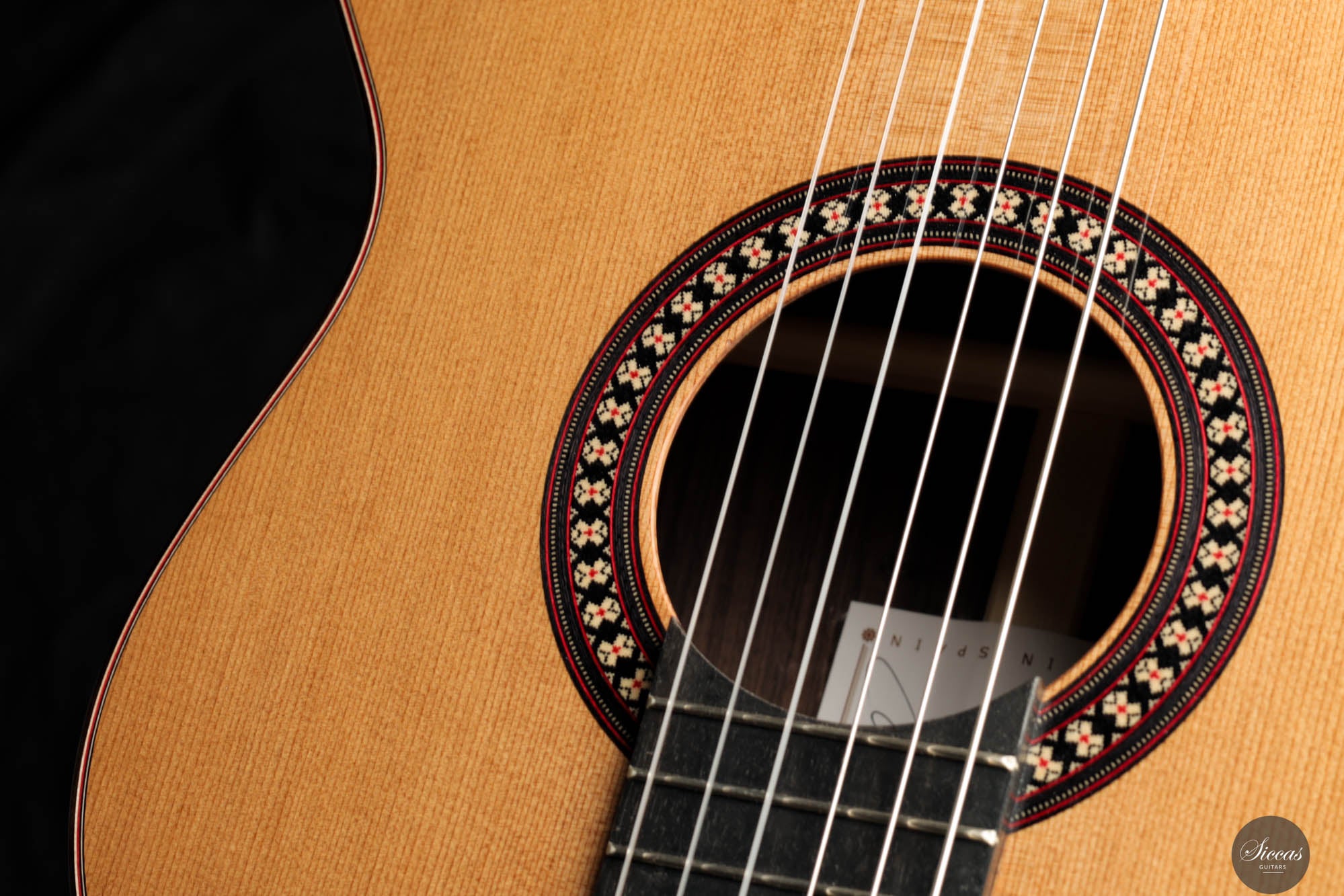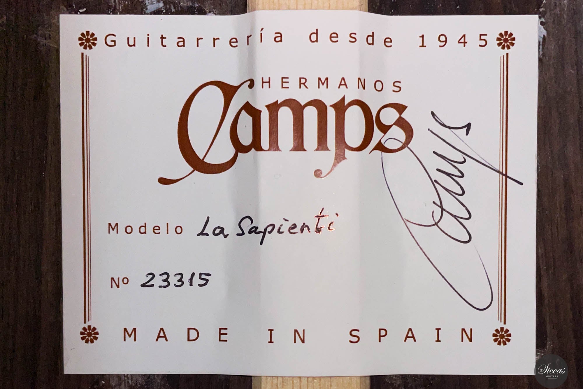 The Camps La Sapienti classical guitar, equal to GL-18 model, represents the pinnacle of the Camps line, exemplifying the fusion of expert craftsmanship and the finest materials. Crafted entirely from solid woods and elegantly accented with contrasting light and dark motifs, this guitar stands as a testament to exquisite luthiery. It is renowned for its rapid responsiveness and a sound profile that is both superbly balanced and remarkably open across all registers, ensuring a playing experience that is both enjoyable and rewarding. The guitar features a delicate French polish finish on the soundboard, complemented by a durable nitrocellulose finish on the back and sides, striking a perfect balance between aesthetic elegance and resilience. Equipped with a truss rod within the neck for enhanced stability and to prevent warping, the La Sapienti ensures consistent playability and comfort over time. This guitar, suitable for musicians at every stage of their journey, from beginners to seasoned professionals, offers a perfect blend of playability, durability, and exceptional tonal quality, making it a versatile and cherished instrument in any guitarist's collection. The guitar comes with a Hiscox Pro II "Siccas Edition" Case, which add an additional value to this instrument.