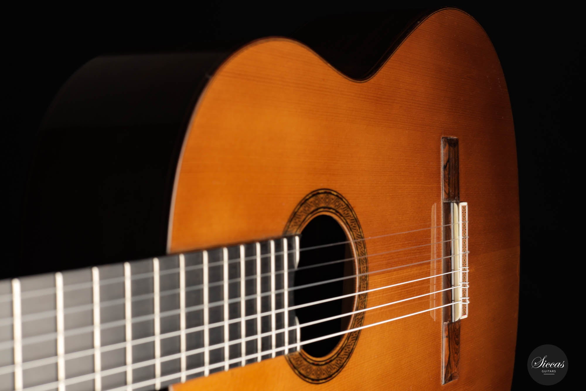 The two friends Santiago Diaz Martinez, better known as Manuel Hernández, and Victoriano Aguado Rodriguez, got to know each other while working in a piano factory. After the factory closed, they founded a company that initially focused on restoring furniture and pianos. They built their two first guitars privately between 1945 and 1948, which were also played and examined by Regio Sainz de la Maza. This was a very encouraging experience and the two friends decided to keep on building guitars. In 1948 Modesto Borreguero, who had worked in the workshop of the famous luthier Manuel Ramirez, joined Manuel Hernández and Victoriano Aguado Rodriguez, and they started to increasingly focus on the making of guitars – with huge success. Famous artists like John Williams, Julian Bream and Atahualpa Yupanqui played „HyA“guitars.